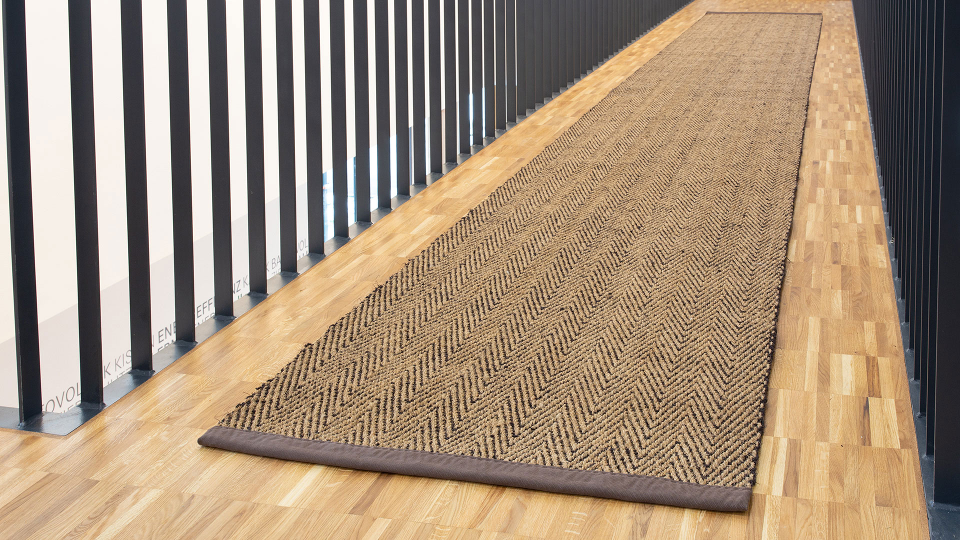Ein klassischer Läufer verbindet raffiniert Wohnräume und schafft auch in langen und schmalen Räumen eine wohnliche Atmosphäre. Unser Kokosläufer "Palmera" hat ein schönes Fischgräten-Muster, das bei den Farbstellungen mit dunklem Schuss zusätzlich betont wird. Er ist an den schmalen Seiten mit einem farblich passenden Baumwollband eingefasst und hat an den langen Seiten eine sichtbare Webkante. So sind auch sehr lange Läufermaße möglich. Der schöne Kokosläufer ist in 4 Rollenbreiten und 4 wohnlichen Farbstellungen erhältlich und kommt ohne Beschichtung des Rückens aus.