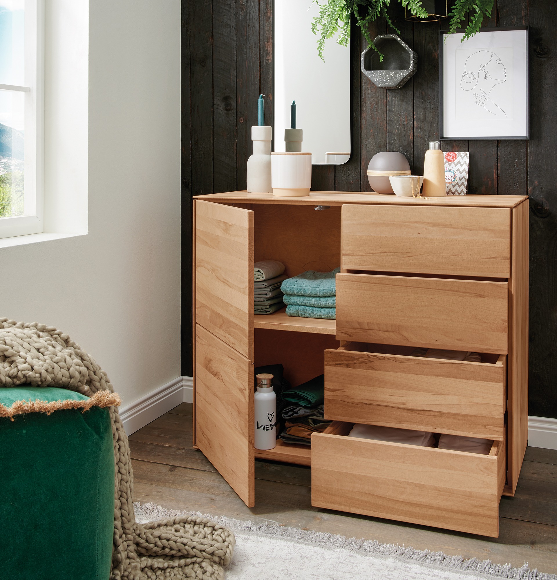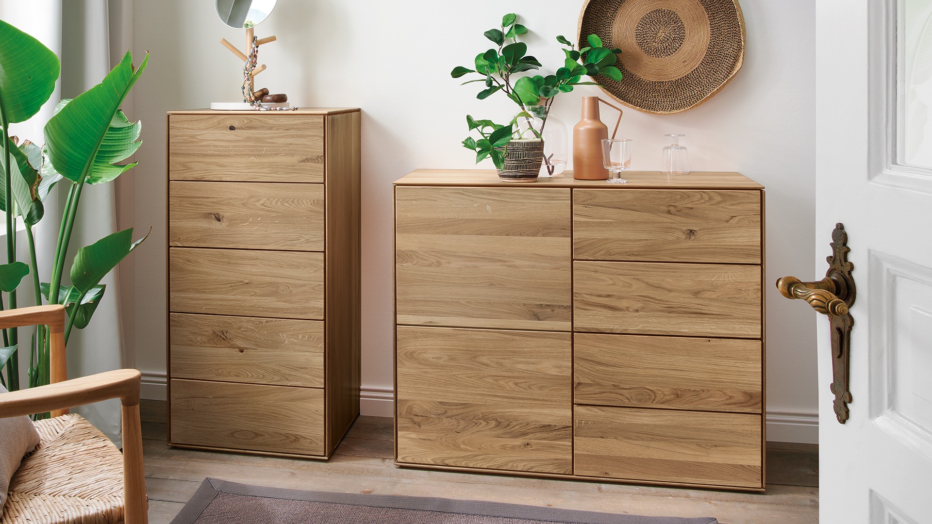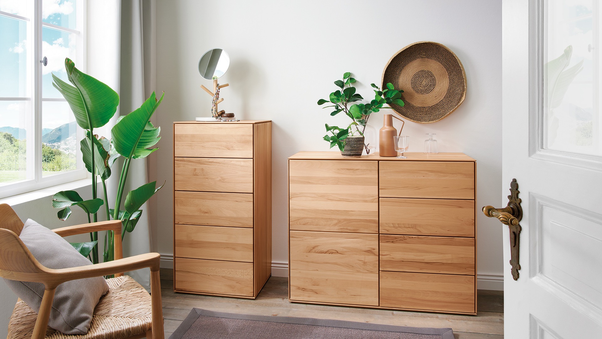 Mit diesen schnörkellosen Kommoden haben Sie den idealen Platz für Ihre Wäsche und vieles mehr gefunden. Und wissen Sie, warum Sie auf "Bellavista" öfter mal sanften Druck ausüben sollten?