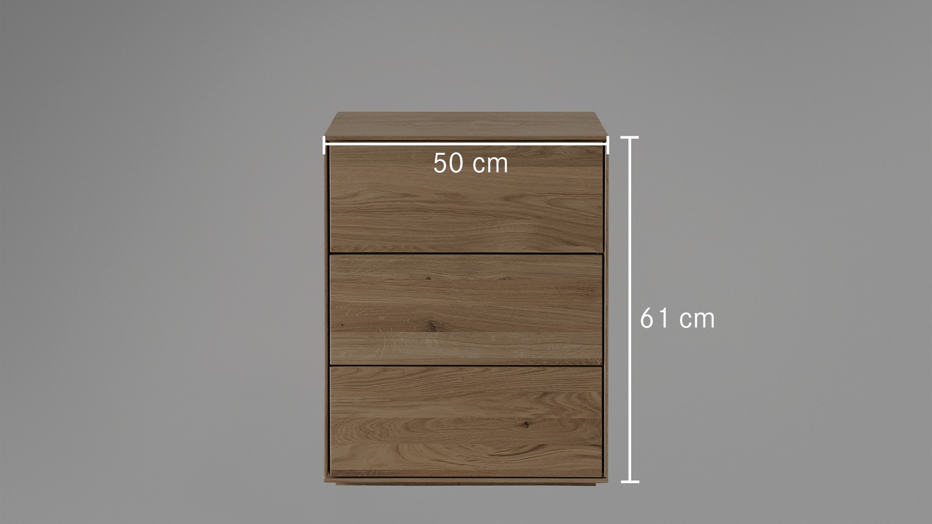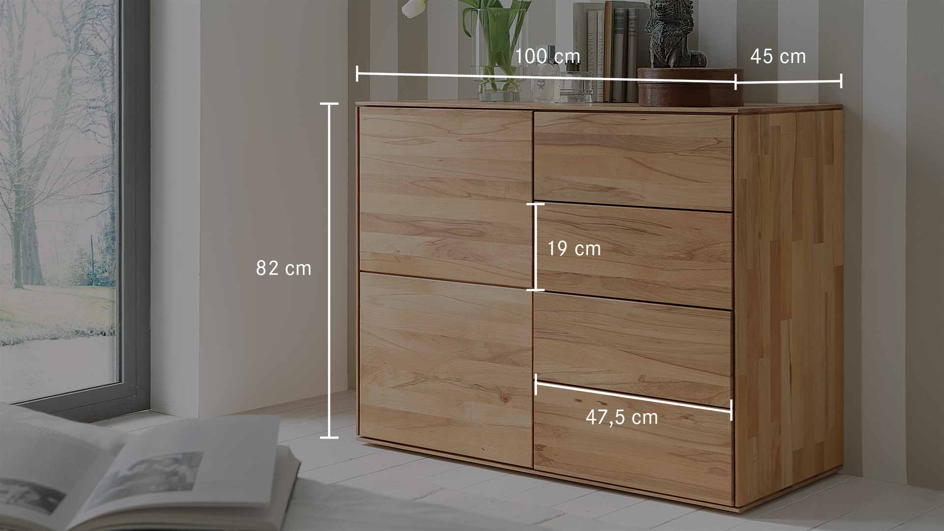 Die Schubladen und Türen sind mit hochwertigen Tip-On-Beschlägen ausgestattet und öffnen auf leichten Druck. Kommode "Bellavista" ist nicht nur im Schlafzimmer praktisch, sondern macht auch beispielsweise im Esszimmer oder in der Diele eine gute Figur. Sie erhalten das praktische Massivholz-Möbelstück wahlweise in Kernbuche oder Wildeiche.