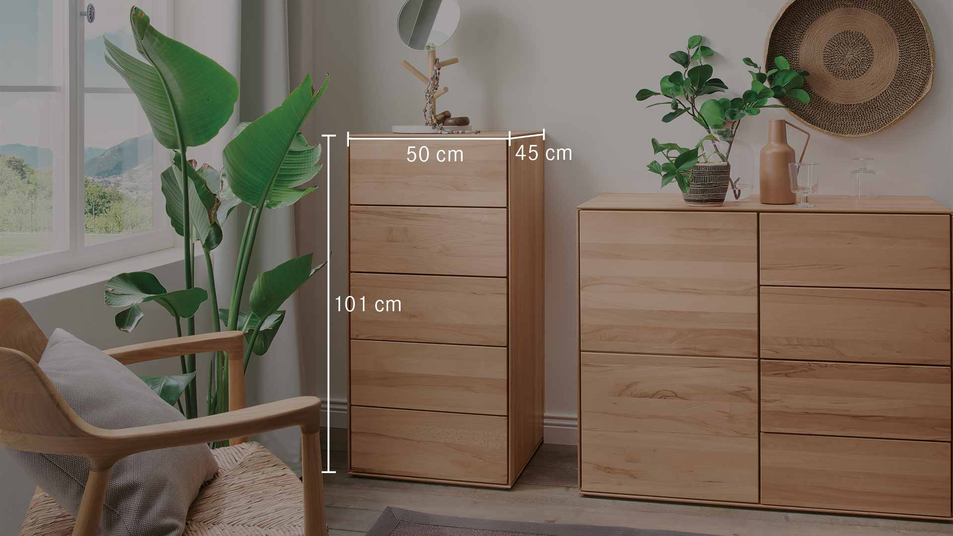 Mit 61 cm Höhe und nur 37 cm Tiefe eignet sich Variante 01 beispielsweise auch als Beistelltisch am Sofa oder Blumen-Tischchen mit praktischen Schubladen. Variante 02 bietet 5 Schubladen, in denen beispielsweise Socken, Gürtel und Krawatten übersichtlich aufgeräumt sind. Variante 03 kombiniert geschickt 4 Schubladen und 1 geräumiges Schrankfach, in dem Bettwäsche eine neue Heimat finden.