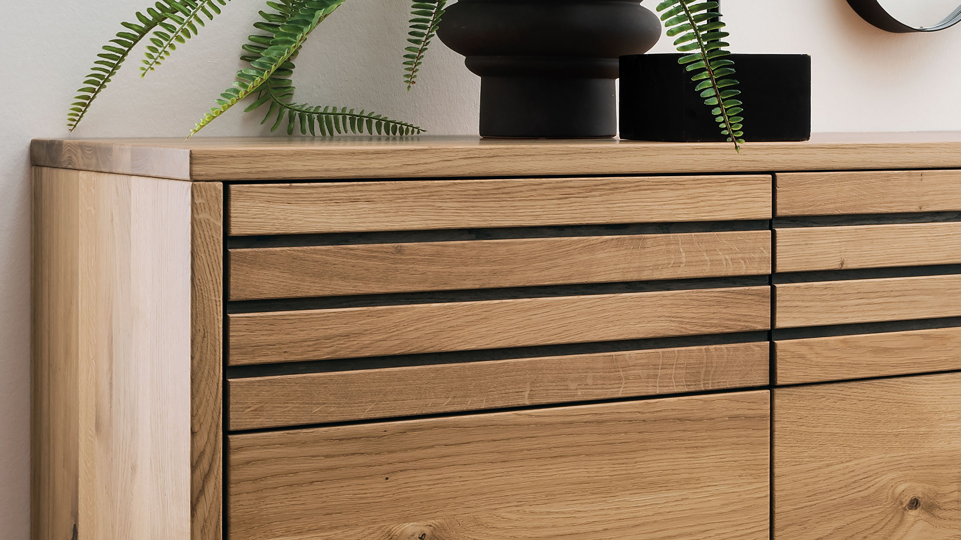 ...denn bei "Neras" sorgen die dunkelgrauen Absetzungen an den Schubladenfronten für spannende Akzente. Wo ist der neue Lieblingsplatz Ihrer Shirts, Unterwäsche und Socken?