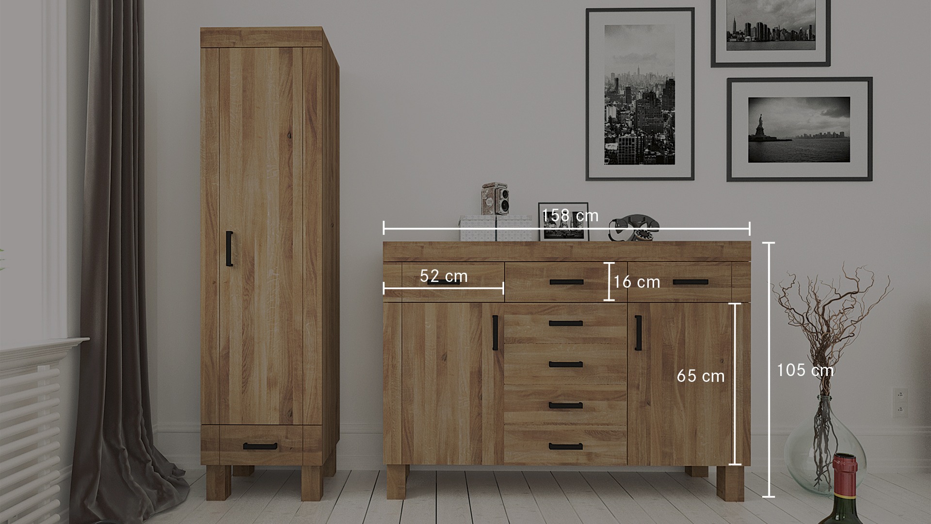 "Nevo" bietet nicht nur Platz für Deko-Artikel oder Zeitschriften auf der Kommode, sondern auch viel Platz für Ordnung im Korpusinneren. Das zeitlose, geradlinige Design aus geöltem Massivholz wird edel durch die dunklen Metallgriffe ergänzt. Die durchdacht eingebaute Softclose-Dämpfung ermöglicht leichtes Öffnen und lautloses, komfortables Schließen. Dank der 4 verschiedenen Varianten sind die Kommoden komplett unterschiedlich und individuell. Nur Schubladen oder eine Mischung aus Schubladen und Türen - es ist für jeden Geschmack etwas dabei!
