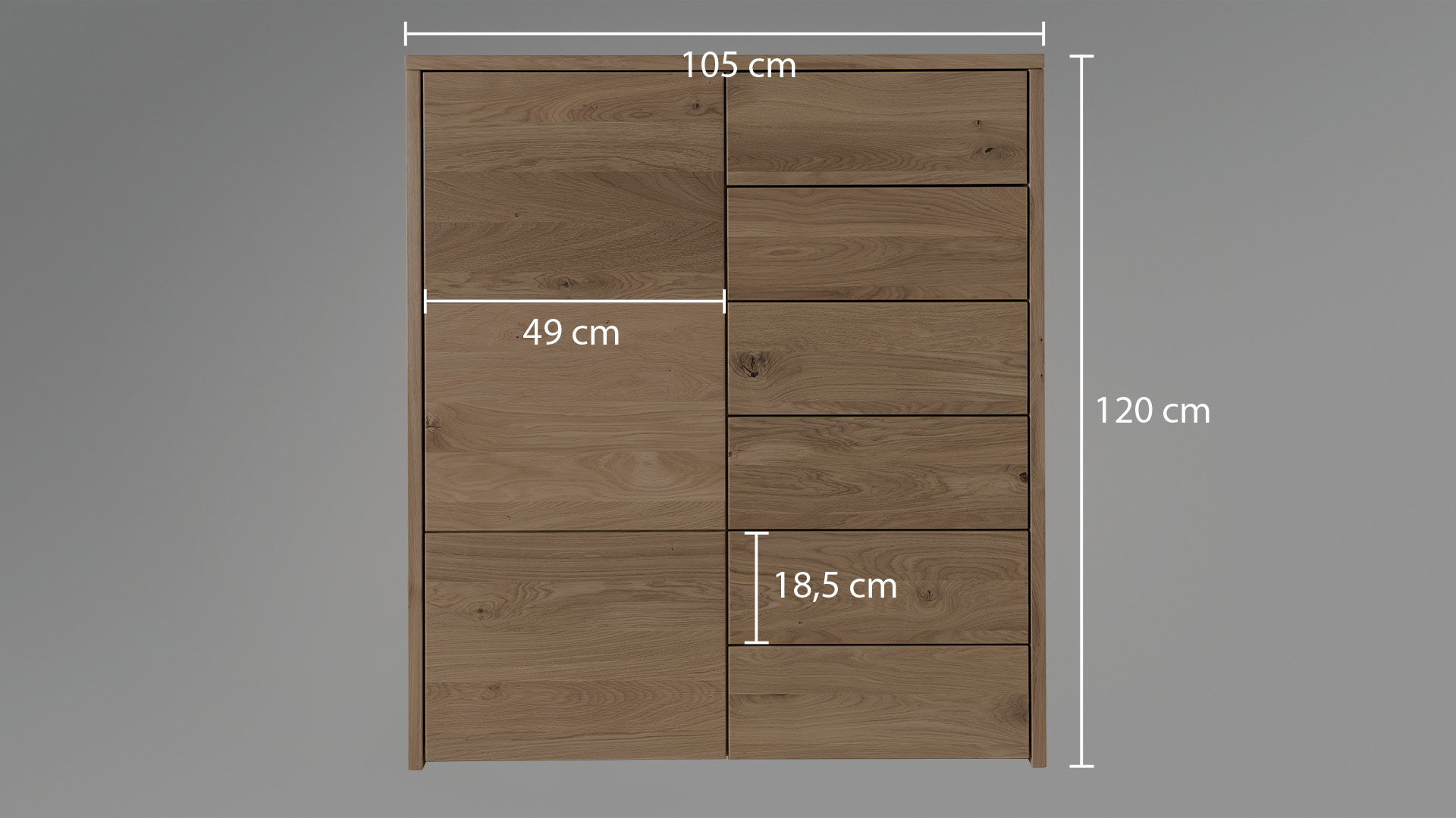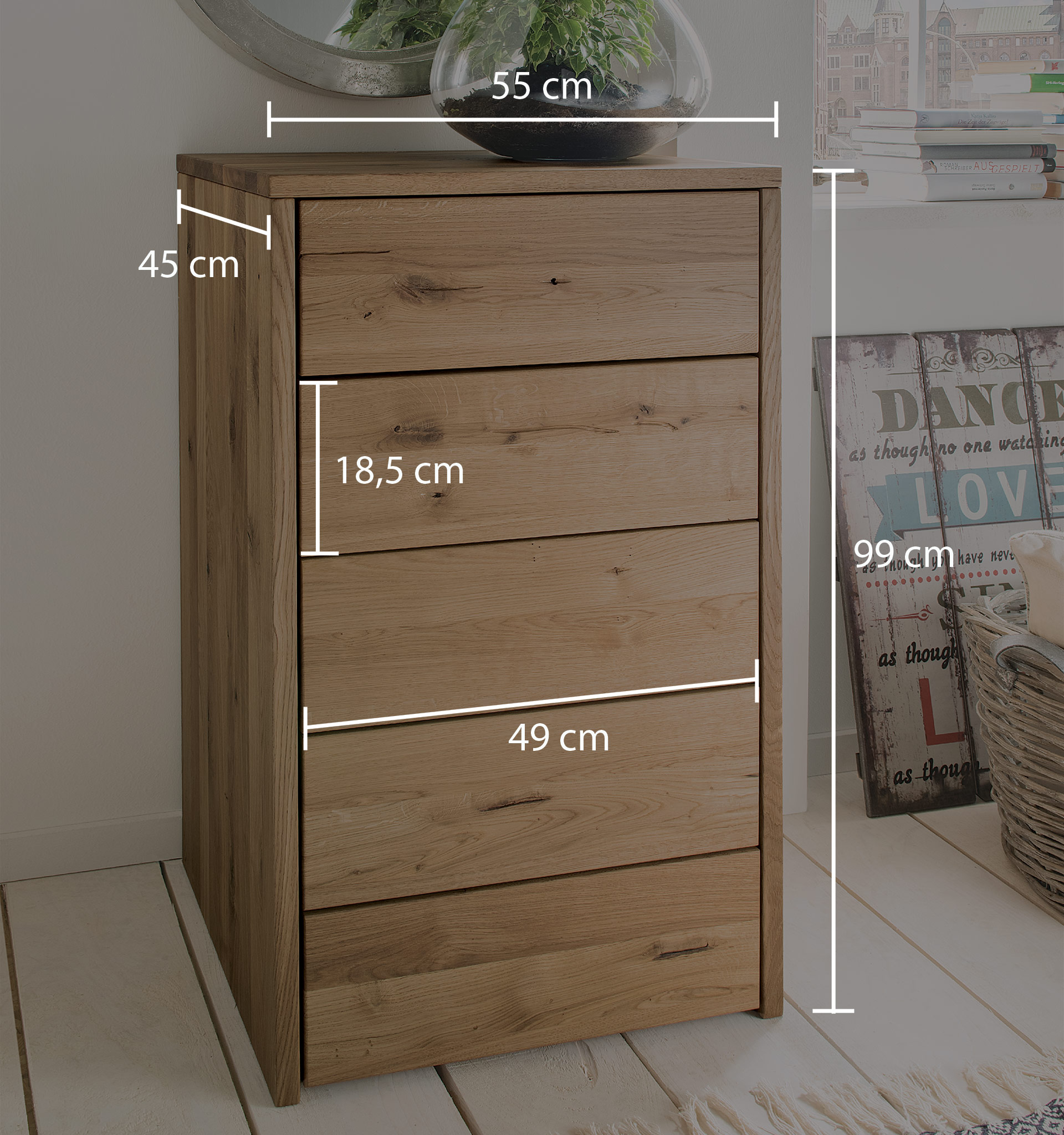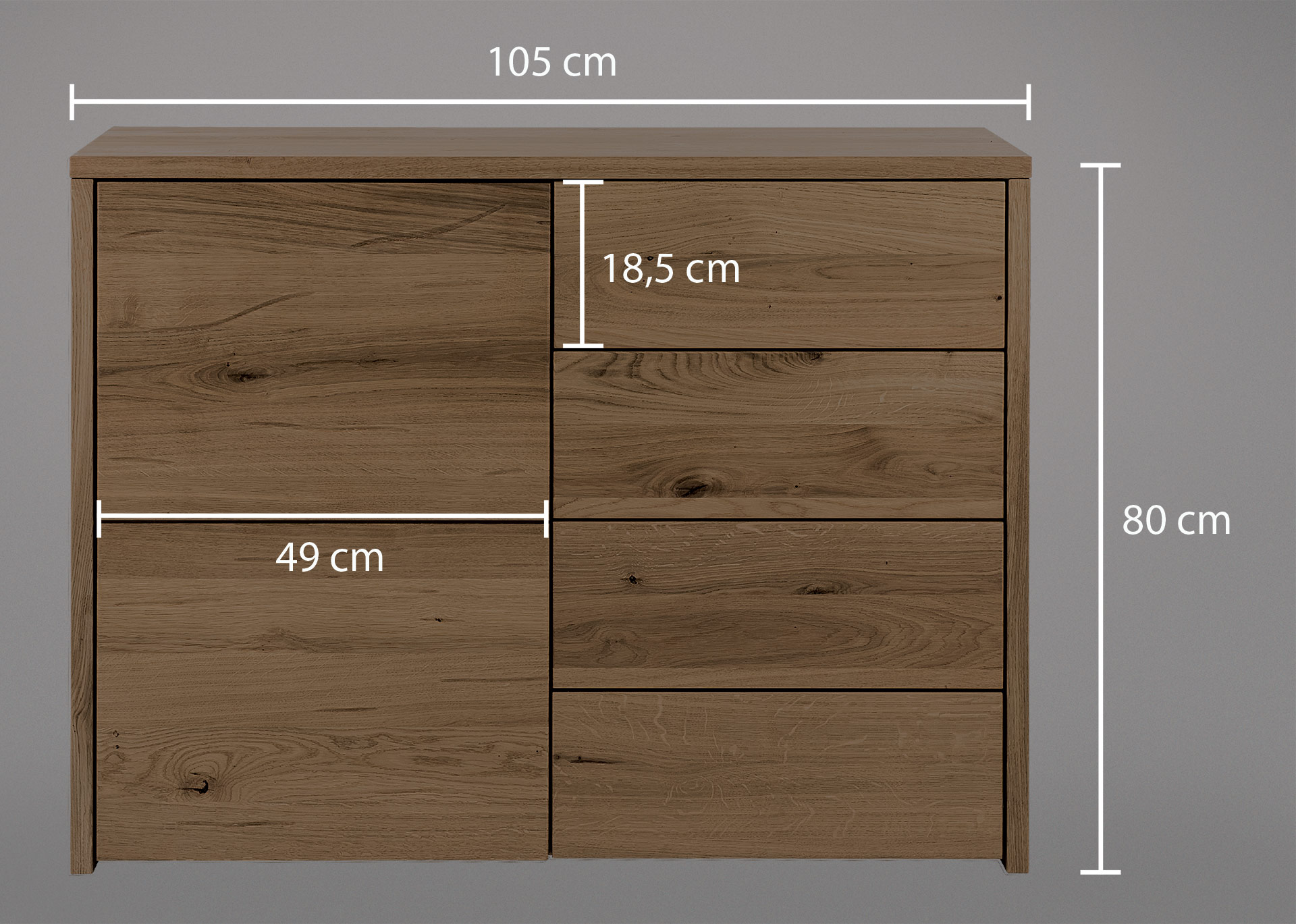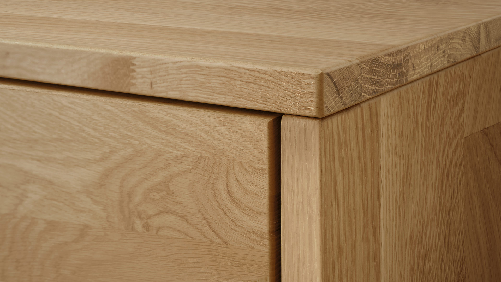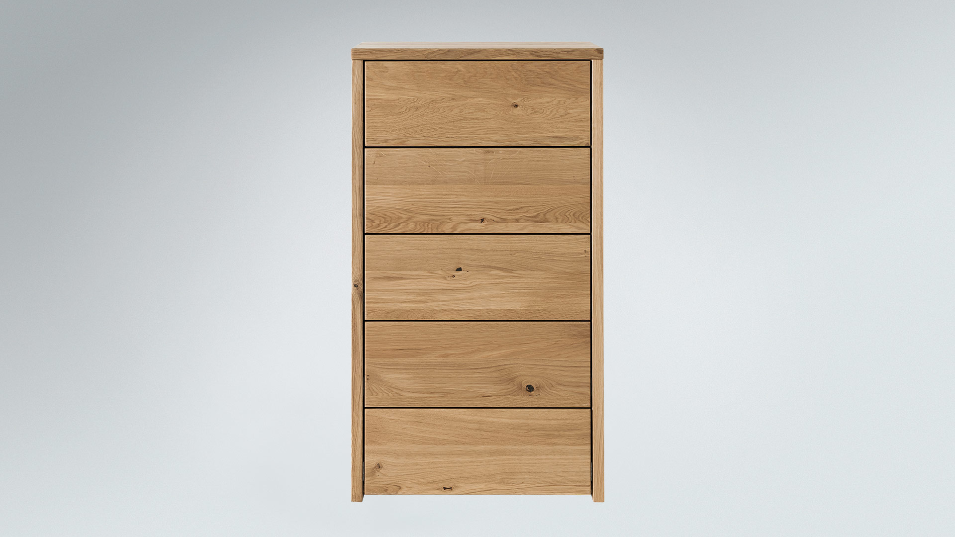 Um die klare Linie zu unterstreichen! Auch die dezenten Querfugen kommen so perfekt zur Geltung. Schubladen und Türen sind mit einer Tip-On Funktion versehen und öffnen auf leichten Druck. Ob in Kernbuche mit geschwungener Maserung oder Wildeiche mit markanter Zeichnung - Kommode "Selva" stellt den Charakter dieser lebhaften Hölzer perfekt in den Vordergrund. Wir bieten Ihnen dieses vielseitige Massivholzmöbel in 3 praktischen Varianten an. Genau das Richtige für Ihr Schlafzimmer, die Diele oder Ihren Essbereich!