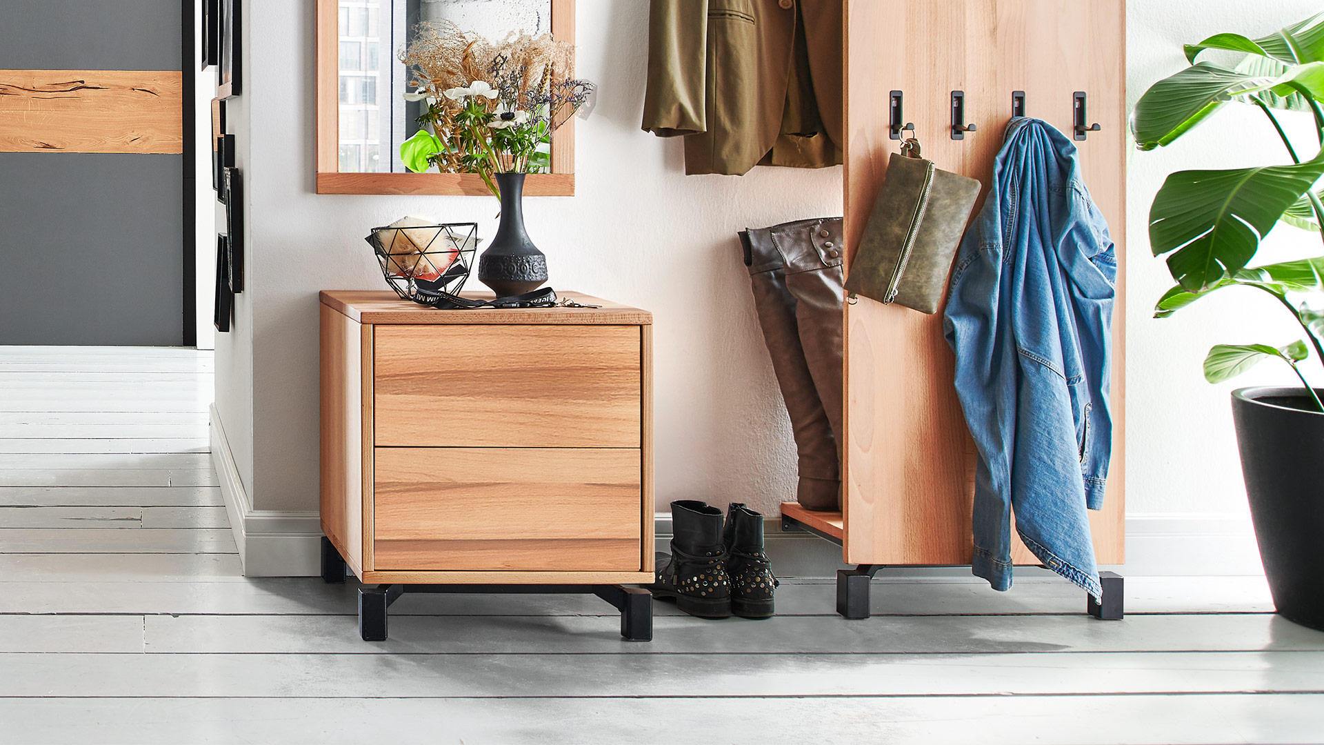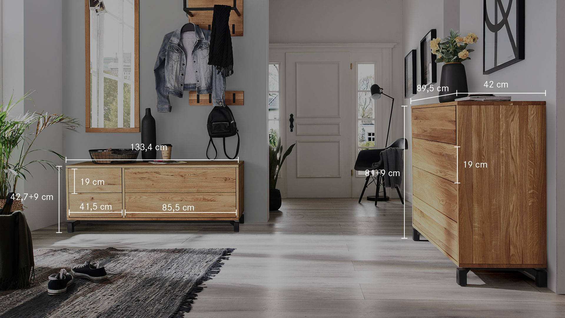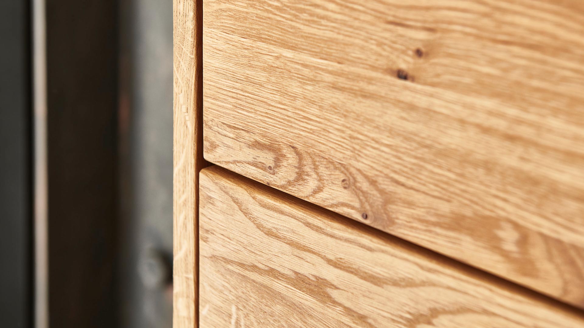 Wir bieten Ihnen die massive Schubladen-Kommode in 3 Varianten an. "Vestido" ist zudem in 3 Holzarten erhältlich und ergänzt damit Ihre Diele perfekt. Mit der elegant gemaserten Kernbuche oder der markanten Wildeiche mit geölter Oberfläche holen Sie sich auch optisch ein Stück Natur ins Haus. Das Kiefernholz in astfreier Qualität ist dagegen deckend weiß lackiert und wirkt hell und frisch. "Vestido" - ein wahrlich gelungener Empfang!