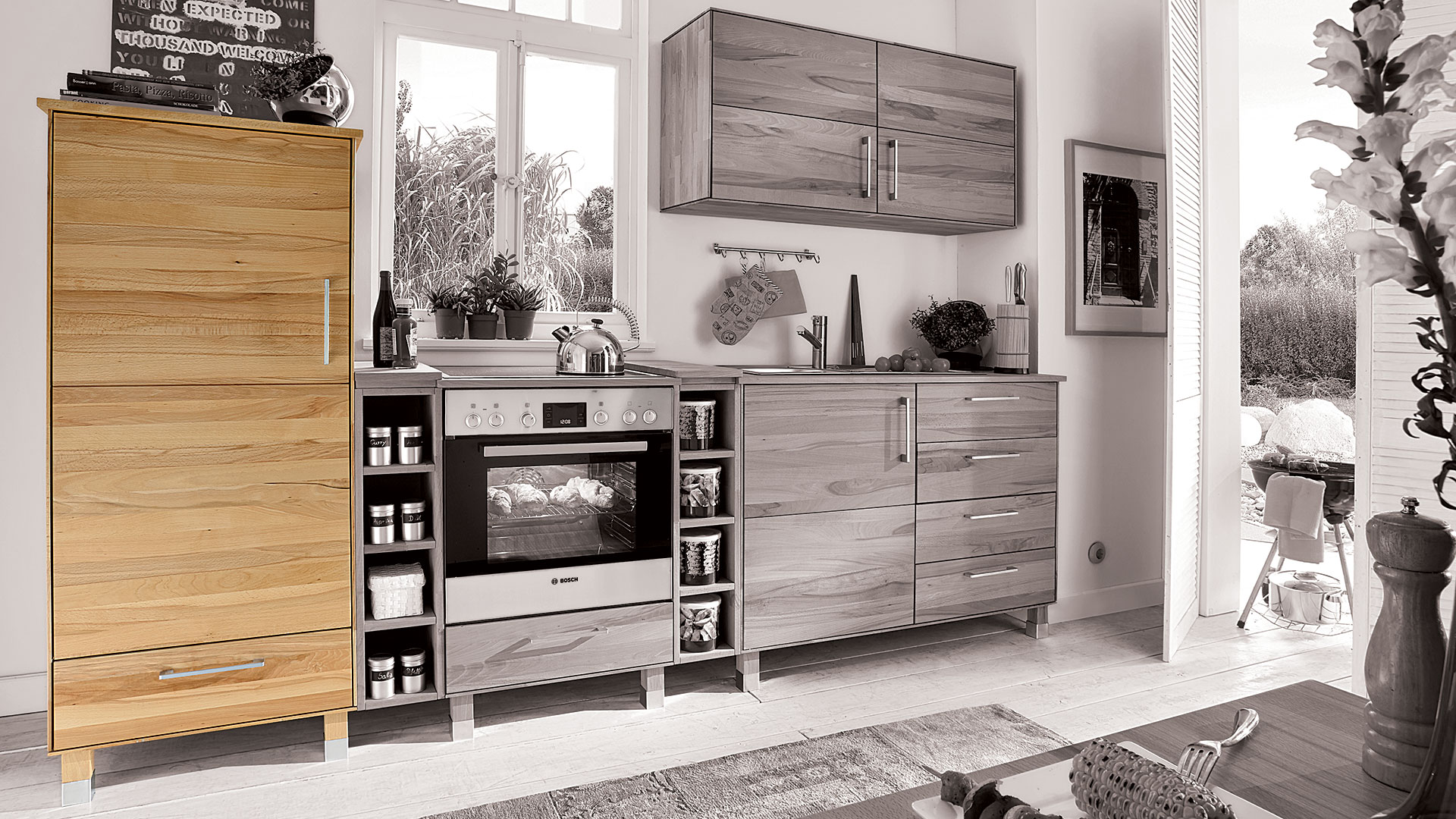 Mit unserem Kühlschrankmodul "Culinara" schaffen Sie ein einheitliches Küchendesign, das durch die edle Massivholzfront besonders viel Wärme ausstrahlt.