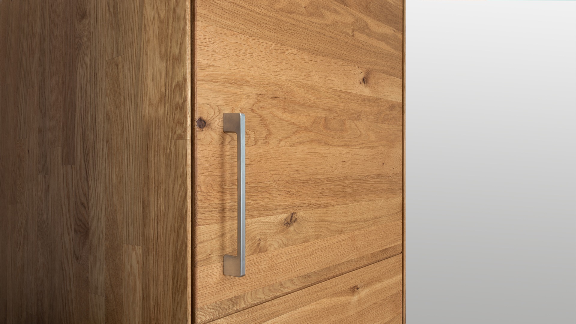 Im großen Innenfach des Moduls findet der Einbaukühlschrank seinen Platz. Zusätzlichen Stauraum bietet die untere Schublade, die je nach Wahl der Ausführung groß oder klein ausfällt. Besonders stilvoll sind die modernen Griffe, bei denen Sie zwischen 3 Varianten wählen dürfen.