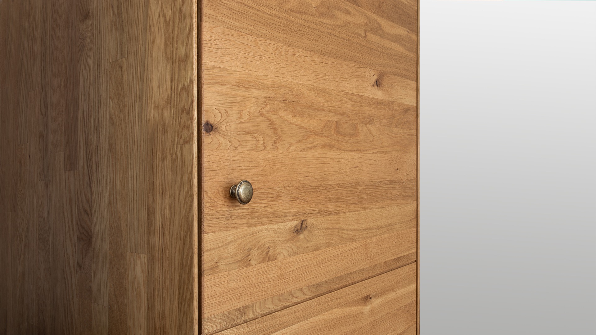 Reichlich Stauraum bietet die untere Schublade, die je nach Ausführung klein oder groß ausfällt. Ein besonderer Blickfang sind die erlesenen Metall-Griffe im trendigen Used-Look. Entscheiden Sie sich je nach Vorliebe für den markanten Bügel-Griff oder den filigranen Knopf-Griff.