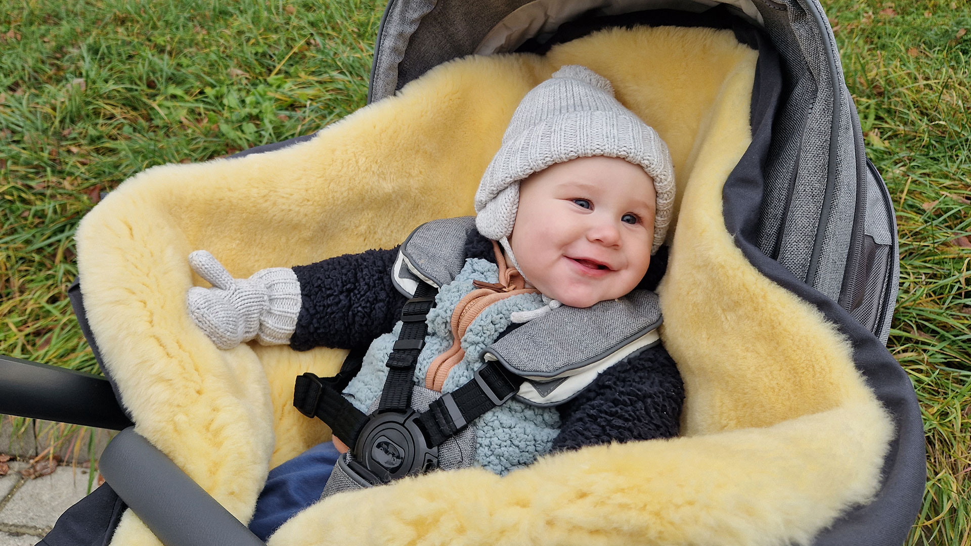 Machen Sie Ihren Kinderwagen oder Sportbuggy winterfest. Ob Regen, Schnee oder Eiseskälte - Der Lammfell-Kinderwagen-Fußsack "Ovina" hält Ihren Schatz mollig warm.