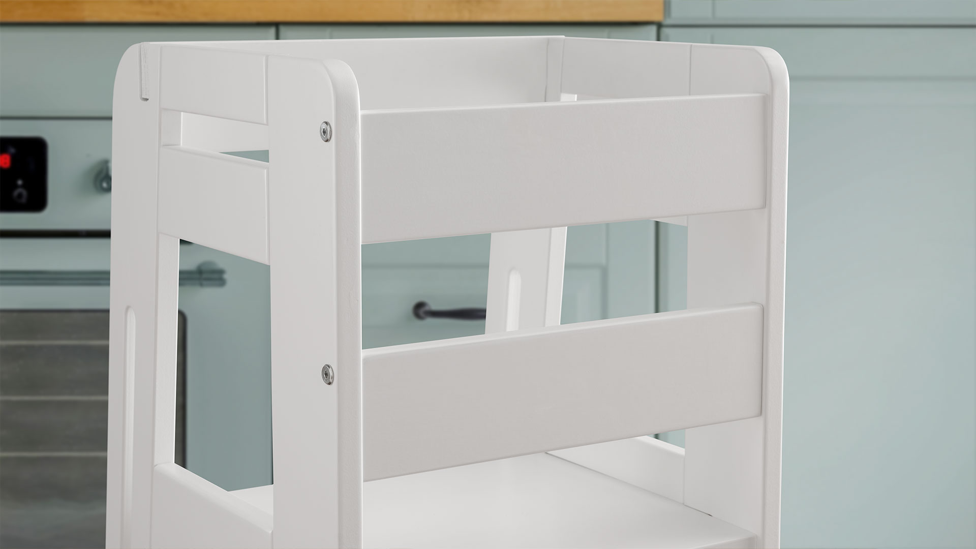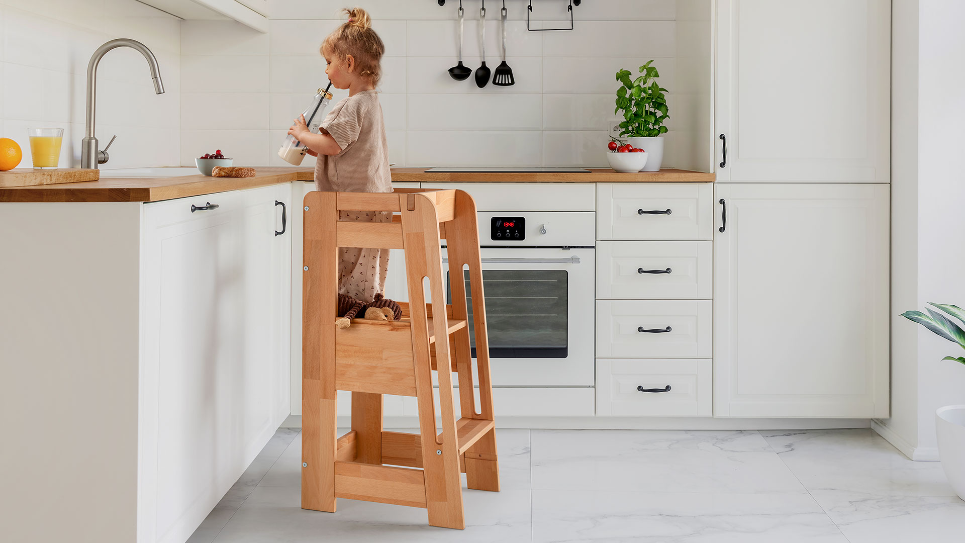 Mit dem Lernturm "Toretta" ist Ihr Kind mittendrin im Familiengeschehen. Auf Augenhöhe kann es alltägliche Situationen wie Kochen, Backen, Händewaschen oder Zähneputzen beobachten und auch selbst aktiv werden. Durch das Mithelfen werden aus einfachen Handgriffen wertvolle Erfahrungen, die das kindliche Selbstbewusstsein stärken und die Neugier fördern.