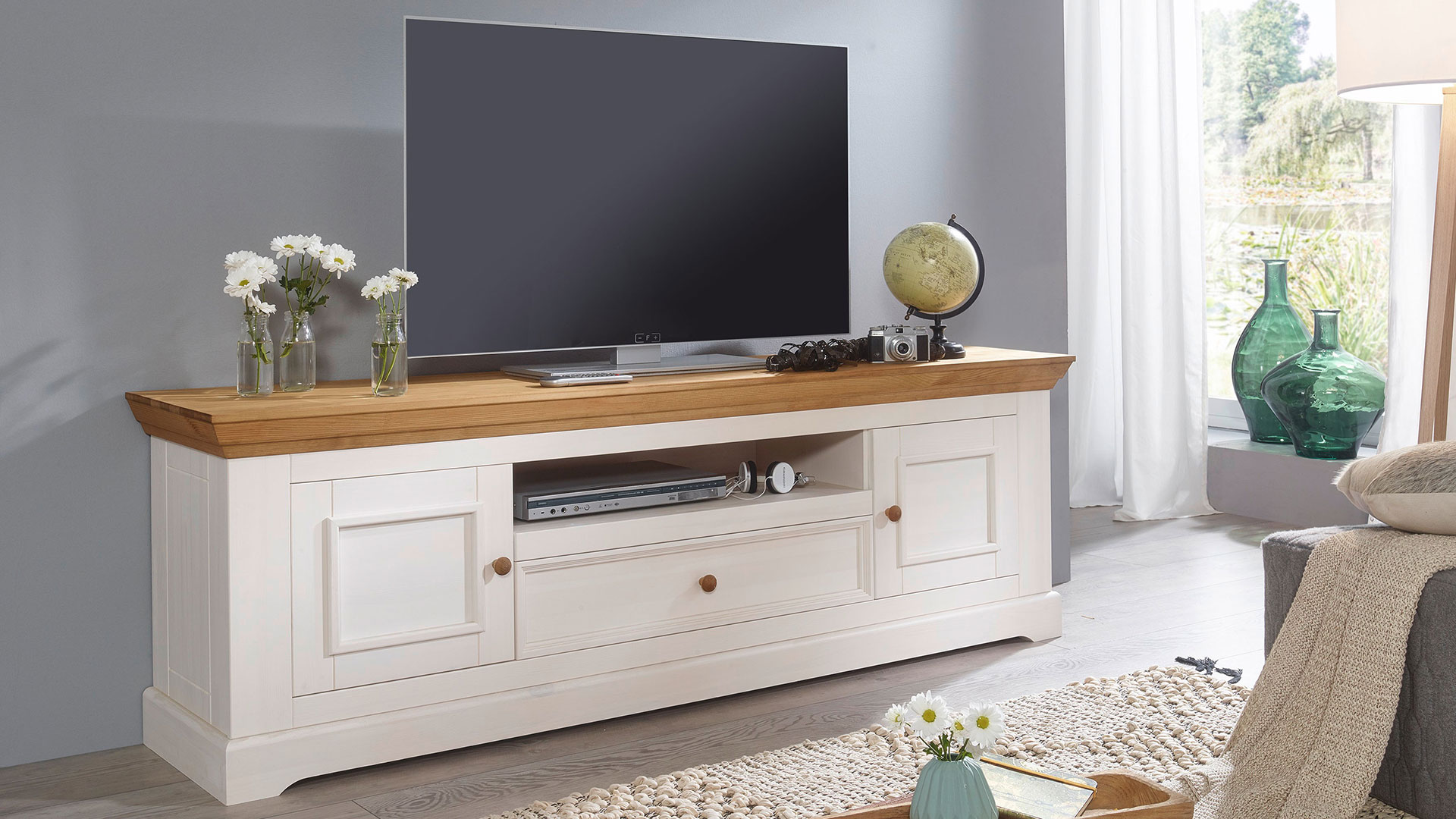 Lowboard "Molina" kümmert sich nicht nur mit ländlichem Charme um Ihre Multimedia-Geräte.