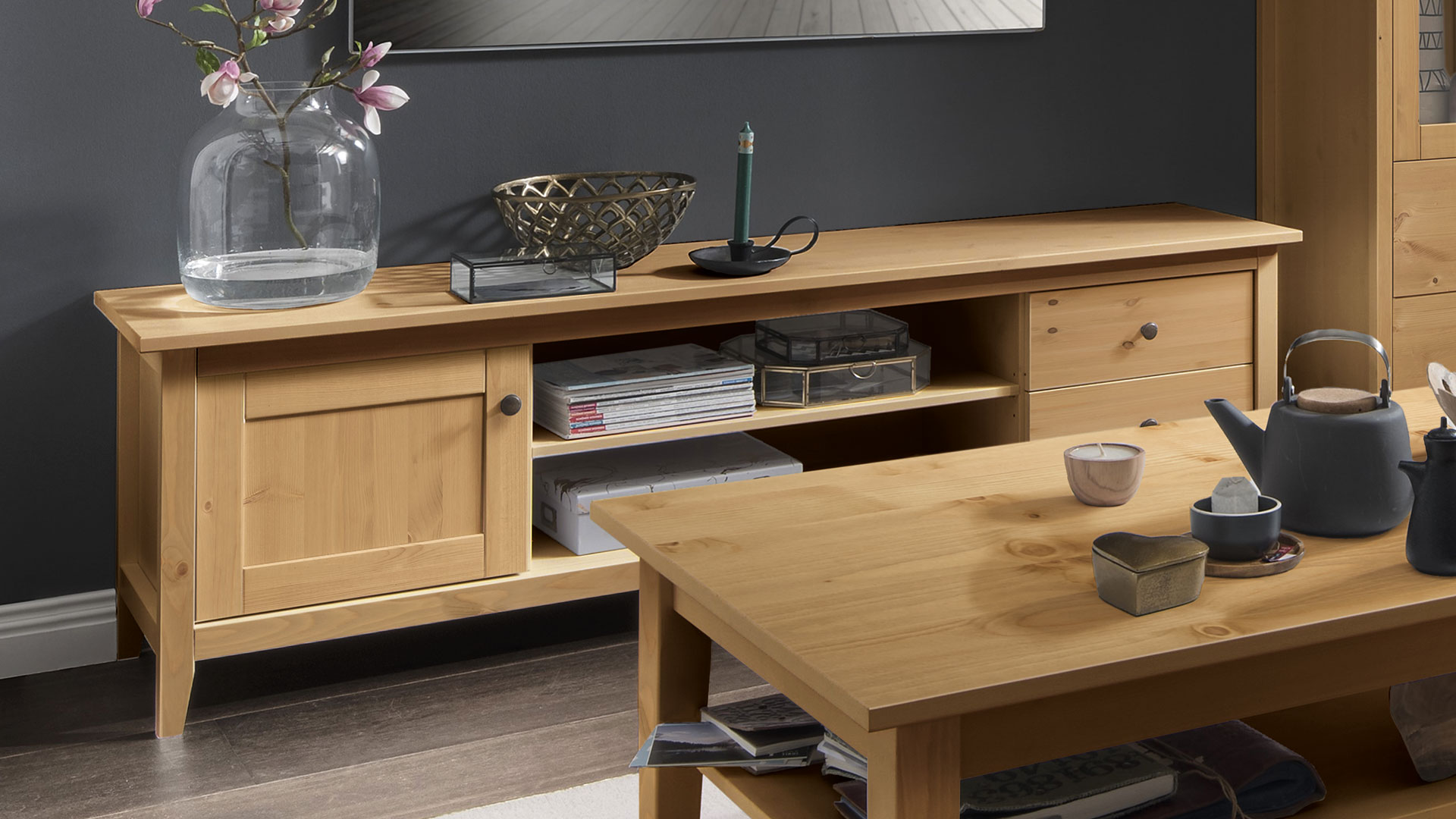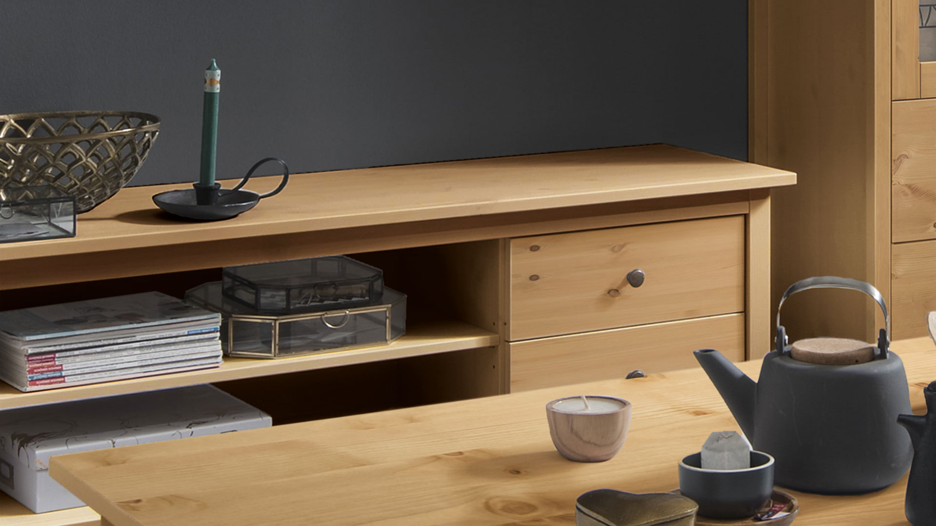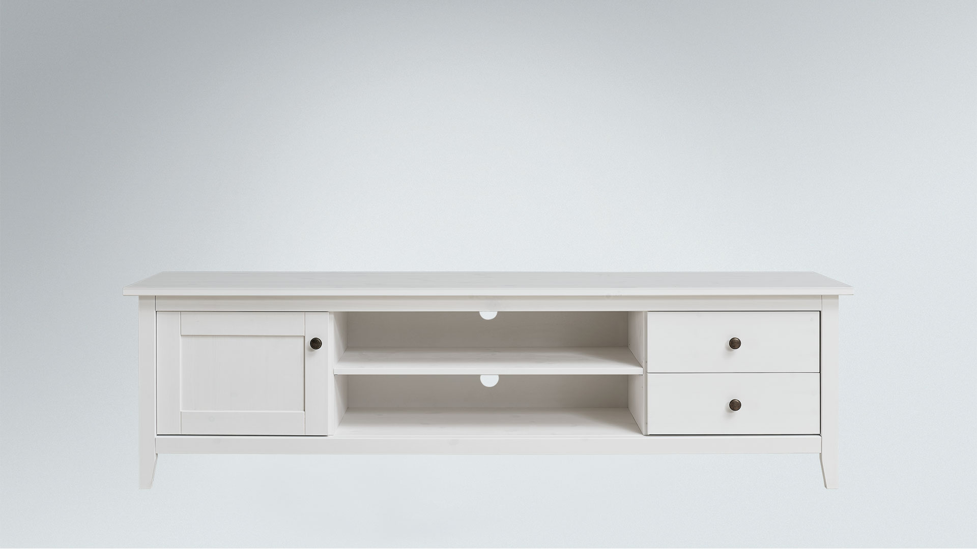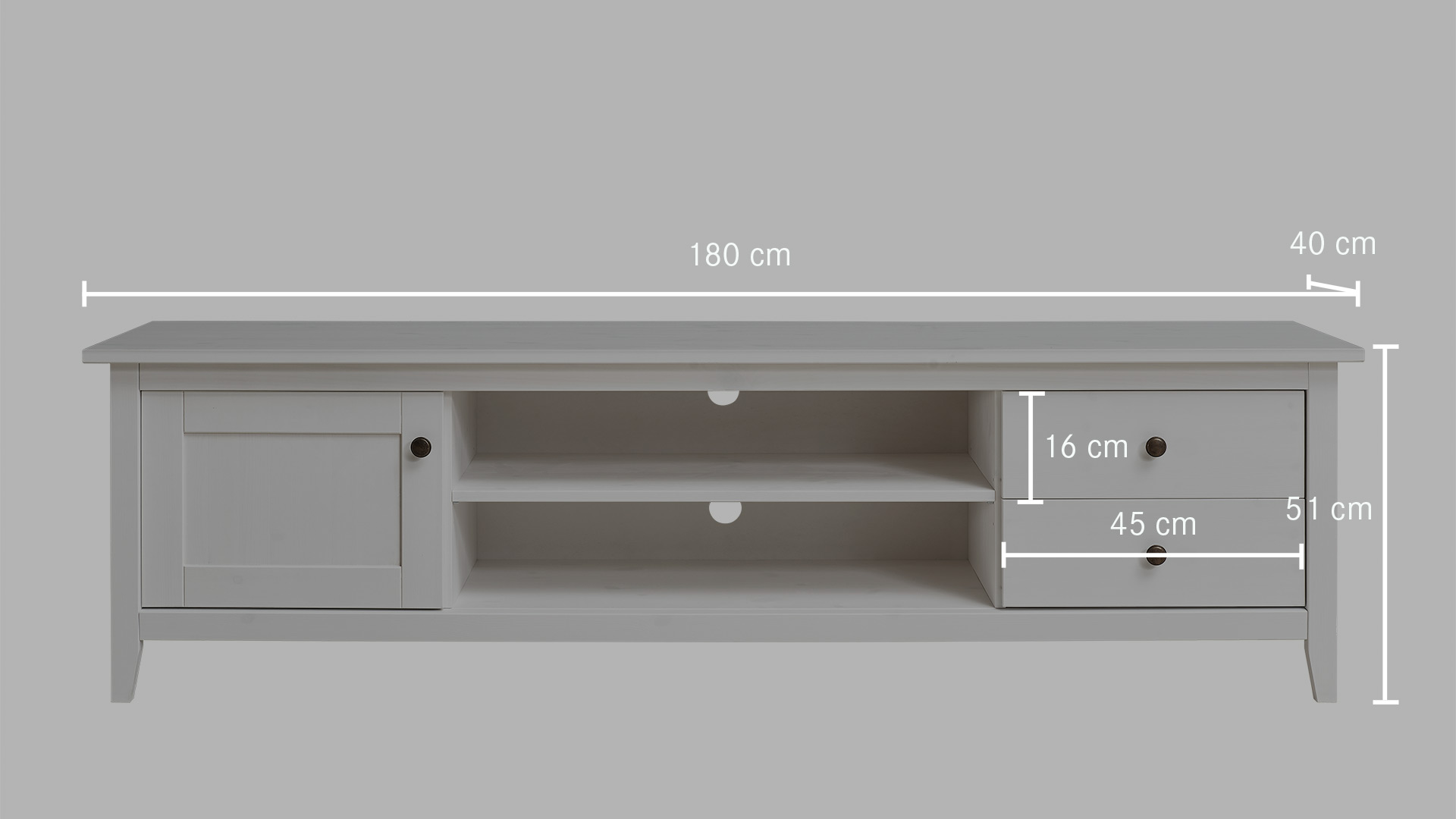 ... CDs, Blu-Rays, Fernbedienungen, Zusatzgeräte und Bedienungsanleitungen finden hier ein angemessenes Zuhause. Die 144 cm breite Variante bietet Ihnen in offenen Fächern und Schubladen viel Stauraum an, die Variante mit 180 cm hat zusätzlich noch Platz hinter der Holztür. Beide Ausführungen haben einen praktischen Kabelauslass, damit die Verkabelung blickdicht hinter dem Board verschwindet.