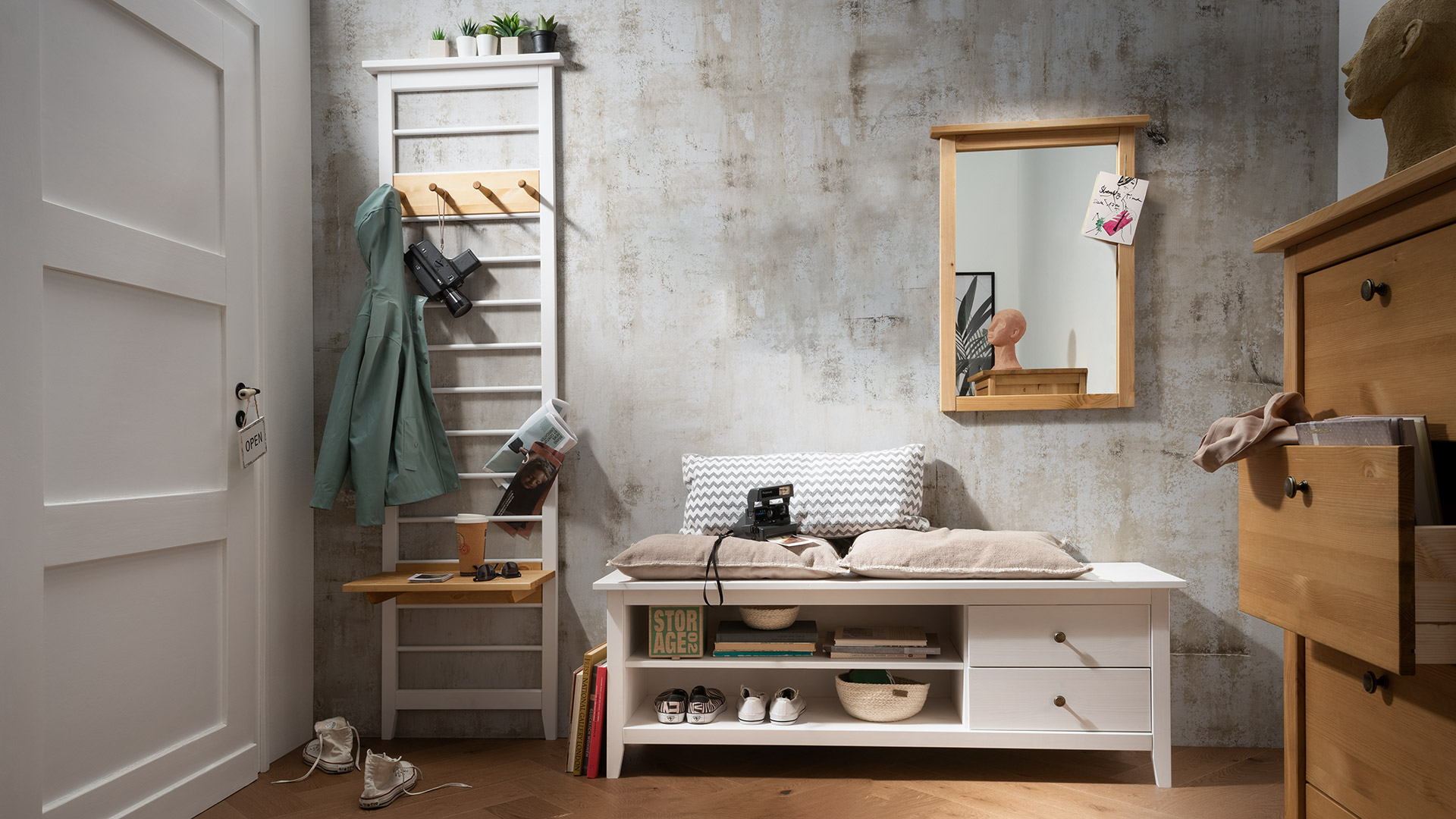 Für dieses Produkt mit langlebiger weißer oder farbiger Oberfläche werden hochwertige Wachse, Lasuren und Lacke mit synthetischen Pigmenten eingesetzt.