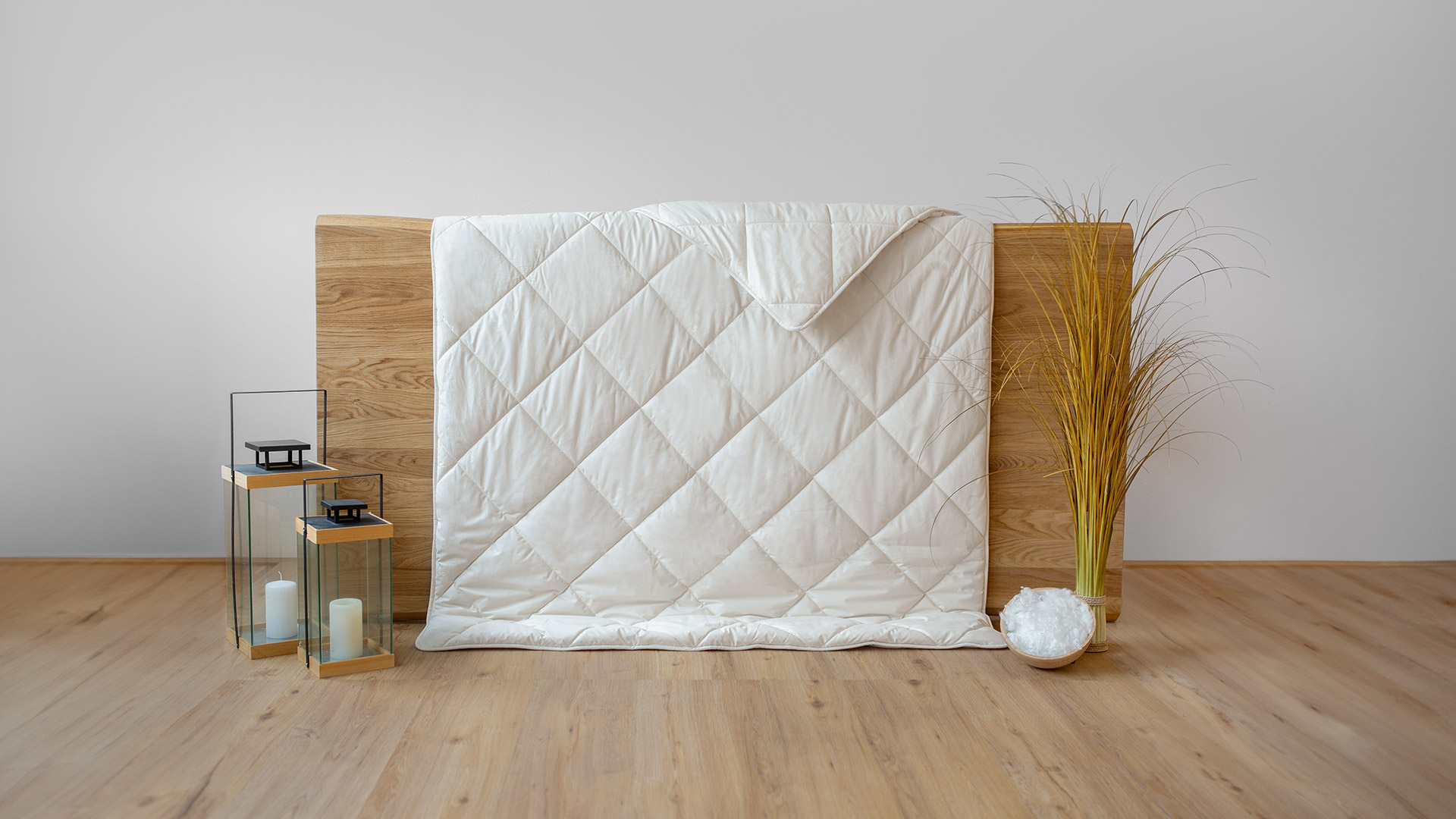 Bei Duo-Bettdecken werden zwei Deckenteile separat gesteppt und anschließend zu einer Decke vereint. So entsteht eine besonders wärmende Bettdecke.