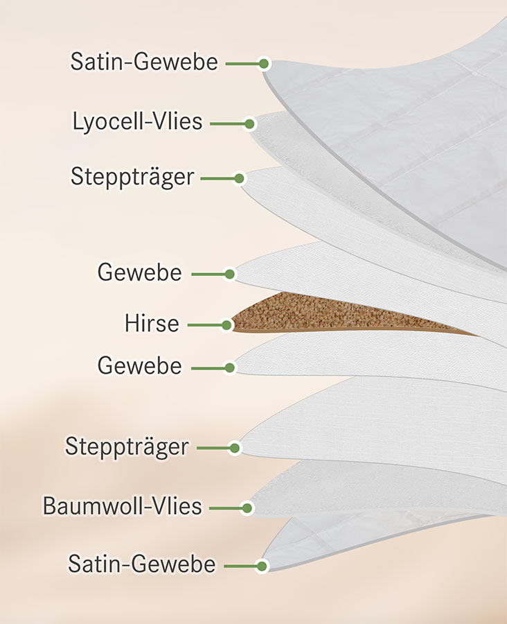 Flexibel nachgiebige, temperaturausgleichende Bio-Hirseschalen aus kontrolliert biologischem Anbau für sanften, natürlichen Tiefendruck.