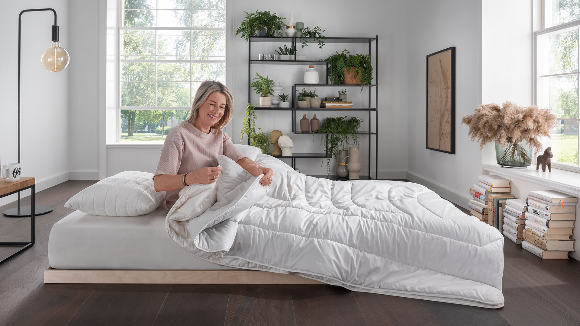 Zwei Bettdecken mit unterschiedlichen Füllgewichten und raffinierter Steppung sorgen zu jeder Jahreszeit für das richtige Schlafklima. Mit praktischen, nickelfreien Druckknöpfen.