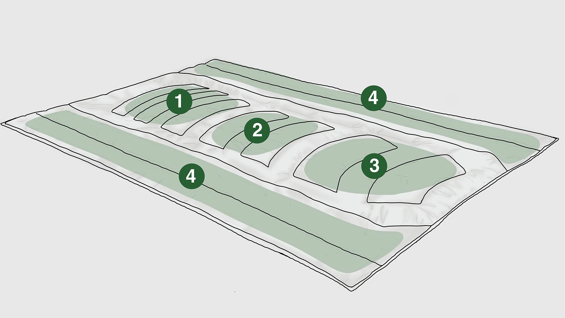 Aufwändige, dem Körper angepasste 4-Zonen-Steppung für perfektes Temperaturmanagement und optimale Anschmiegsamkeit.