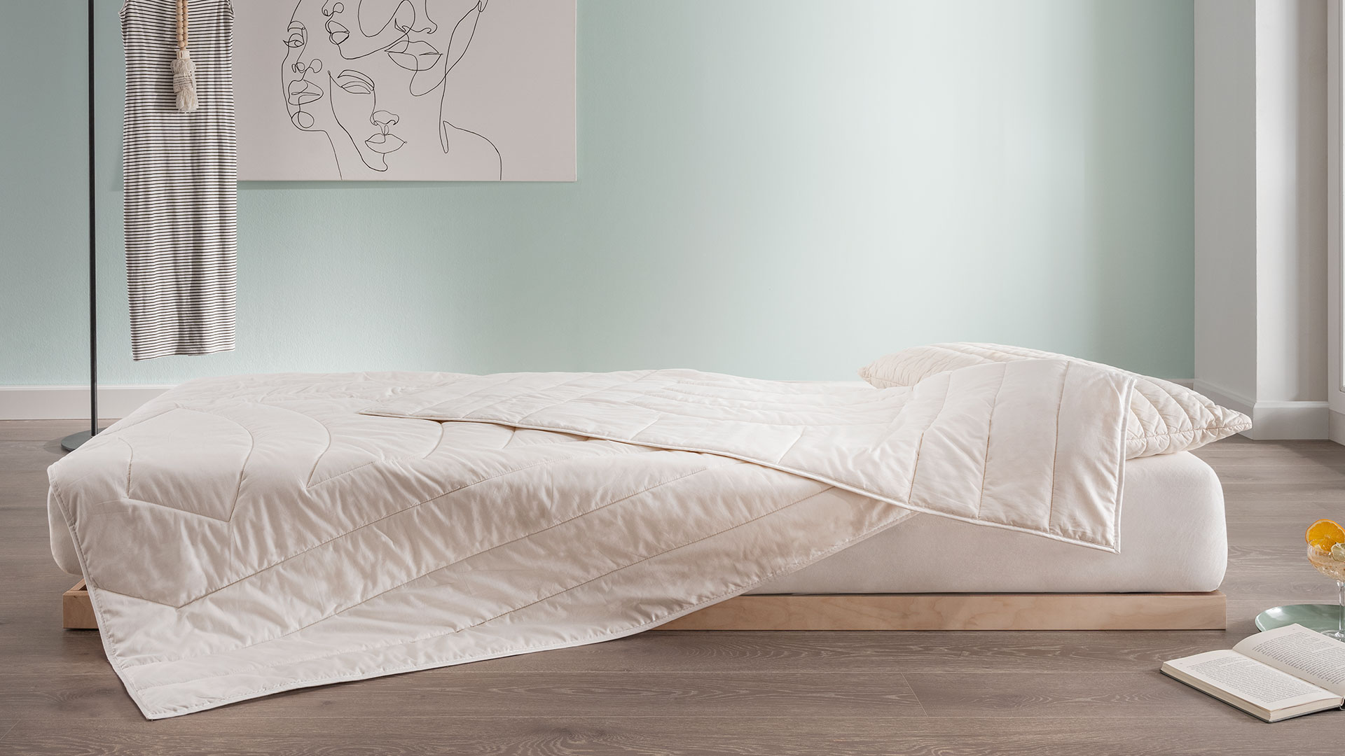 Atmungsaktiver Edel-Satin aus 100 % kbA-Baumwolle mit leicht seidigem Glanz und herrlich fließendem Fall - perfekt auf die edlen Füllmaterialien abgestimmt.