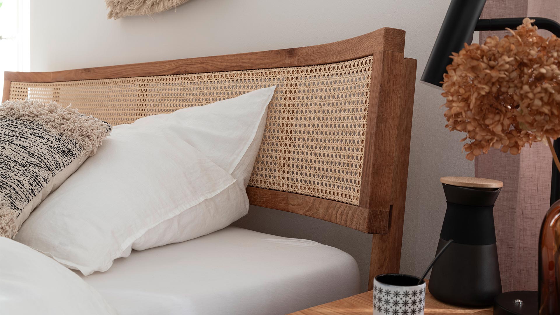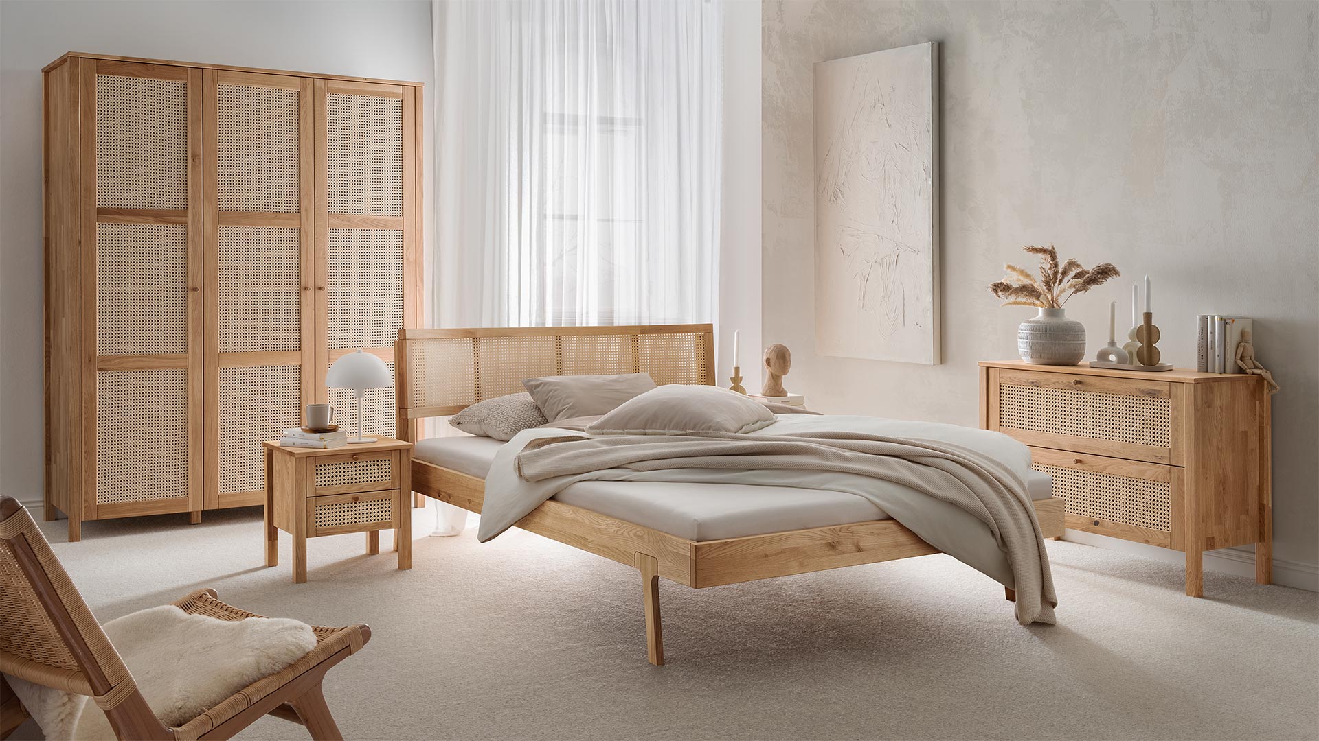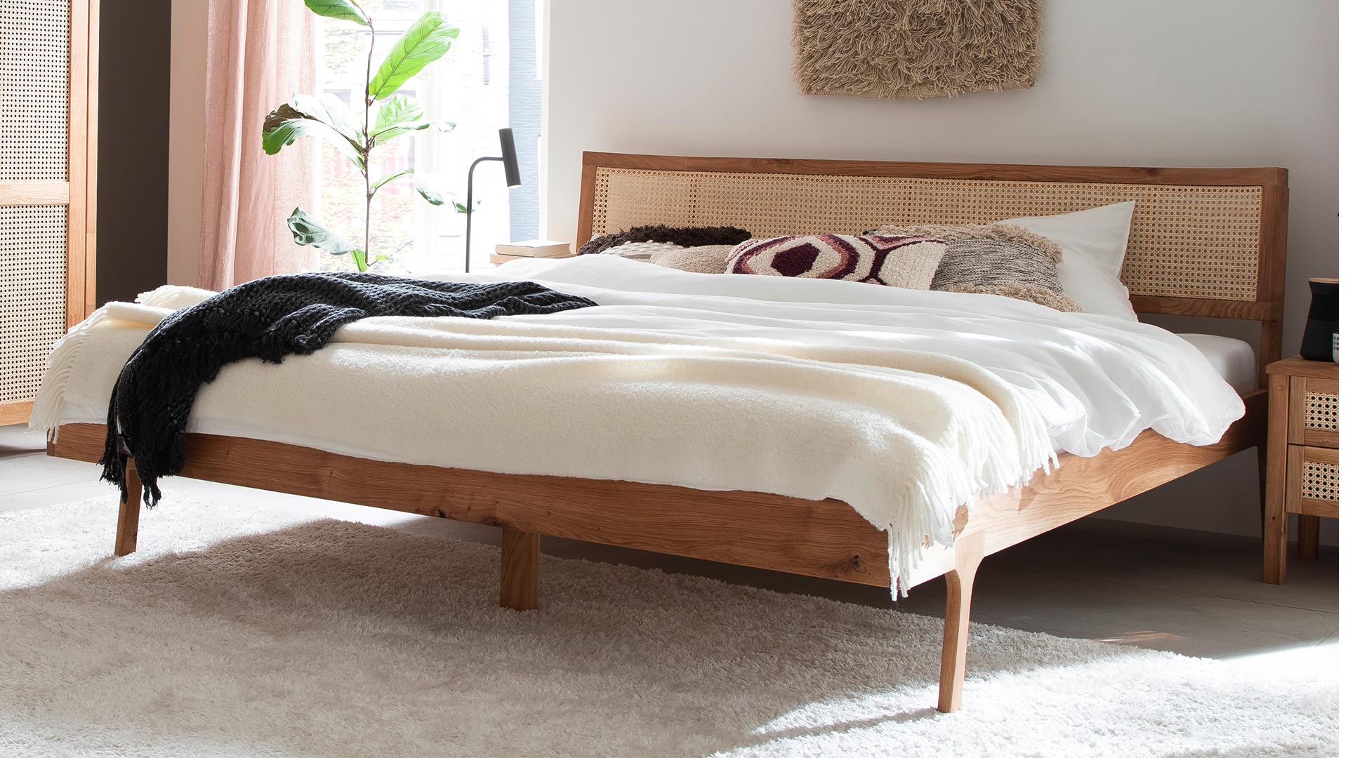 Mit dem Massivholzbett "Belvedere" hält höchste Möbelbaukunst Einzug in Ihr Schlafzimmer. Das stilvoll geschwungene Kopfteil mit Wiener Geflecht lädt jede Nachts aufs Neue zum Träumen ein.
