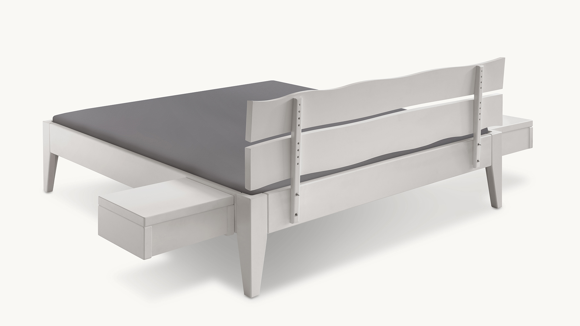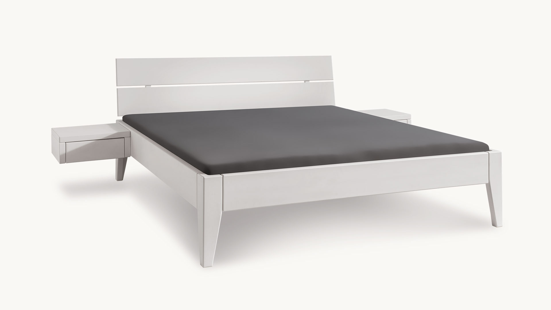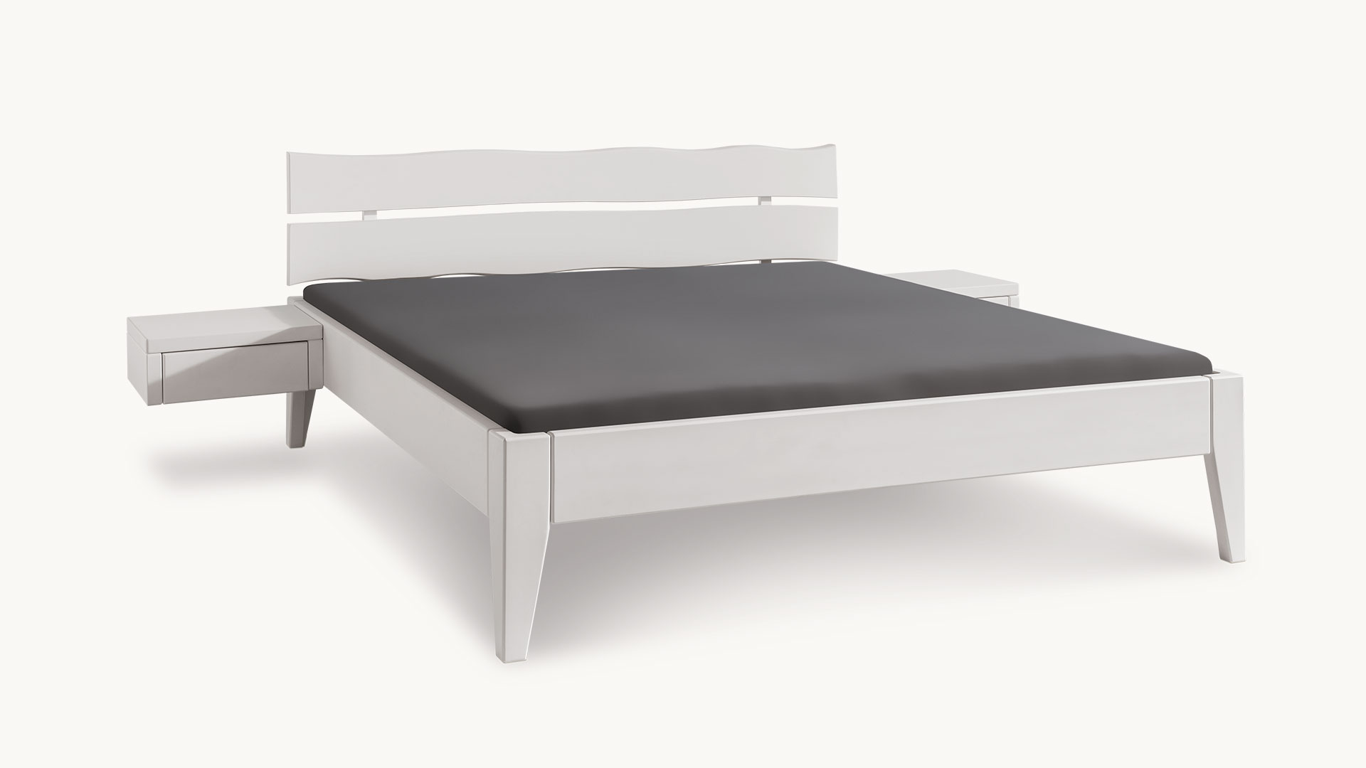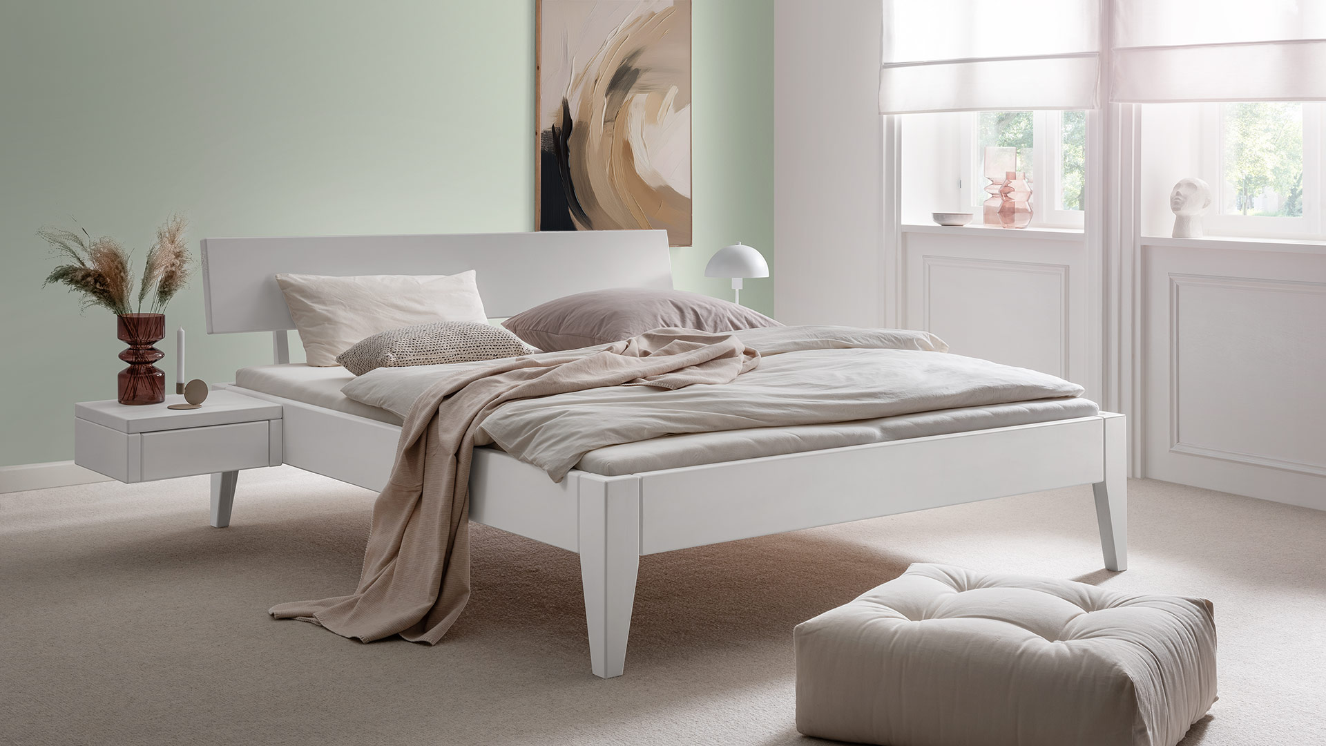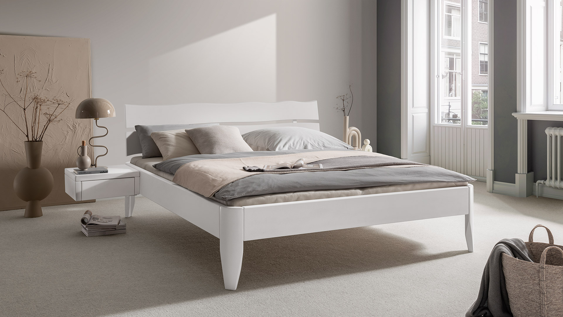 Mit seiner klaren Linienführung und der edlen weißen Lackierung auf hochwertigem Buchenholz fügt sich Massivholzbett "Candora" harmonisch in jedes Schlafzimmerambiente ein. Das schlichte, moderne Design wird durch feine Details und die präzise Verarbeitung besonders stilvoll in Szene gesetzt.