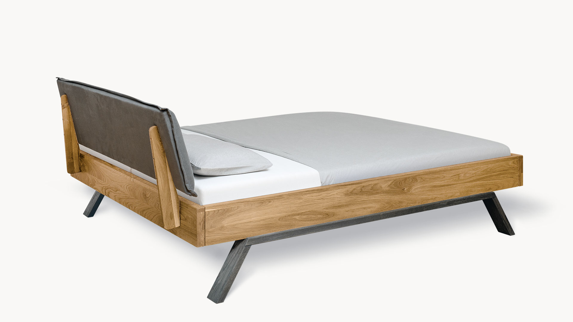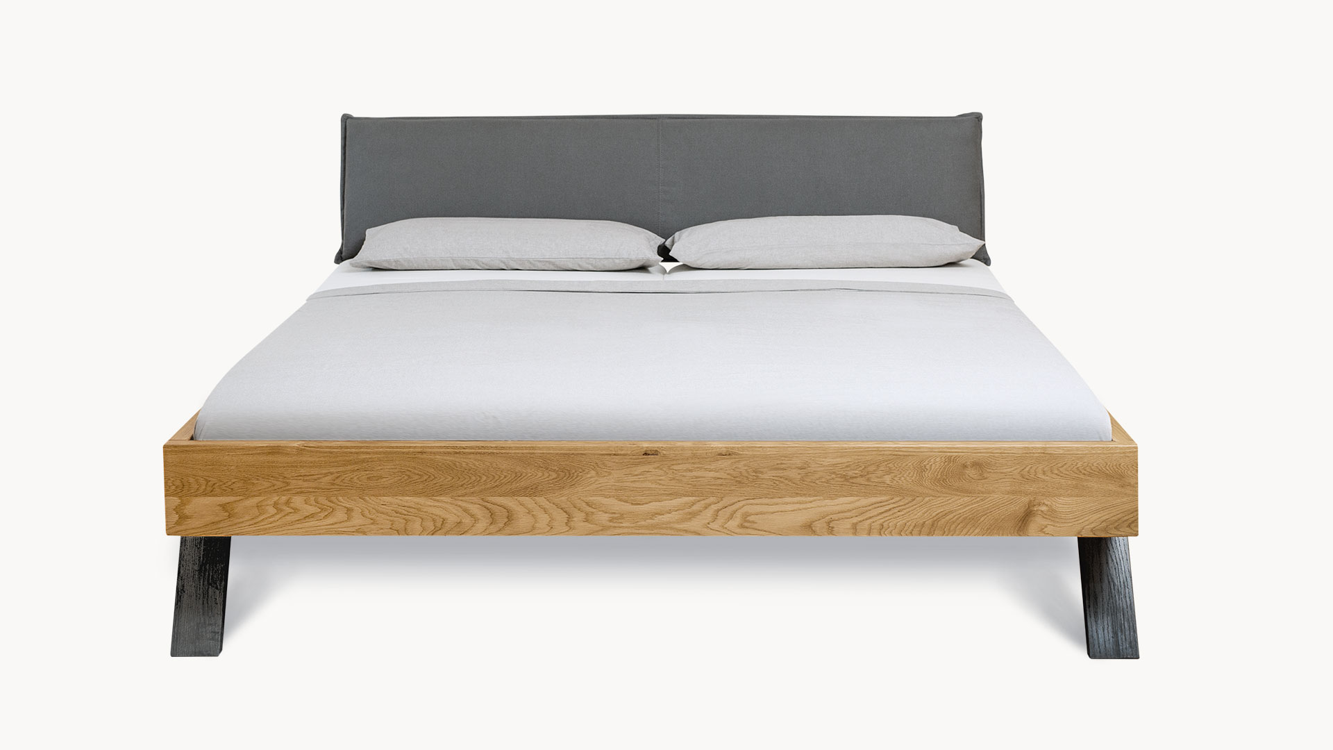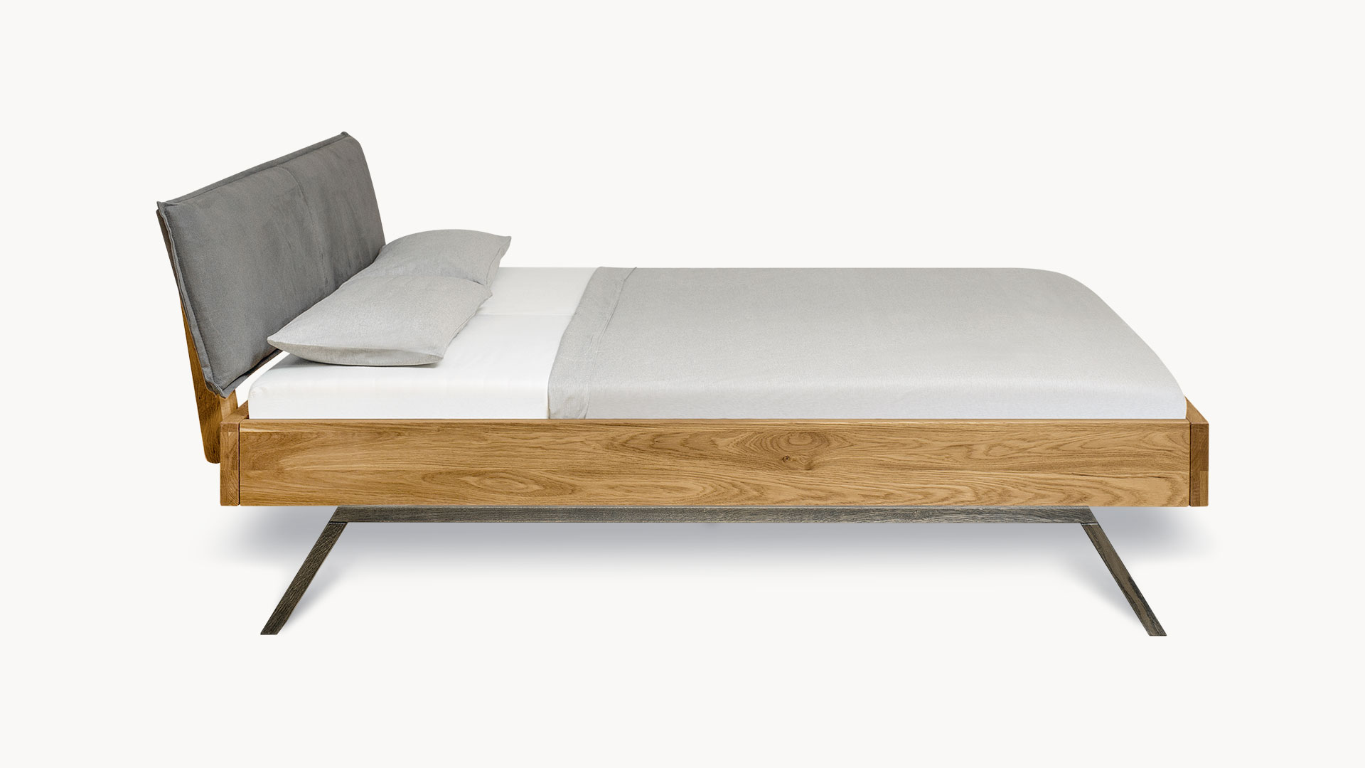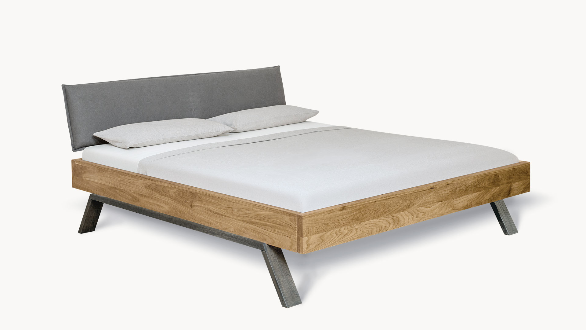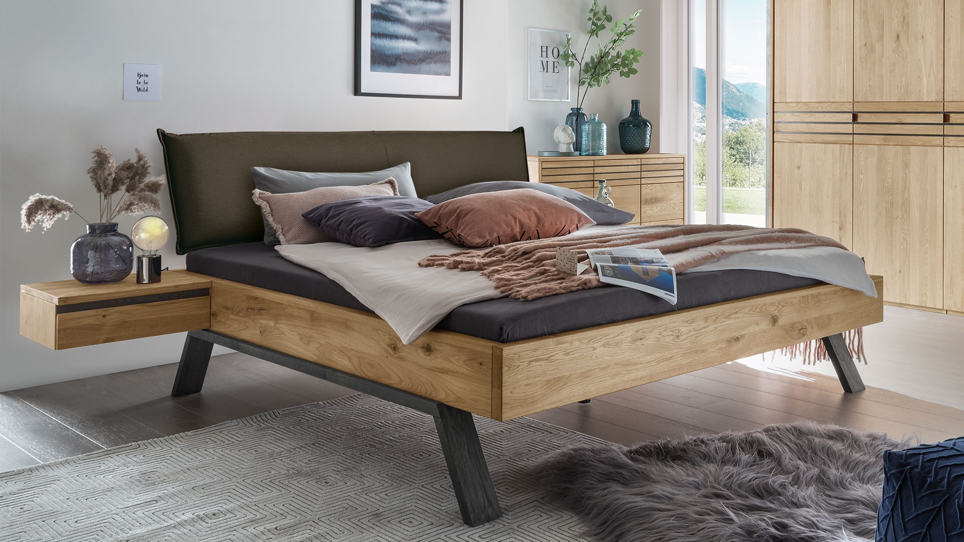 Wählen Sie die trendige Liege oder aus vier Kopfteilen Ihren Favoriten. Bringen Sie mit den Holzkopfteilen die einzigartige Maserung der edlen Wildeiche voll zur Geltung. Oder lehnen Sie sich entspannt an Ihr luxuriöses Stoffkopfteil und genießen Sie Ihren Morgenkaffee im Bett.