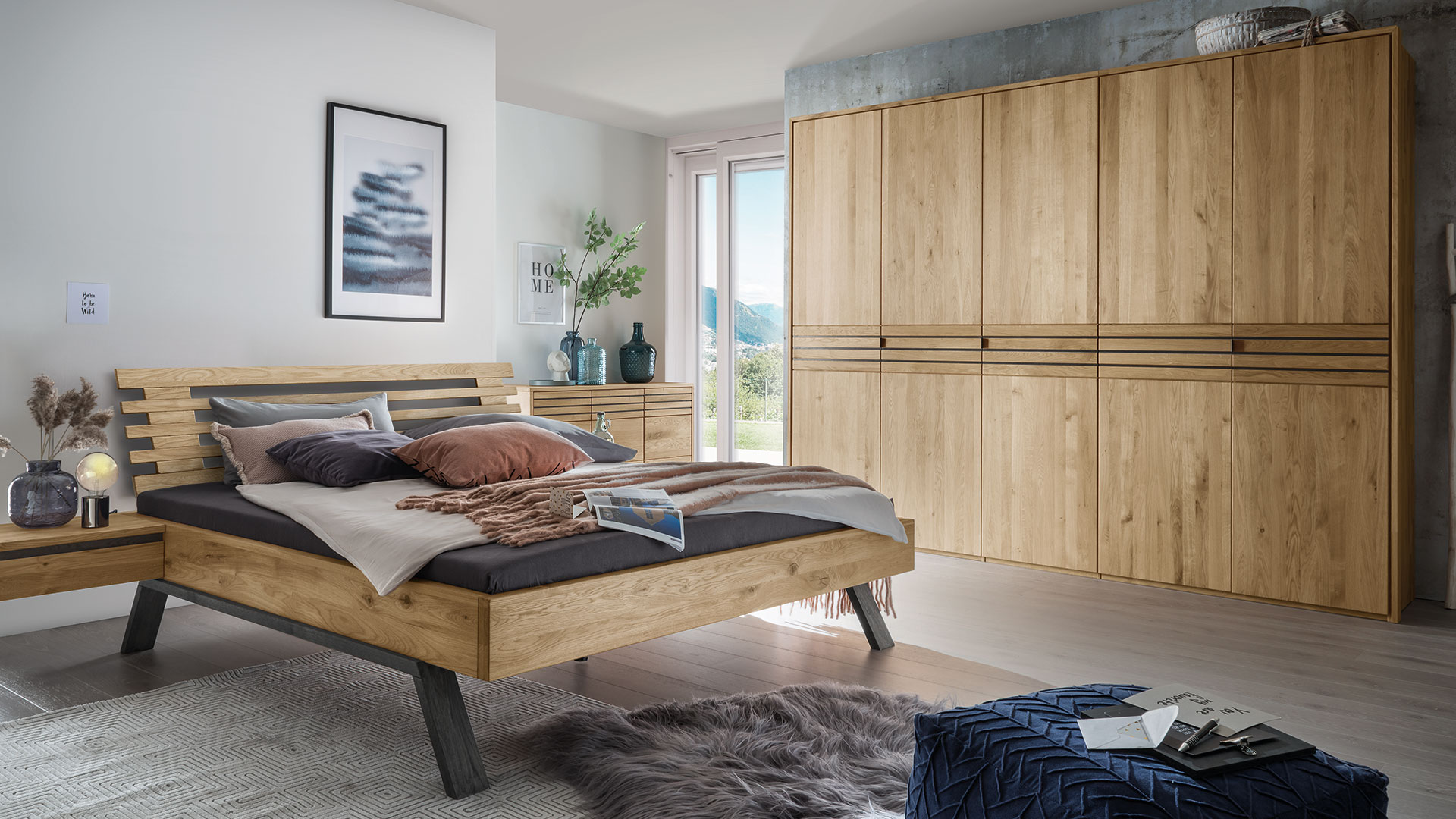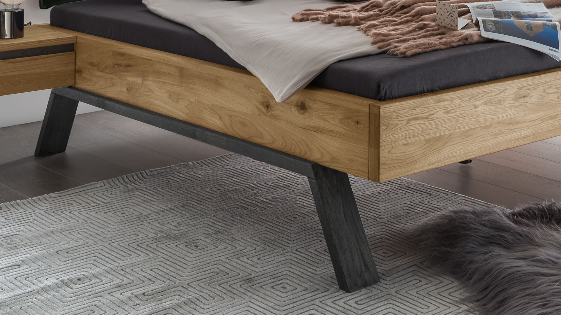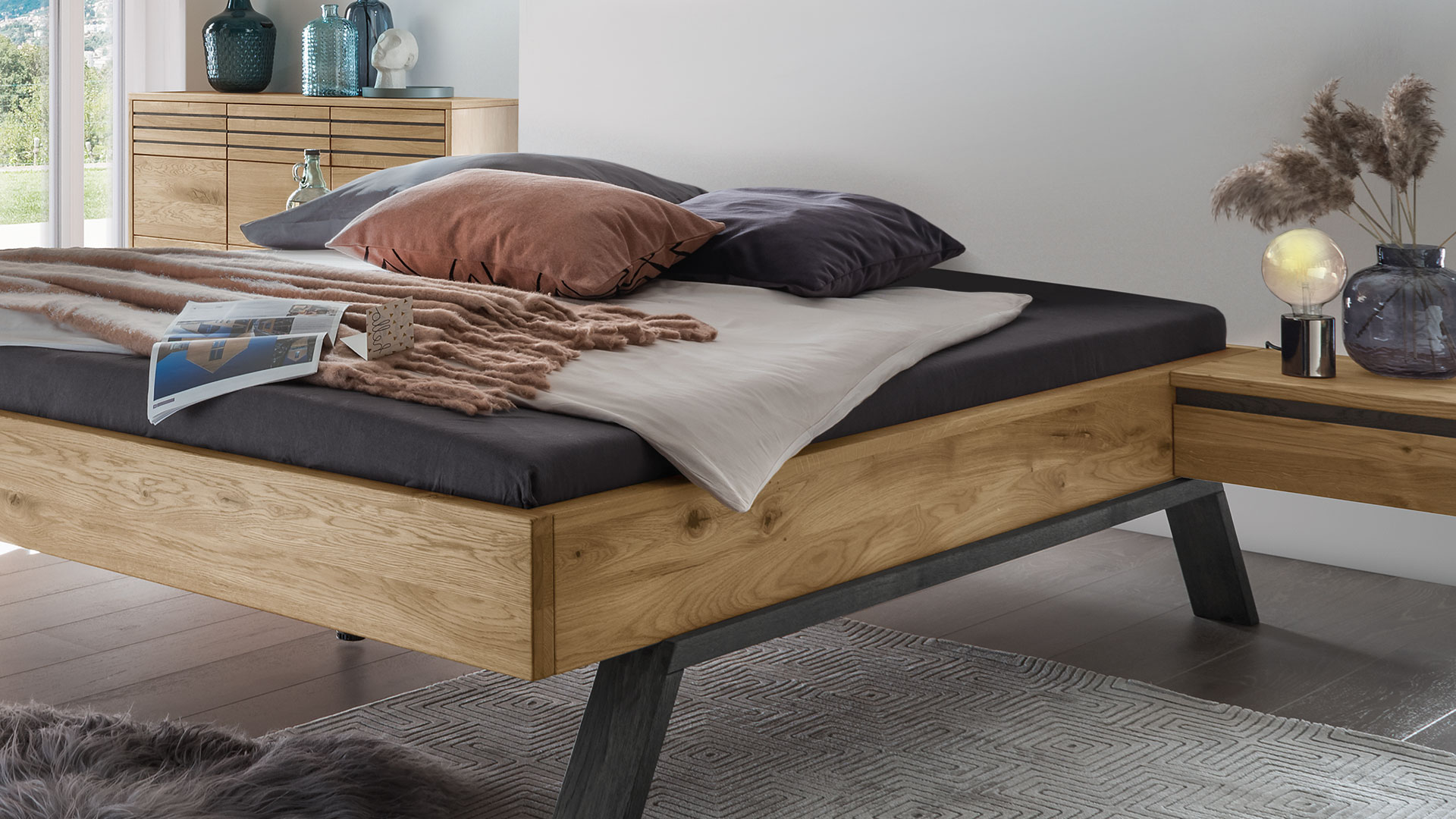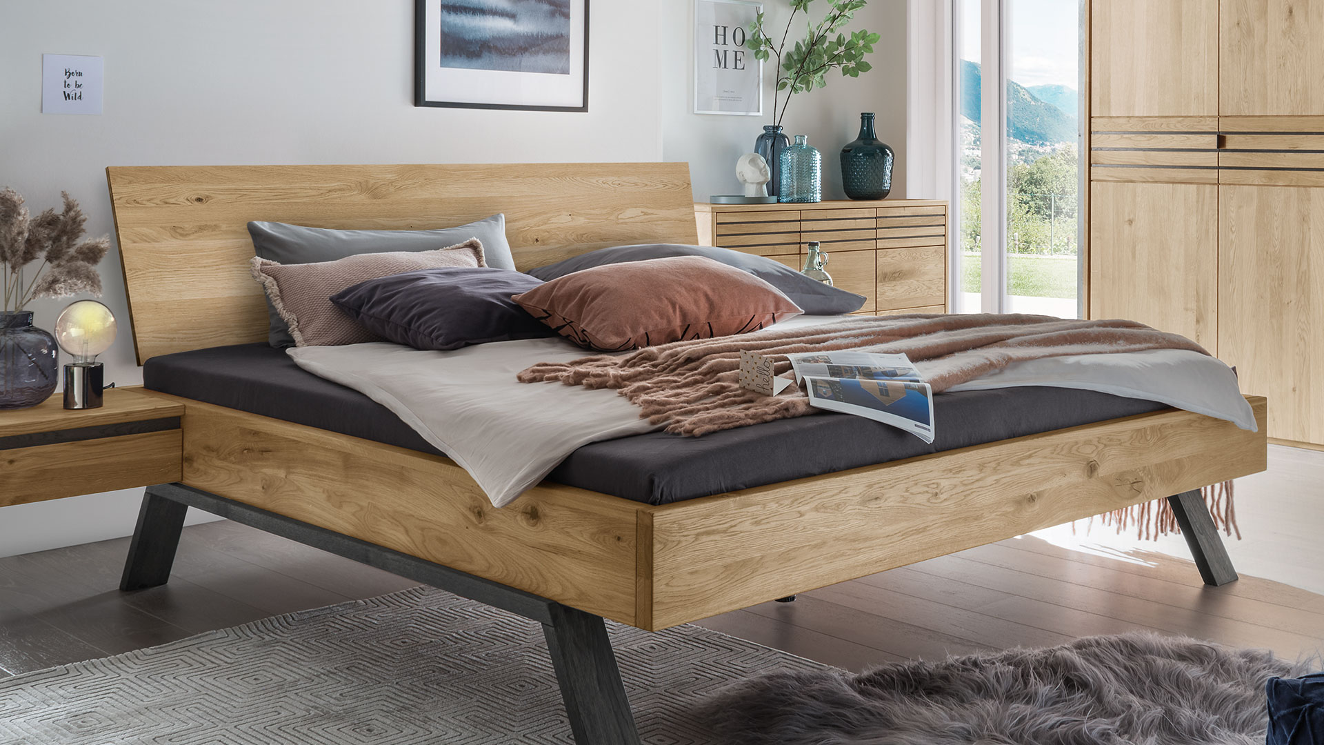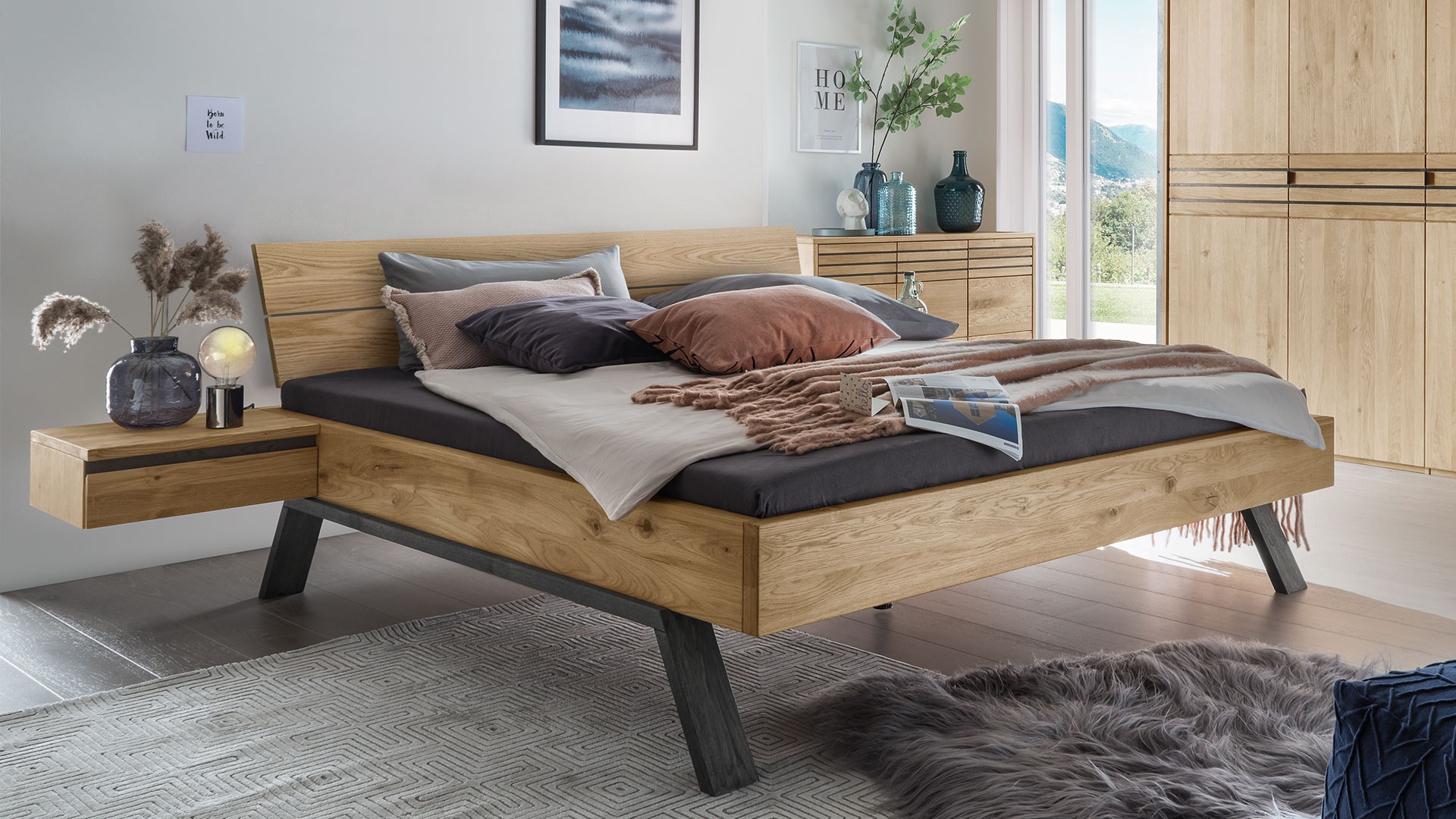 Wählen Sie die trendige Liege oder aus vier Kopfteilen Ihren Favoriten. Bringen Sie mit den Holzkopfteilen die einzigartige Maserung der edlen Wildeiche voll zur Geltung. Oder lehnen Sie sich entspannt an Ihr luxuriöses Stoffkopfteil und genießen Sie Ihren Morgenkaffee im Bett.