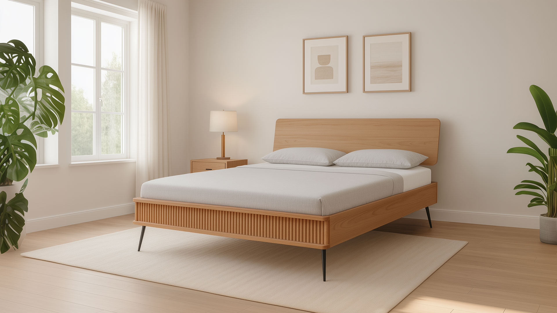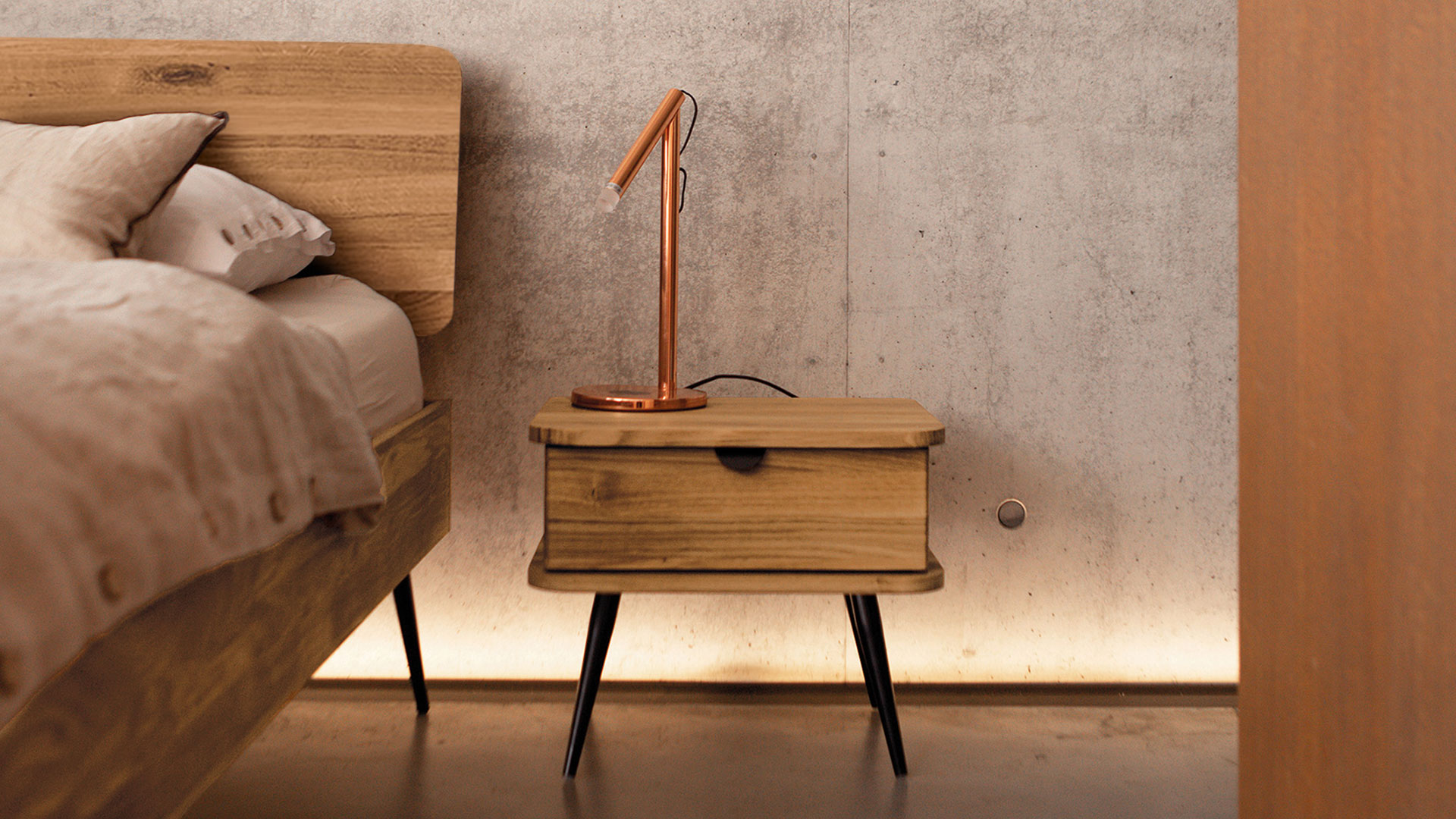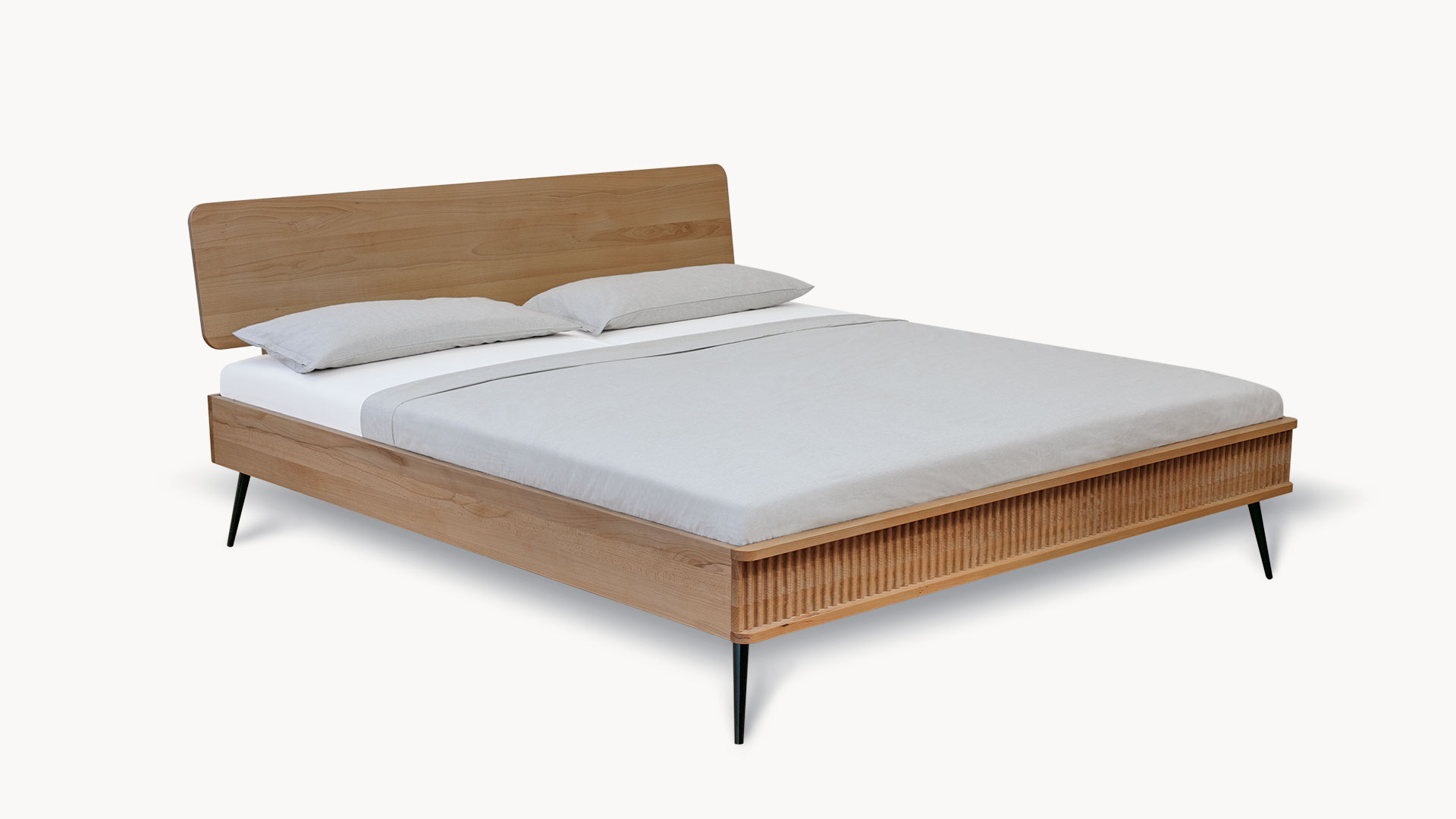 Das Massivholzbett "Ondas" lädt Sie mit seinen runden Formen und dem einzigartigen Wellen-Relief am Fußende zu stilvollen und erholsamen Stunden ein.