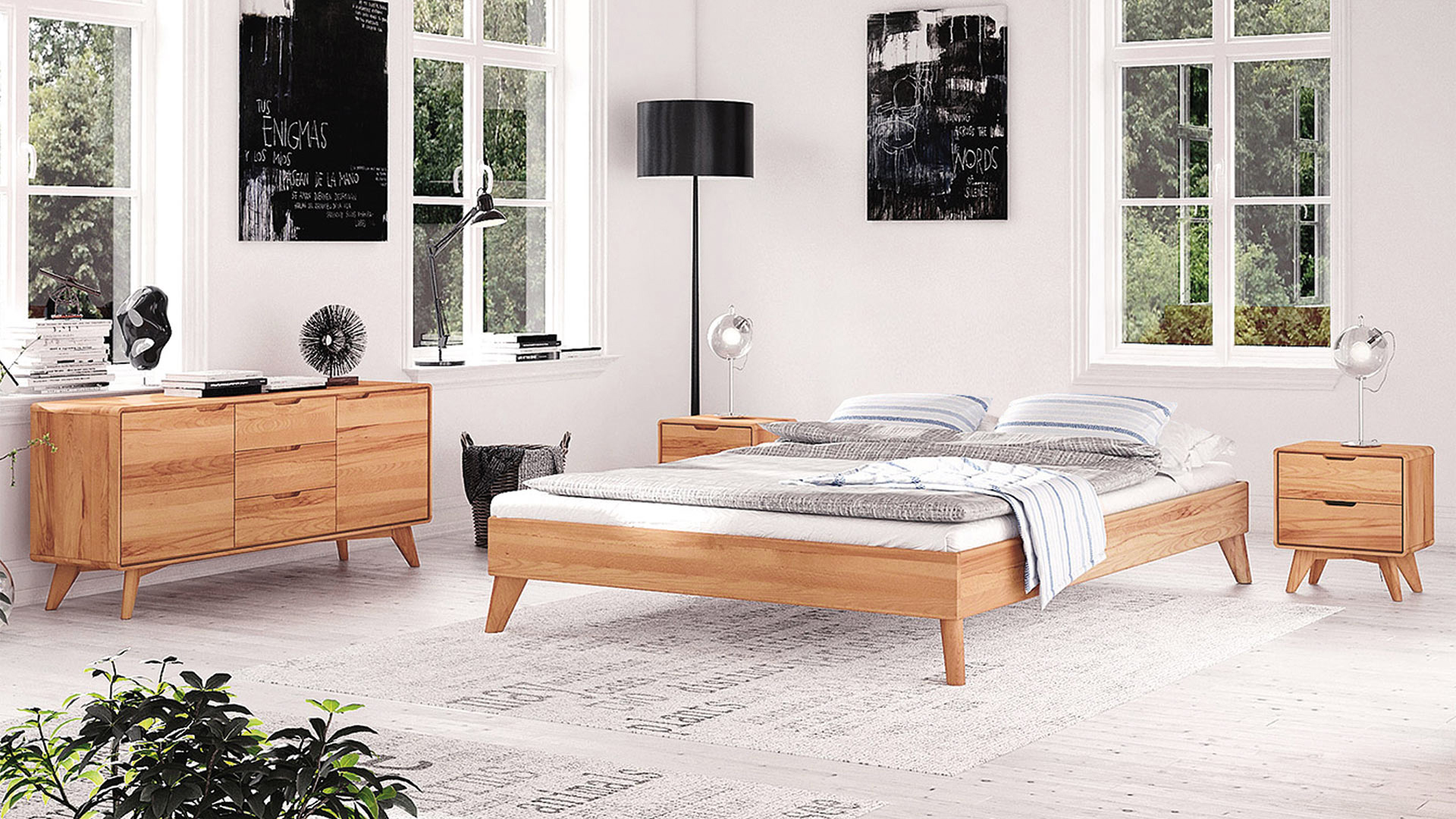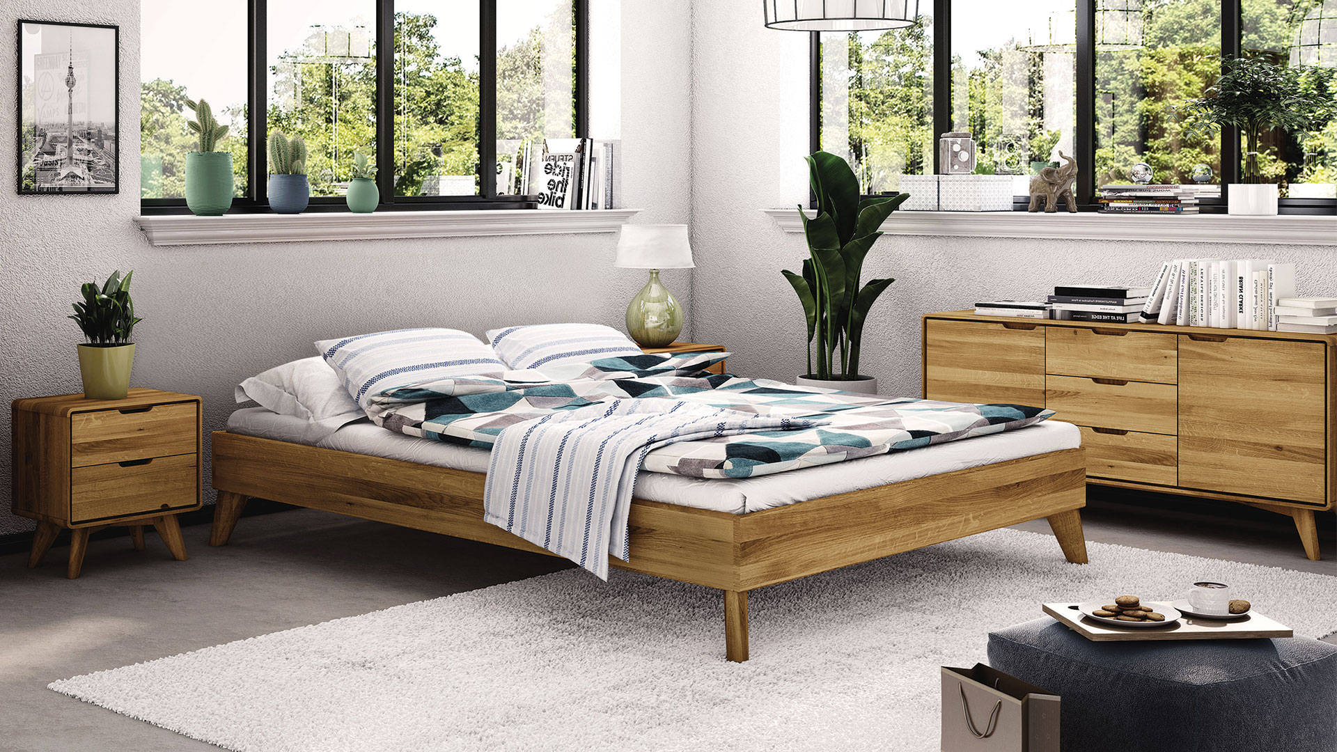 - optisch leichtes Massivholzbett in skandinavischem Design