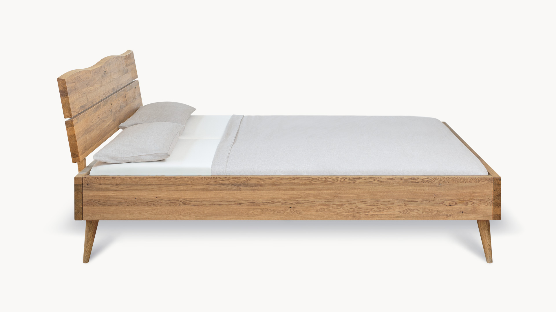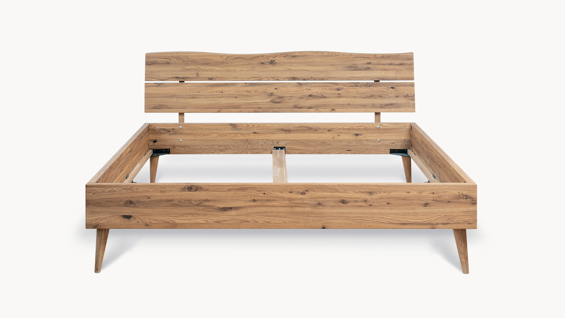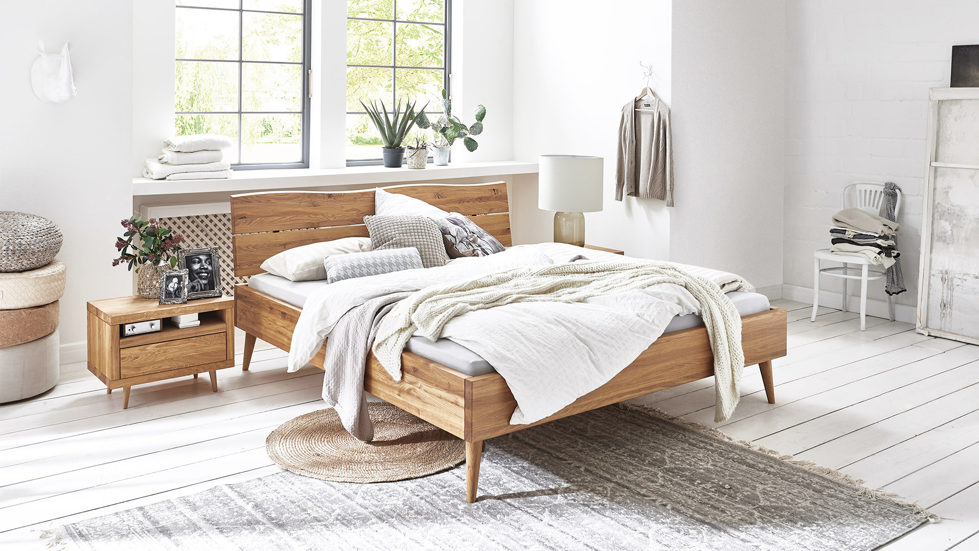 Das 2-geteilte Kopfteil ist mit einem attraktiven Baumkanten-Abschluss versehen und mit 2 schmalen Holzlamellen an den Bettrahmen angebracht. Genießen Sie das harmonische Gesamtbild in Ihrem Schlafzimmer, bevor Sie dieses Bett in einen erholsamen Schlaf begleitet. "Valldo" erhalten Sie zusätzlich auch mit Überlänge 220 cm und exklusiv nur bei allnatura.