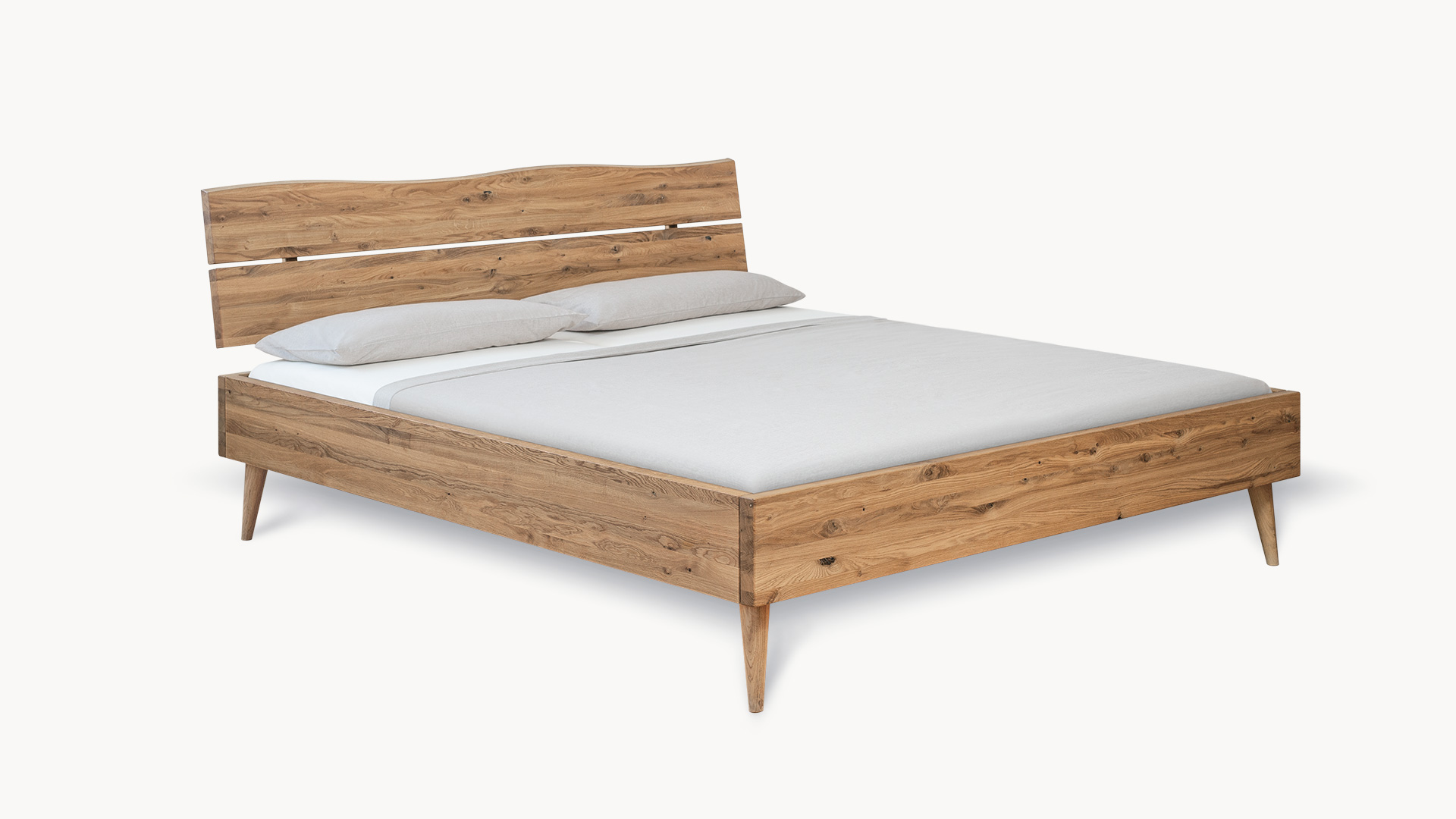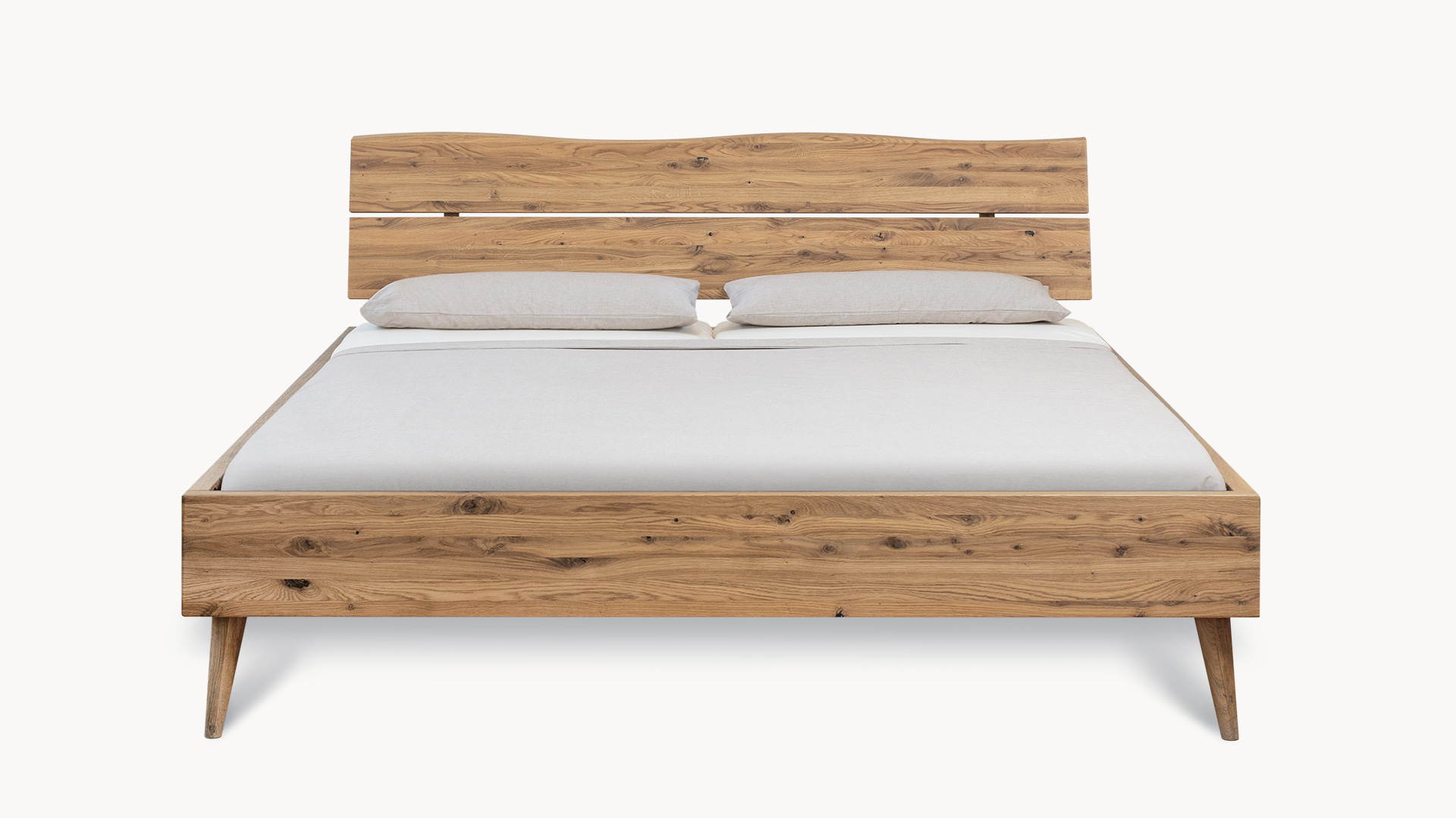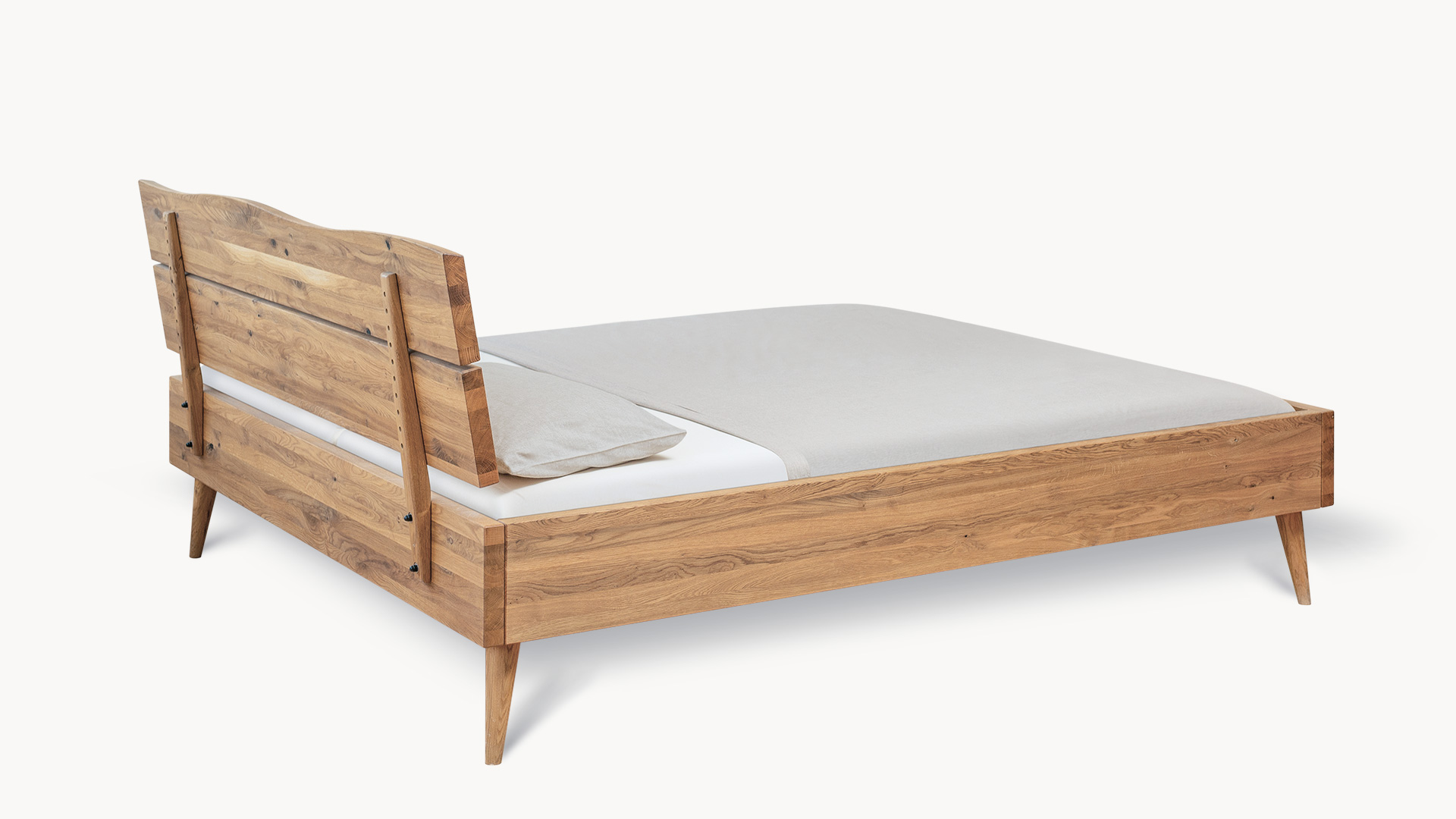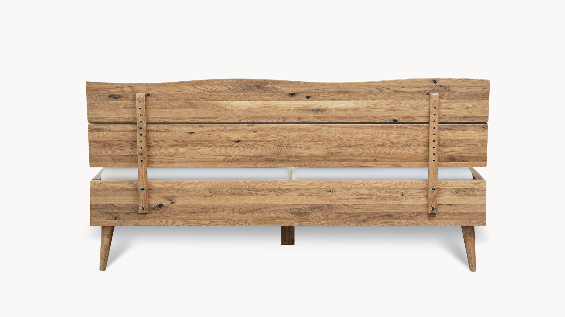 Das 2-geteilte Kopfteil ist mit einem attraktiven Baumkanten-Abschluss versehen und mit 2 schmalen Holzlamellen an den Bettrahmen angebracht. Genießen Sie das harmonische Gesamtbild in Ihrem Schlafzimmer, bevor Sie dieses Bett in einen erholsamen Schlaf begleitet. "Valldo" erhalten Sie zusätzlich auch mit Überlänge 220 cm und exklusiv nur bei allnatura.