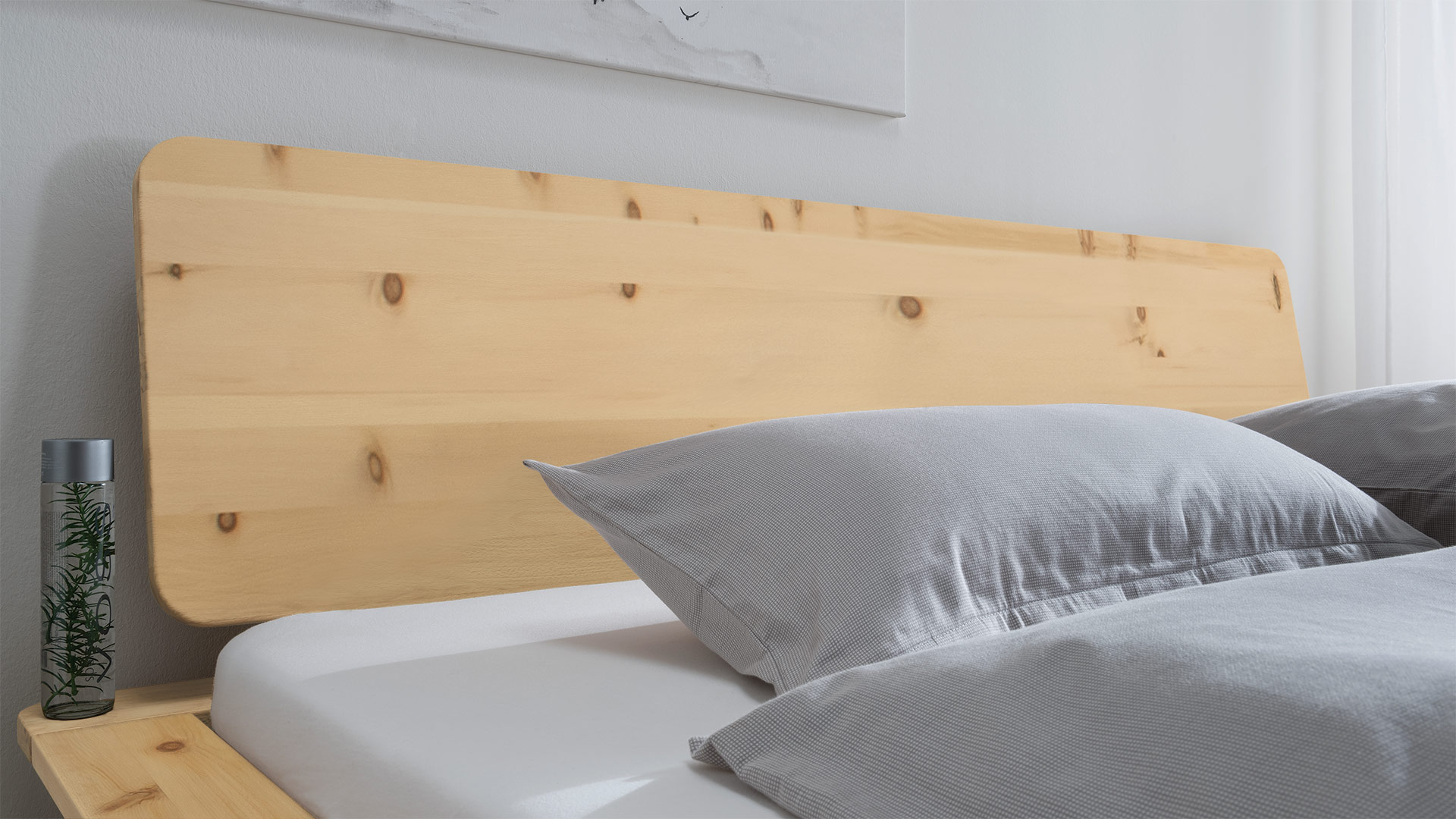 Sie erhalten dieses attraktive Massivholzbett in vier erlesenen Holzarten mit einer natürlichen Öl-Wachs-Kombination, Buche wahlweise auch unbehandelt und Zirbe immer ohne Oberflächenbehandlung. Das geradlinige Kopfteil und der eher niedere Bettrahmen unterstreichen raffiniert das bewusst minimalistische Design. Sie bevorzugen eine Liege oder das Kopfteil passt nicht unter Ihre Dachschräge? Dann entscheiden Sie sich einfach für "Zanira" ohne Kopfteil. Dieser attraktive Traum aus Massivholz ist exklusiv nur bei allnatura erhältlich!