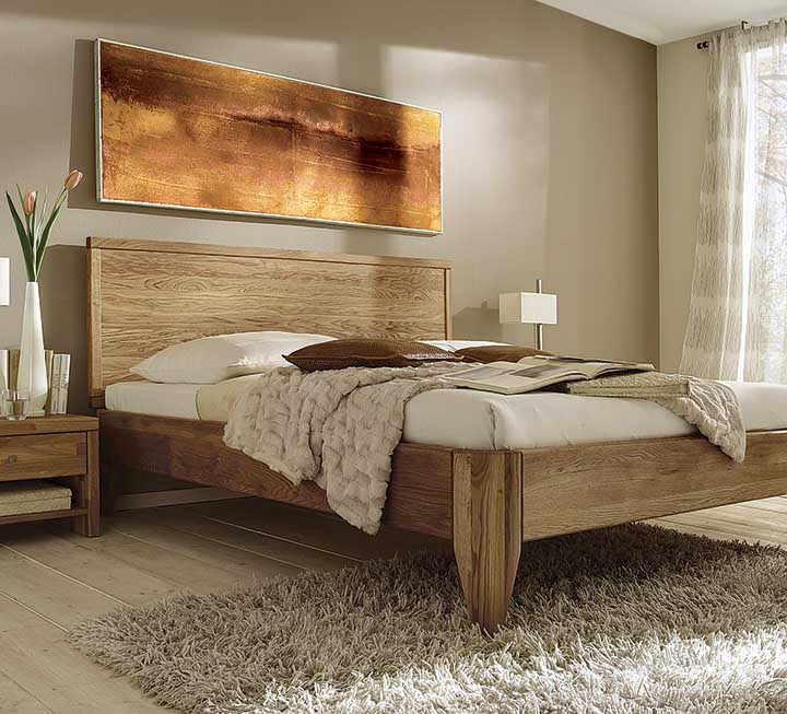 Unsere massiven Betten Eiche erhalten Sie in einer Vielzahl von verschiedenen Designs - ob klassisch oder modern. Wenn Ihnen eine ausdrucksvolle Maserung sehr am Herzen liegt, haben wir auch Eichenbetten in Wildeichenholz, die dieses Merkmal mit sich bringen. Auch sehr lebhaft gemasert beeindrucken unsere Betten in Kernbuche massiv.