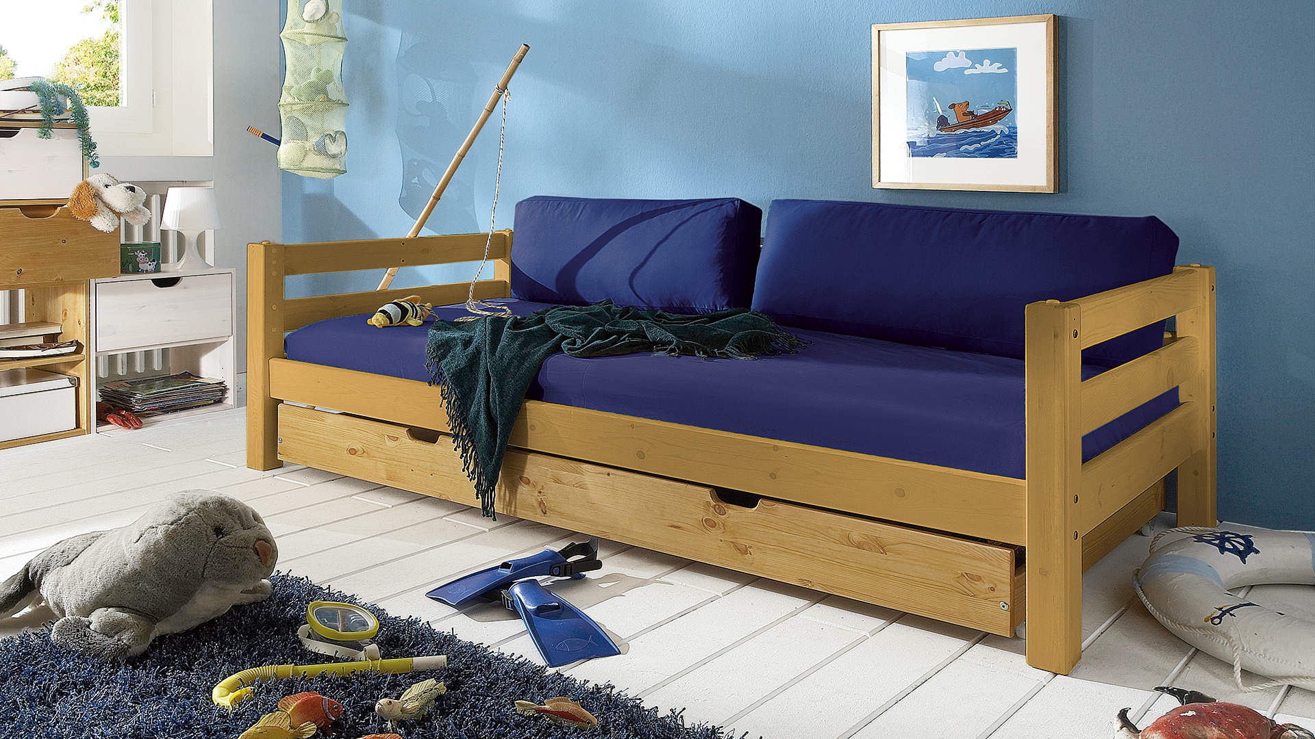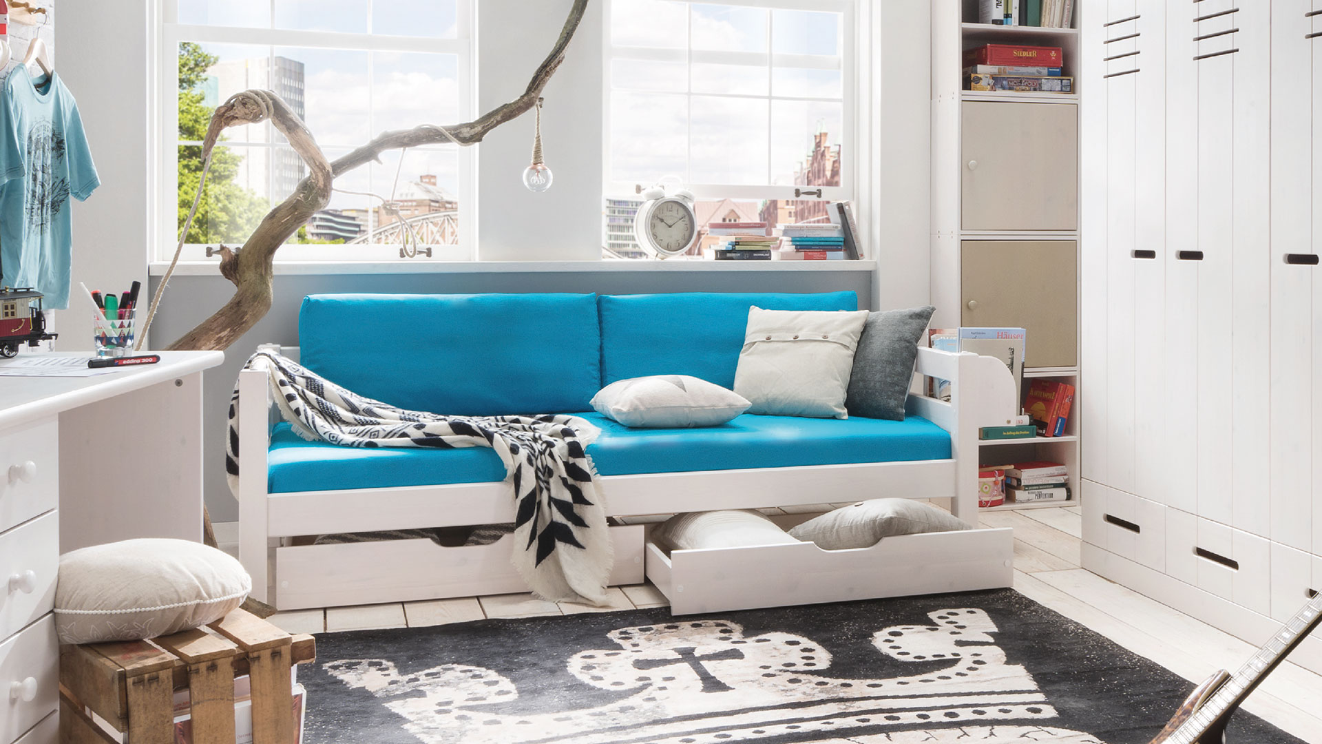 Mit diesem Matratzenbezug machen Sie die Sofa-Optik Ihres Jugendbettes perfekt. Welche Farben gibt es?