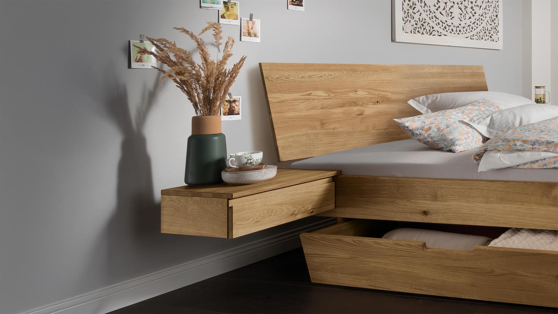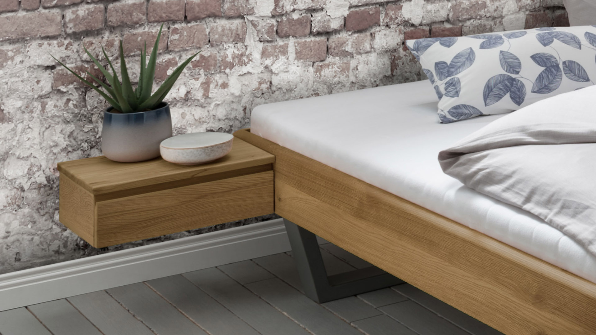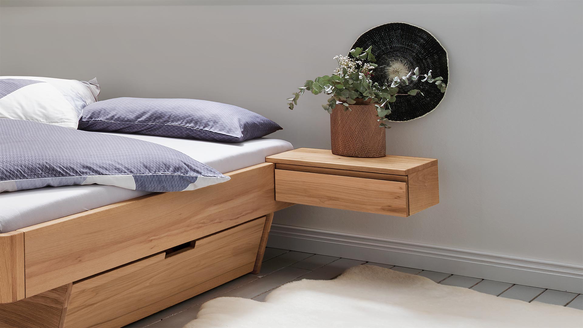 Schlicht, elegant und äußerst praktisch - Nachtkonsole "Moderna", hier in lebhafter Kernbuche