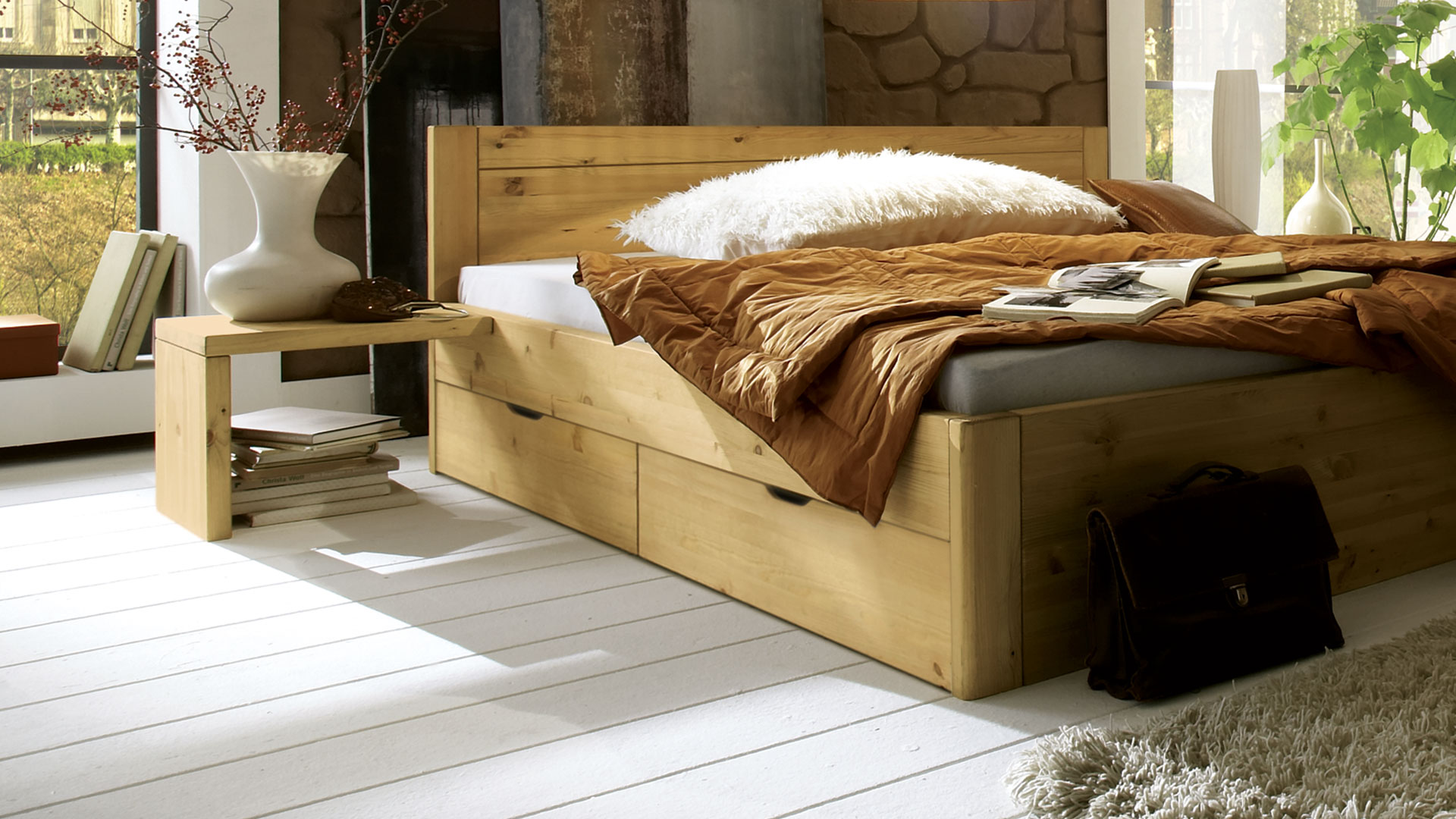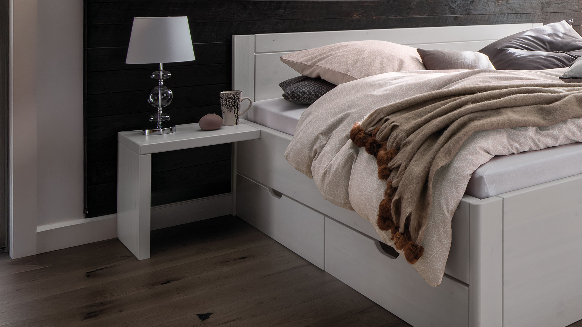 Für Schubkastenbett "Mascella" zeitlosen Designs erhalten Sie Nachttische im praktischen 2er-Set, die ebenfalls auf jegliche Schnörkel verzichten.