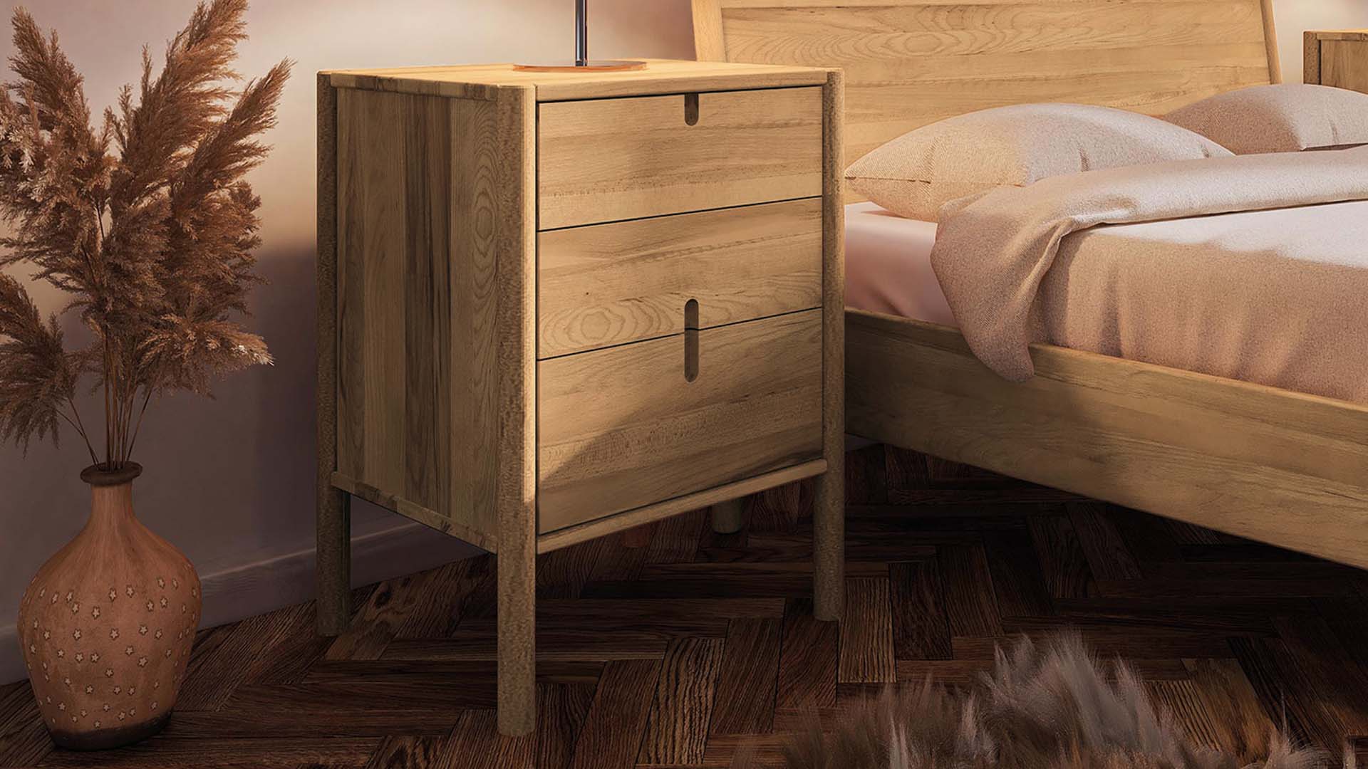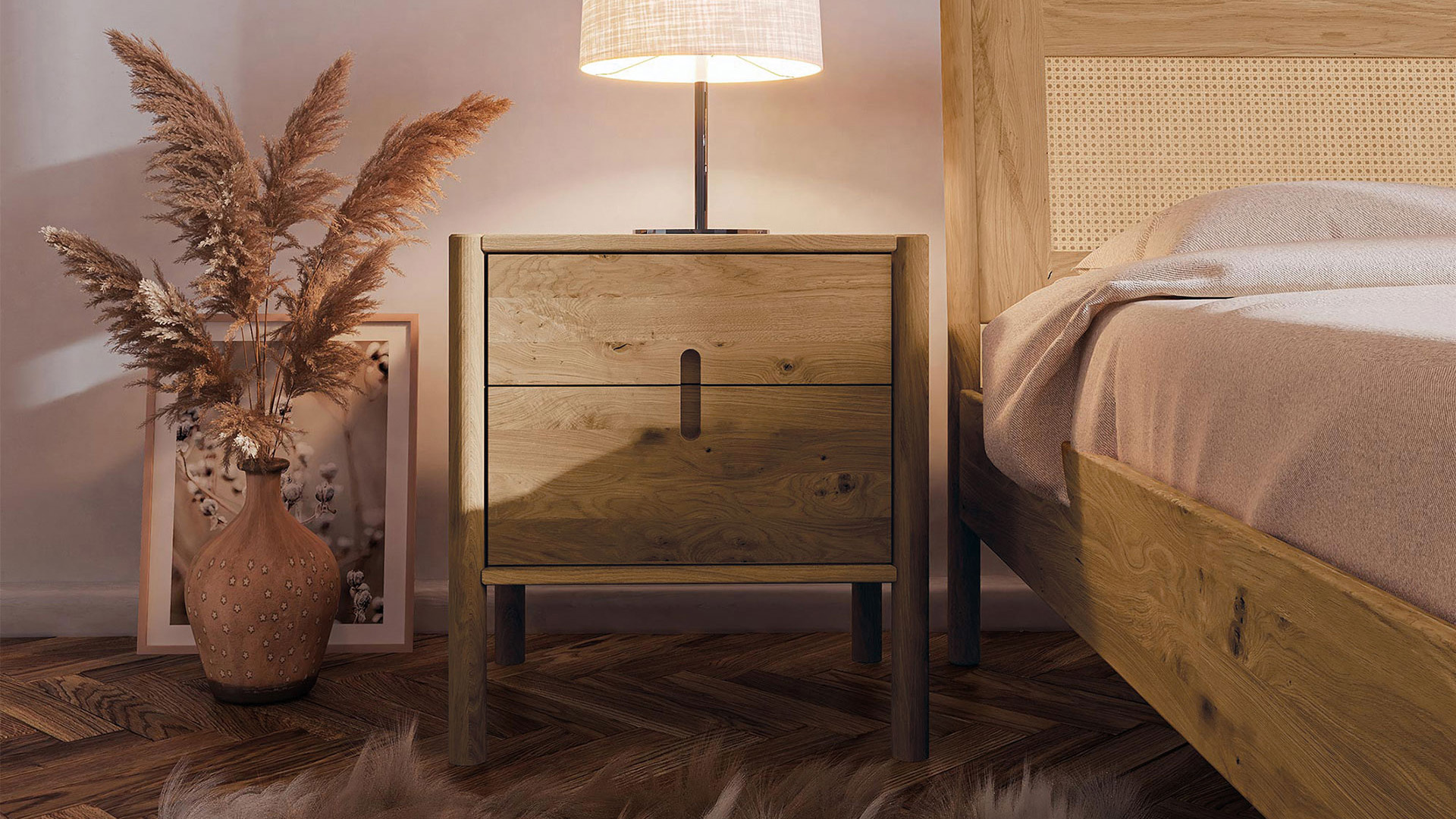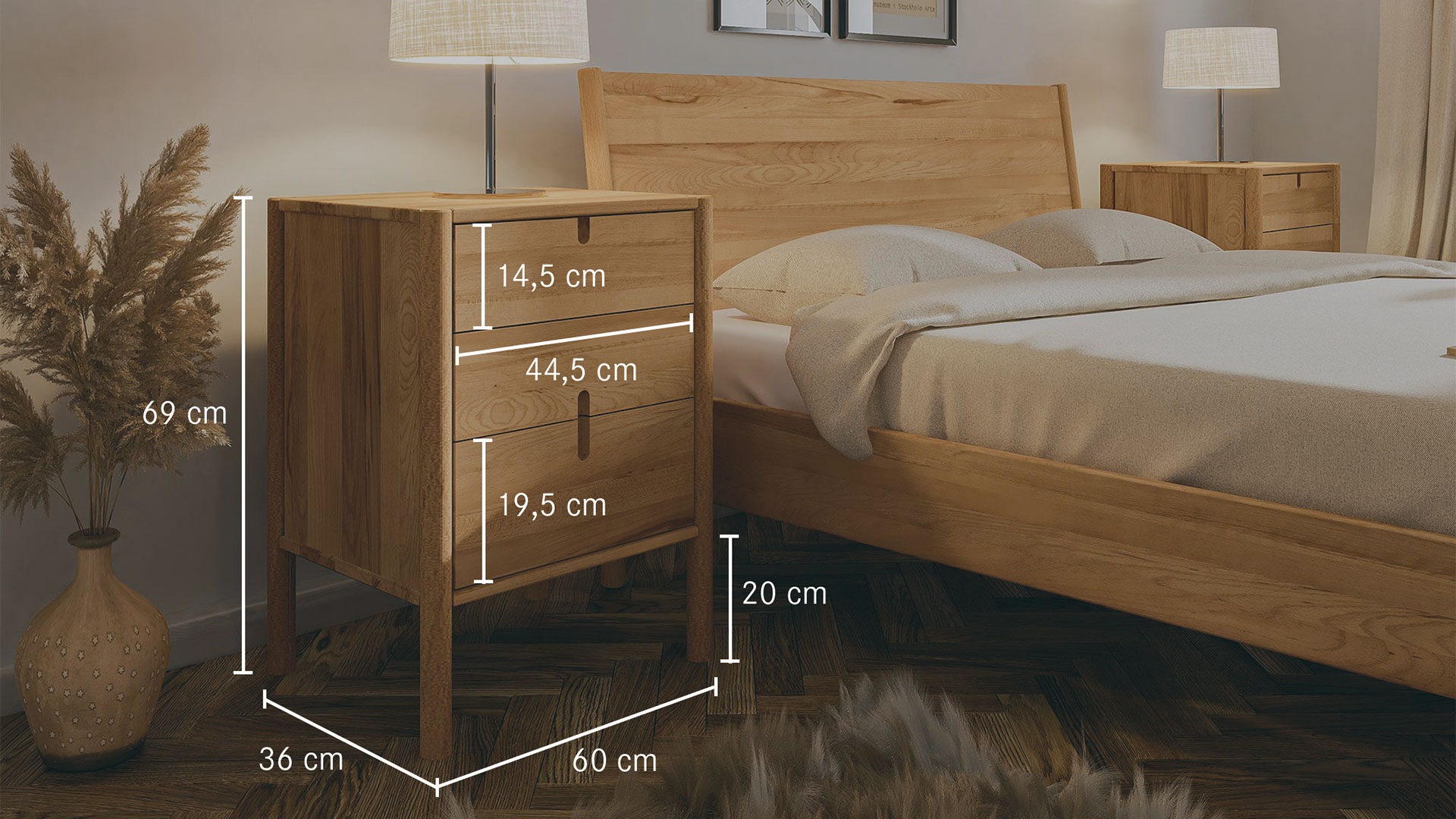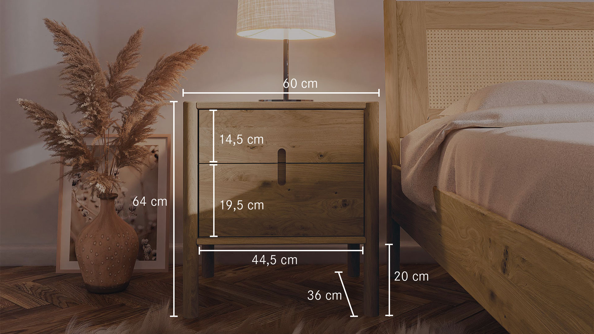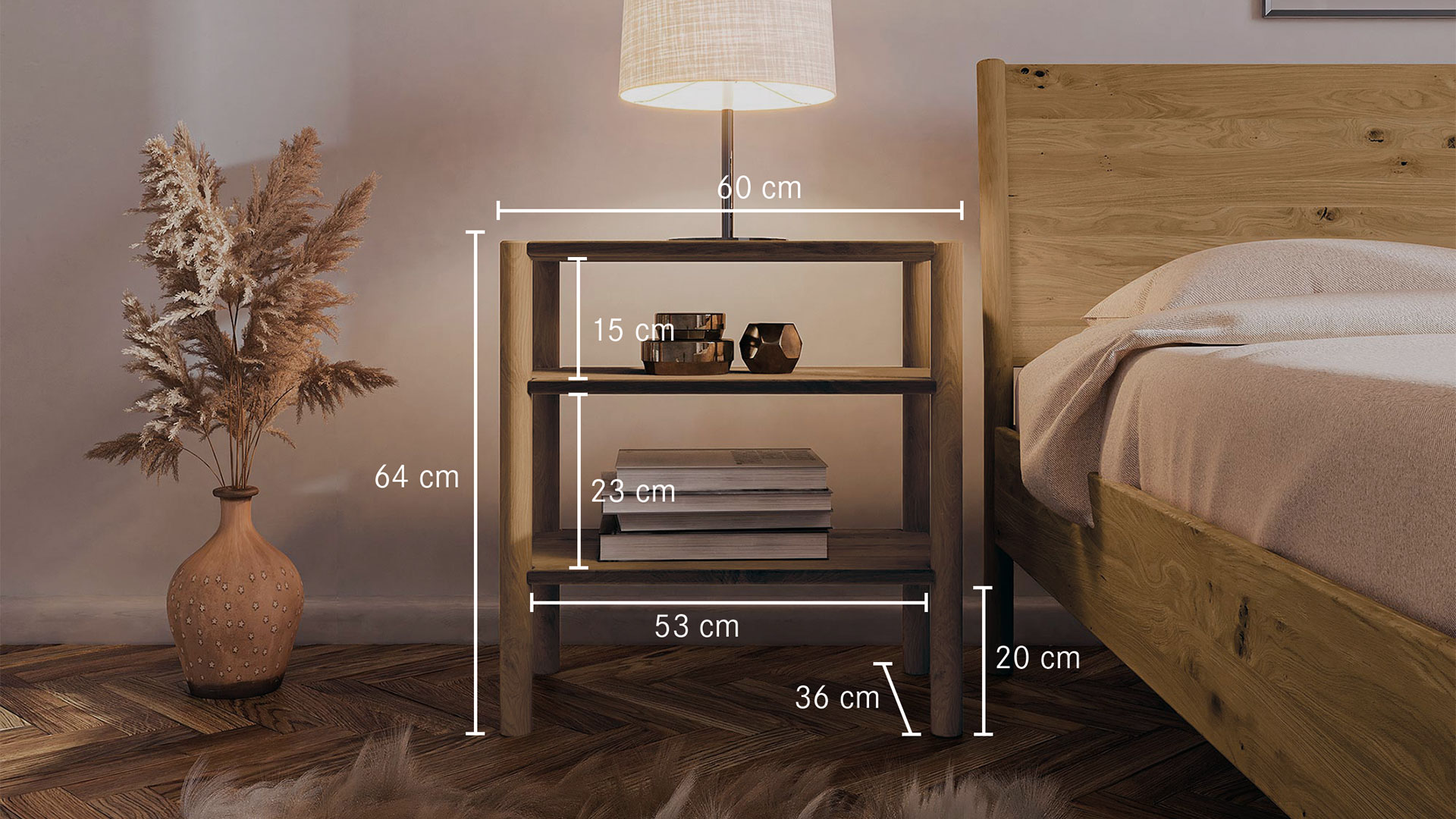 Nachttisch "Rota" gibt es als praktisches Regal oder als Schubladennachttisch in 2 Höhen - jeweils aus massiver Kernbuche oder Wildeiche gefertigt. Ganz wie es Ihnen am liebsten ist. Eines haben aber alle Varianten gemeinsam: Mit ihren schlanken Säulenfüßen wirken sie modern und leicht.