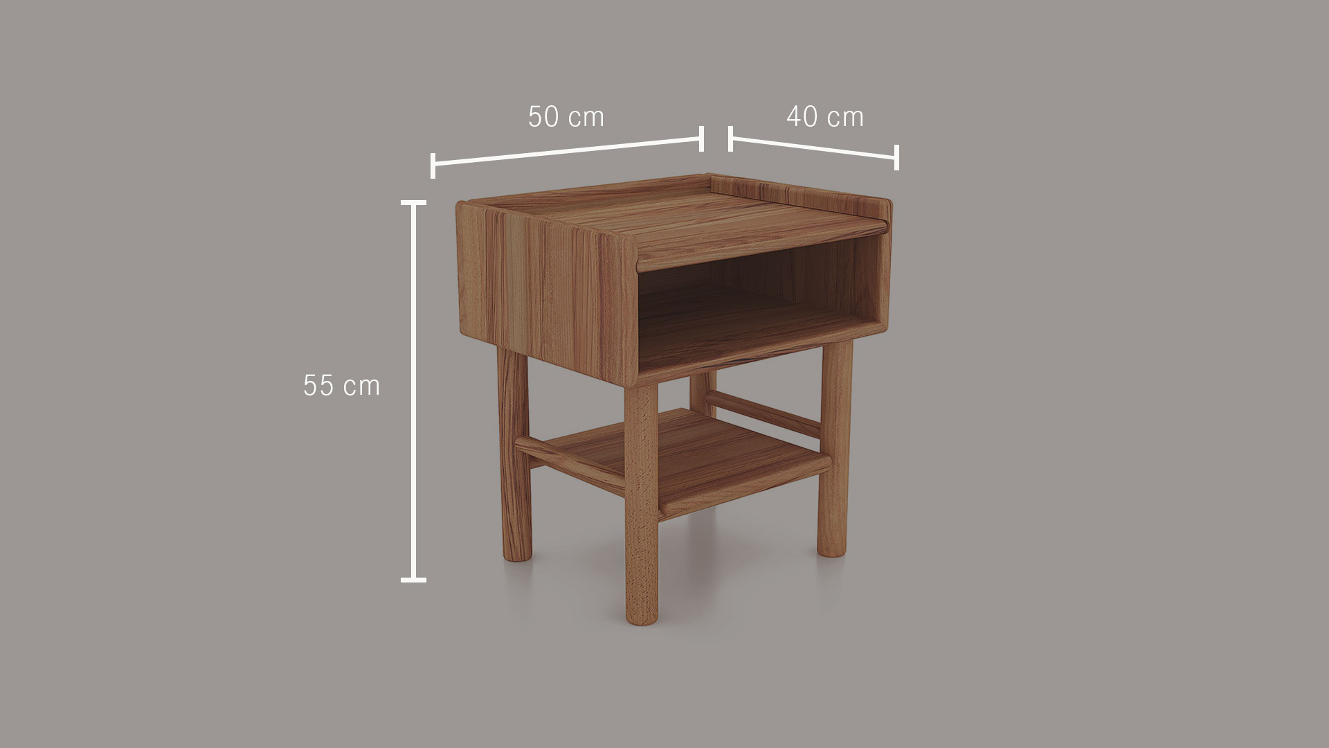 Serea" verleiht Ihrem Schlafzimmer den unverwechselbaren Charme des Mid-Century-Designs. Sanfte Linien, warme Holzoberflächen und ein goldfarbener Griff schaffen eine Atmosphäre, die Eleganz und Geborgenheit verbindet. Ob mit Schublade für persönliche Schätze oder mit offener Ablage – beide Varianten bieten mit dem zusätzlichen Zwischenboden Platz für alles, was Sie in Reichweite wissen möchten. Das Besondere an Variante 01: Die Ablage lässt sich komplett herausziehen. Einfach ideal als Tablett fürs kleine Frühstück im Bett oder als praktische Unterlage für Ihr Laptop.