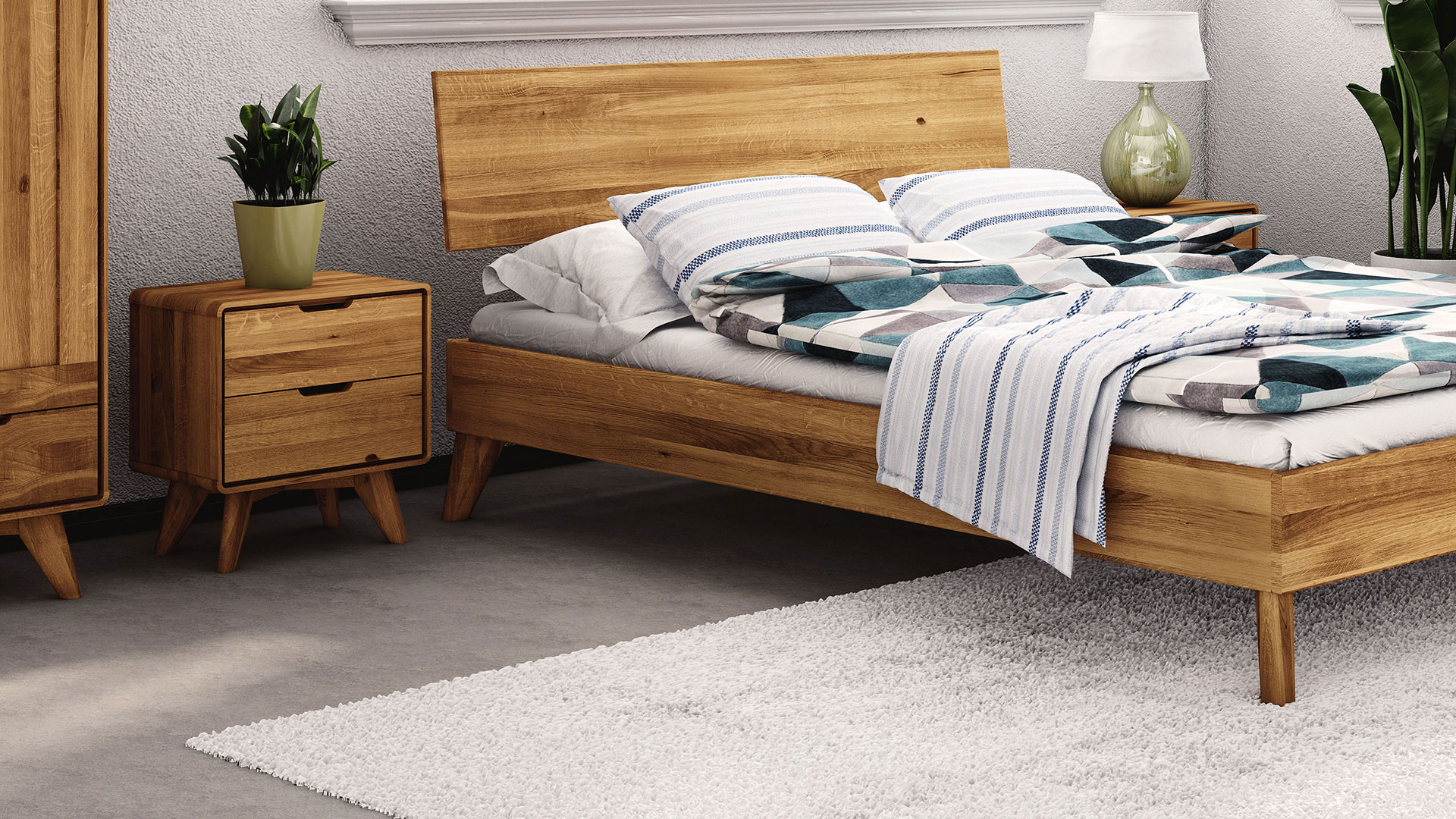 ... hat konisch zulaufende Füße, die für eine leichte Optik sorgen und perfekt mit dem Massivholzbett "Tario" harmonieren. Auf 2 Schubladen verteilt haben Sie genug Stauraum für alles, was Sie am Bett brauchen. Auf dem dünnen Holzrahmen, der die eckigen Schubladen fein umspielt, hat natürlich auch Ihr Lieblingsbuch oder eine Zeitschrift genug Platz. Ein optischer Blickfang ist nicht nur das skandinavische Design, sondern auch die edel gefrästen Einkerbungen, die als praktische Griffe dienen.