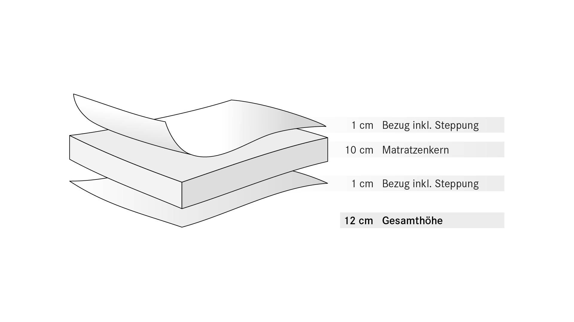 Um sich vorab über die Matratzen-Höhe informieren zu können, haben wir unter "Technische Infos" sowohl die Höhe des Matratzenkerns, als auch die Gesamthöhe inklusive Bezug angegeben. In Ihrem Fall beträgt die Höhe inklusive Bezug 12 cm.Naturlatex-Jugendmatratze "Sana-Classic"