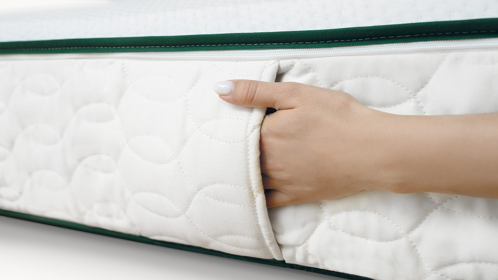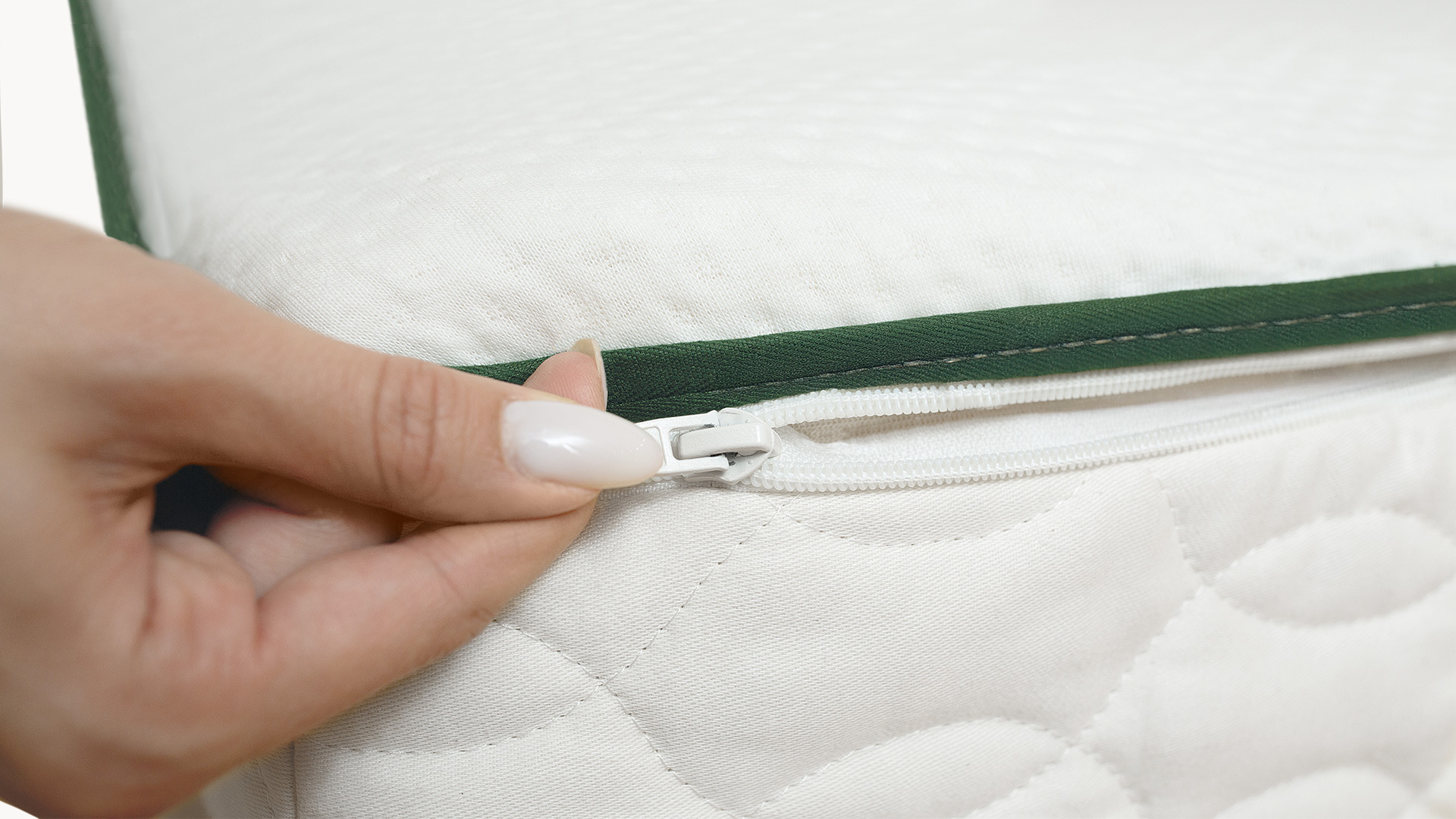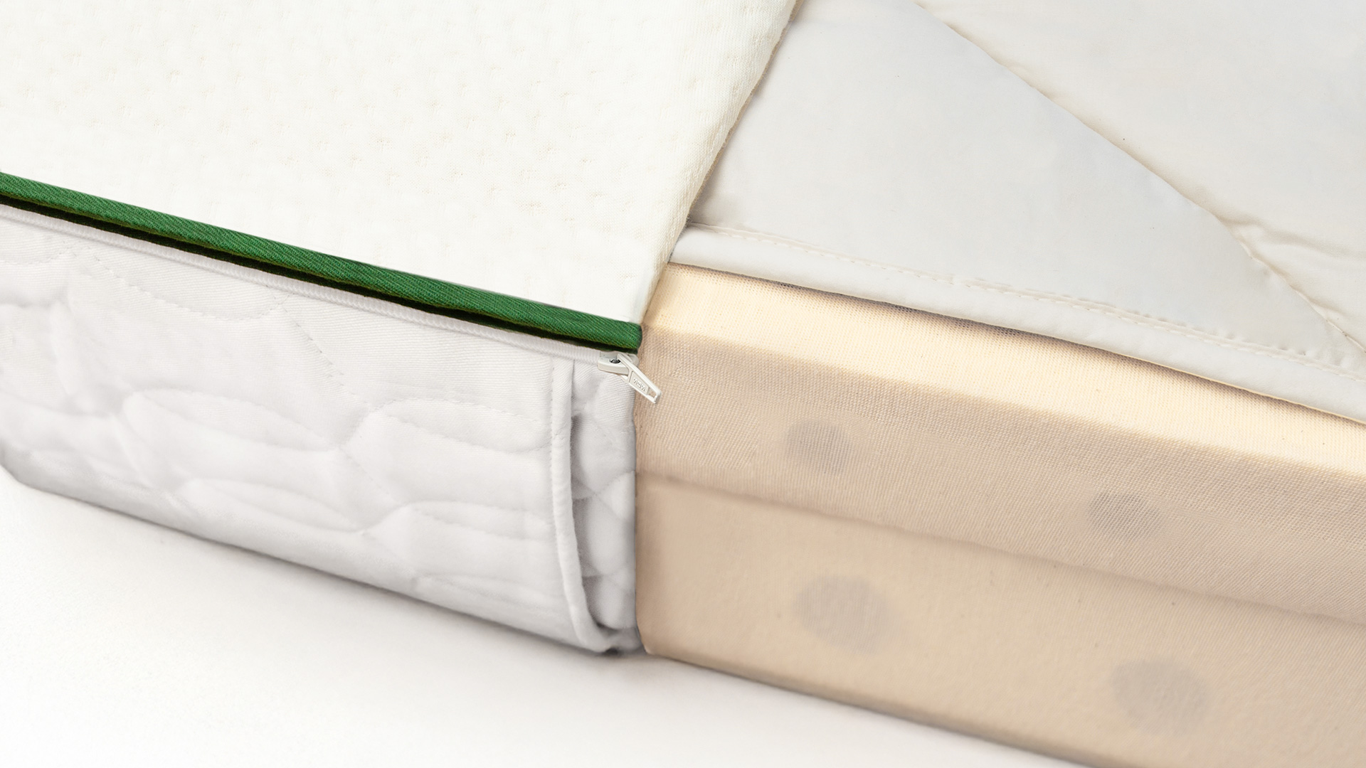 Dieser Premium-Bezug mit 4-seitigem Doppel-Reißverschluss hat eine diagonalelastische, unversteppte Liegefläche aus Hanf und Baumwolle, die besonders leicht zu pflegen ist.