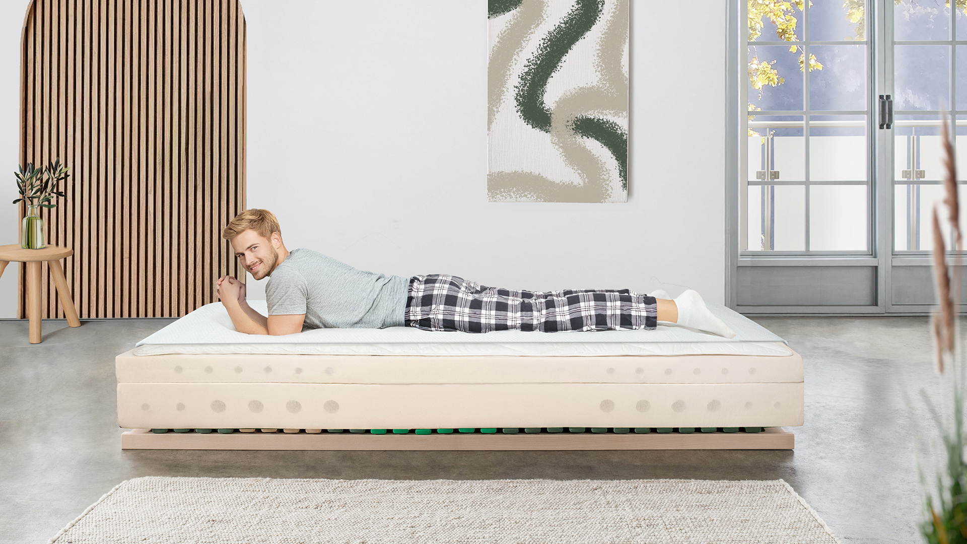 Im Kern steckt punktelastischer Naturlatex aus 100 % Naturkautschuk, gewonnen aus nachhaltigem Moreganic-Waldanbau. Das 7-Zonen-Körperstützsystem passt sich Ihren Konturen harmonisch an und richtet die Wirbelsäule gesund aus. Ergänzt wird der Aufbau durch den exklusiven Border- und Keder-Bezug: eine unversteppte Liegefläche aus diagonalelastischem Hanf-/Biobaumwoll-Doppeltuch, die flexibel nachgibt und angenehm zur Haut ist. Mit "Sana-Nuvola" erleben Sie natürlichen Luxus, tiefe Erholung und neue Energie – Nacht für Nacht.