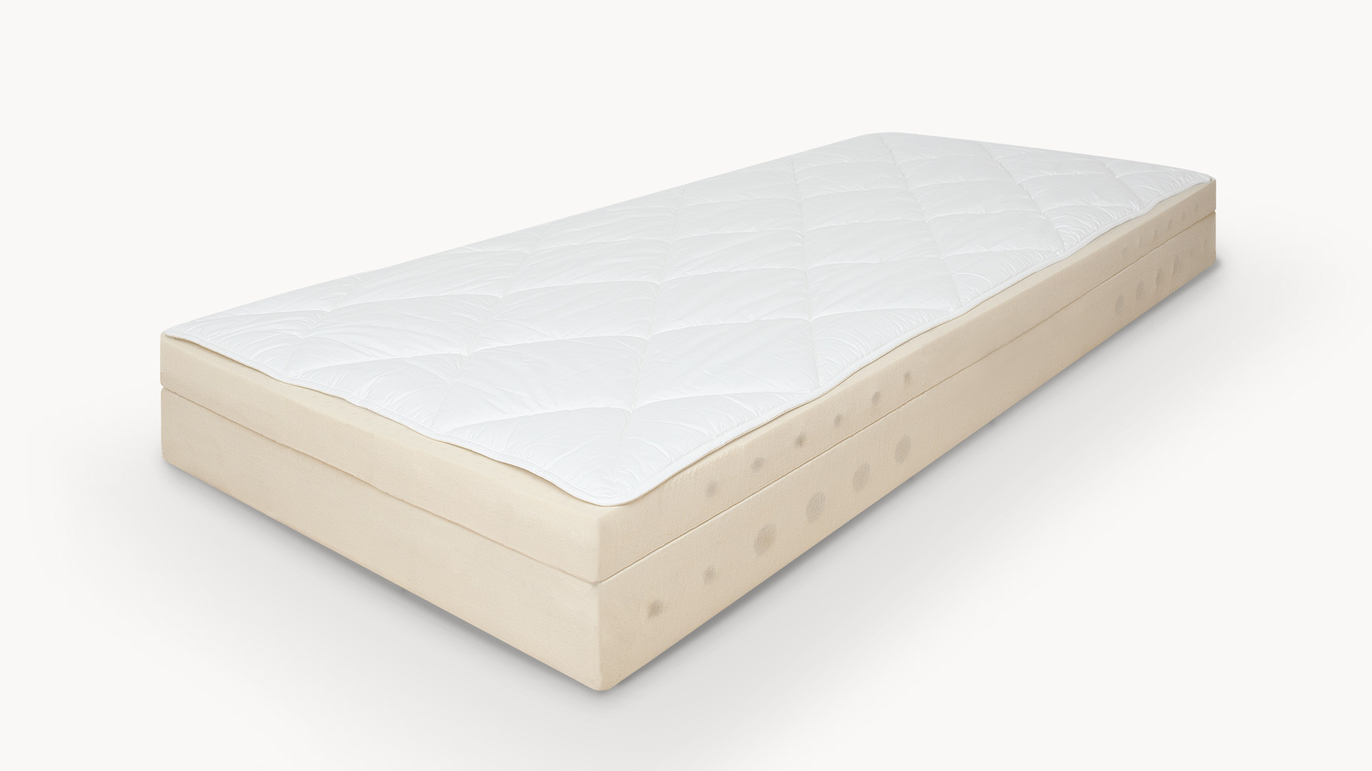 Komfort- und Basis-Schicht aus 100 % Naturkautschuk. Atmungsaktiv - viele Stift-Kanäle sorgen bei jeder Körper-Bewegung für Belüftung.