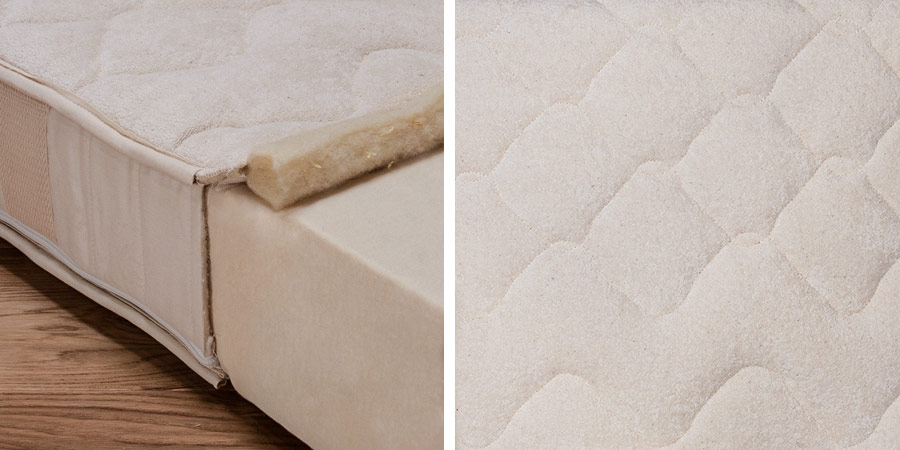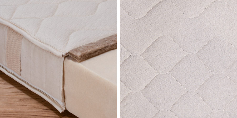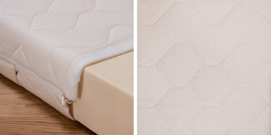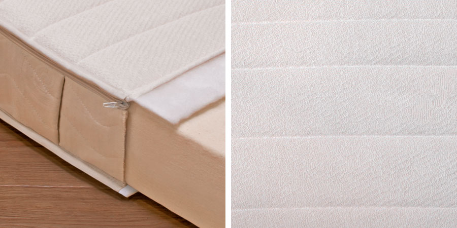 Komfort-Schicht und Basis-Schicht sind zusätzlich separat mit einem Bezug aus Baumwoll-Feinjersey-Trikot/kbA geschützt.