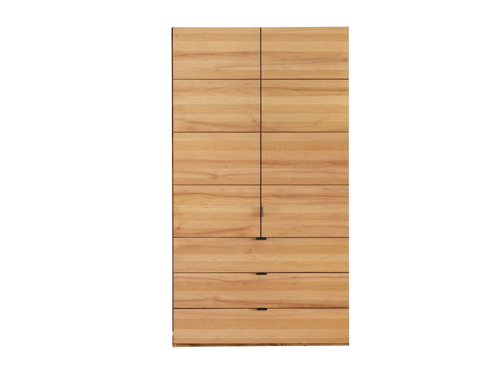 Bei Drehtüren-Kleiderschrank "Gaveta" können Sie zwischen Kernbuchen- oder Wildeichenholz wählen. Zudem ist dieses Schmuckstück vom 2- bis zum 6-Türer, jeweils im 50er oder 60er Raster erhältlich. Egal für welche Breite und für wie viele Türen Sie sich entscheiden - es sind immer 3 breite, aufeinander-liegende Schubladen integriert. Diese können immer in ein Doppelmodul eingebaut werden, egal ob links, rechts oder mittig. Zusätzlich können Sie Ihren Kleiderschrank mit vielseitigem Zubehör oder einem passenden Passepartout-Rahmen ergänzen.