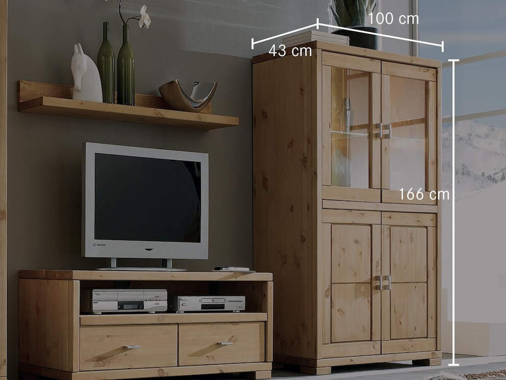 Links Highboard Mascella Variante 03, rechts Variante 01 in massiver Kiefer