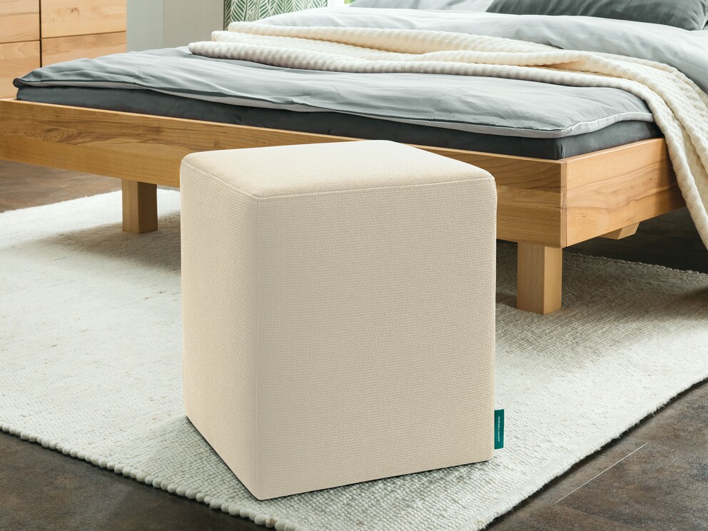 Der Hocker mit quadratischer Sitzfläche ist in zwei unterschiedlichen Höhen erhältlich und exklusiv bei allnatura verfügbar. Das Gestell besteht aus stabilem Buchen-Sperrholz und ist mit einer komfortablen Kaltschaum-Polsterung ausgestattet. Verschiedene Stoffe und Farben bieten zudem die Möglichkeit, gezielt einen farblichen Akzent im Raum zu setzen.