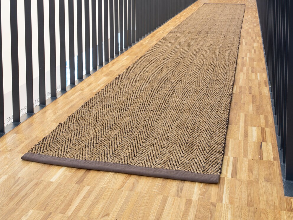 Der Kokosläufer Palmera verbindet eindrucksvoll Räume - hier Farbstellung natur-braun