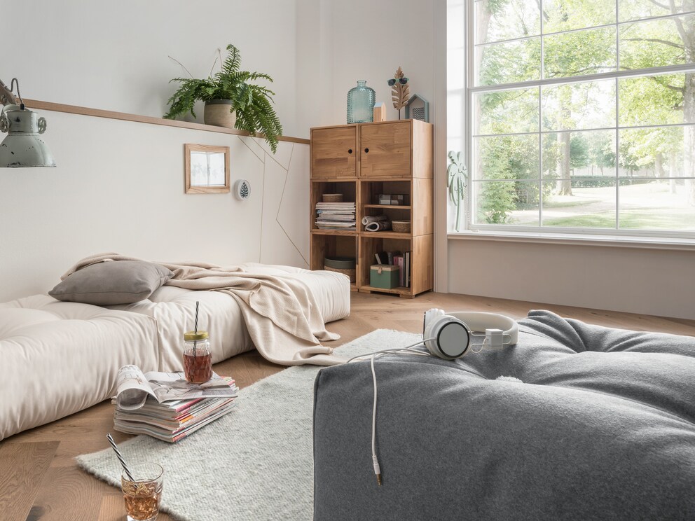 Pouf "Vimo" erhalten Sie in den Sitzhöhen 22 cm oder 38 cm. Besonders die hohen Varianten sind die perfekte Ergänzung für Ihre Couch - ob zum Füße hochlegen oder als zusätzliche Sitzgelegenheit, wenn Gäste kommen. In einer kleinen Wohnung oder im Jugendzimmer kann der pfiffige Pouf das Sofa natürlich auch ersetzen: 2 oder 3 der flexiblen Bodenkissen ergeben eine moderne und mobile Sitzecke. Besonders praktisch: Die quadratischen Sitzkissen lassen sich ruckzuck zum bequemen Gästesofa kombinieren.