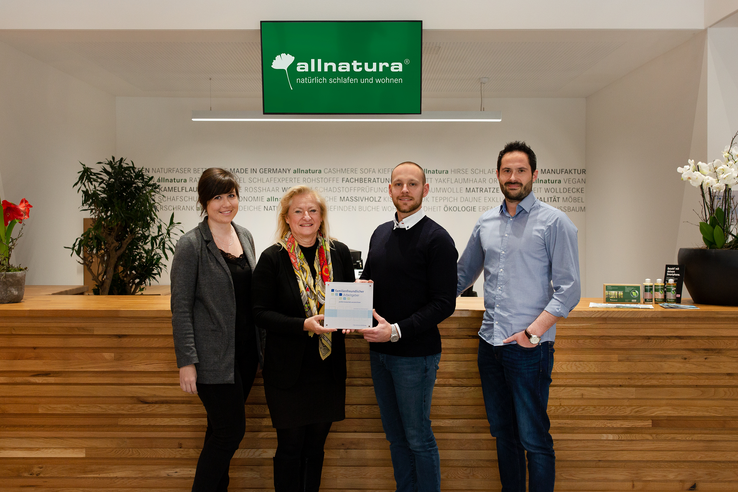 Gekrönt wird dieses hervorragende Jahr mit der erneuten Auszeichnung als „familienfreundlicher Arbeitgeber“ durch die Bertelsmann Stiftung. Denn allnatura stellte sich drei Jahre nach der letzten Prüfung wiederholt die wichtige Frage, welche Bedeutung Familienfreundlichkeit und die Balance von Beruf und Privatleben für die Fachkräftesicherung und -gewinnung hat und wie man sich in diesem Bereich weiterentwickeln kann. Auch das diesjährige Prüfverfahren hat allnatura mit Auszeichnung bestanden, was in Württemberg einmalig ist. allnatura bietet verschiedene Benefits, sodass sich die Mitarbeiter rundum wohlfühlen.