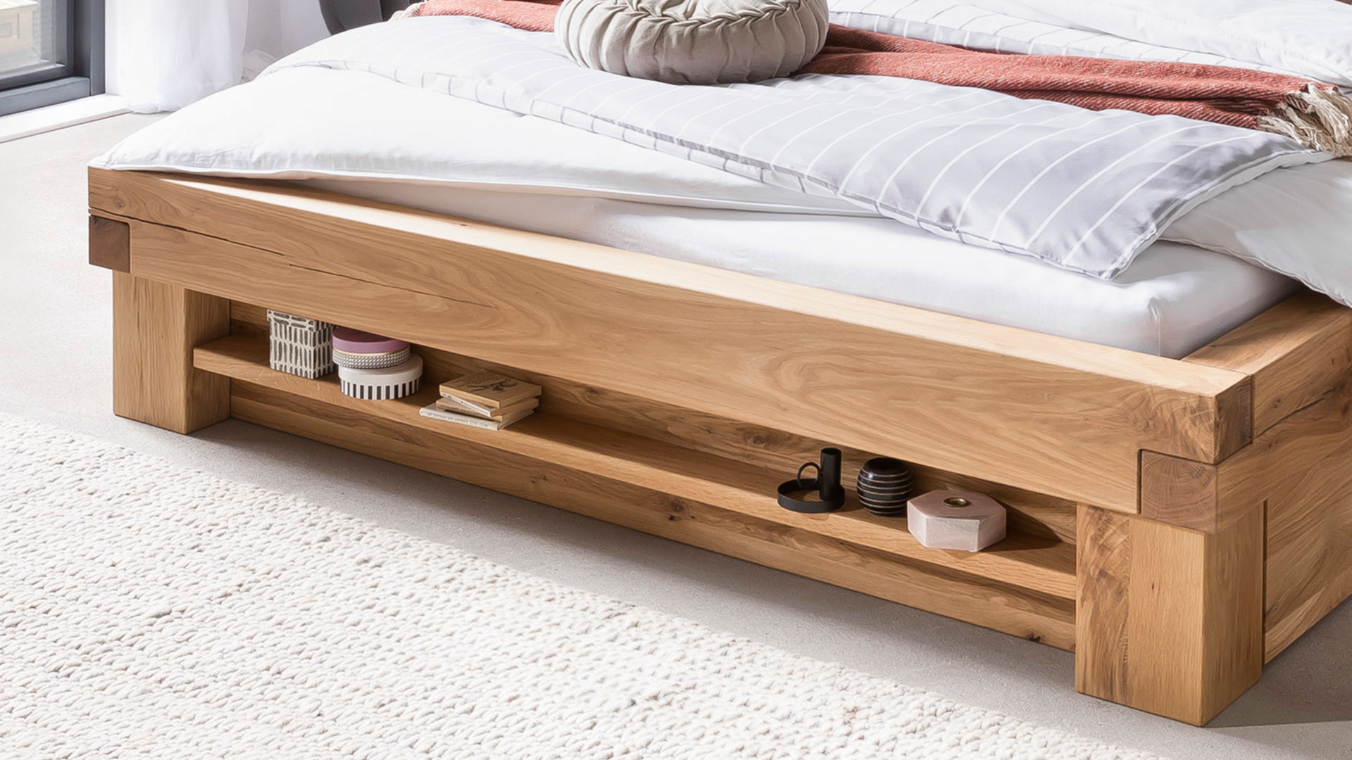 Diese praktische Regal-Fußblende vollendet Ihr Balkenbett "Agona". Sie bildet einen sauberen Abschluss für Ihr Schubkasten-Bett und ist gleichzeitig eine pfiffige zusätzliche Ablage im Schlafzimmer. Wählen Sie Ihre Fußblende passend zur Breite Ihres Balkenbetts "Agona".