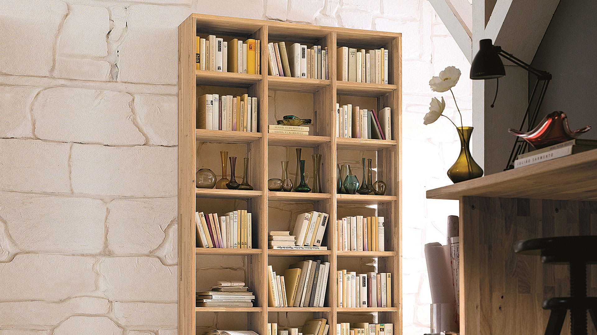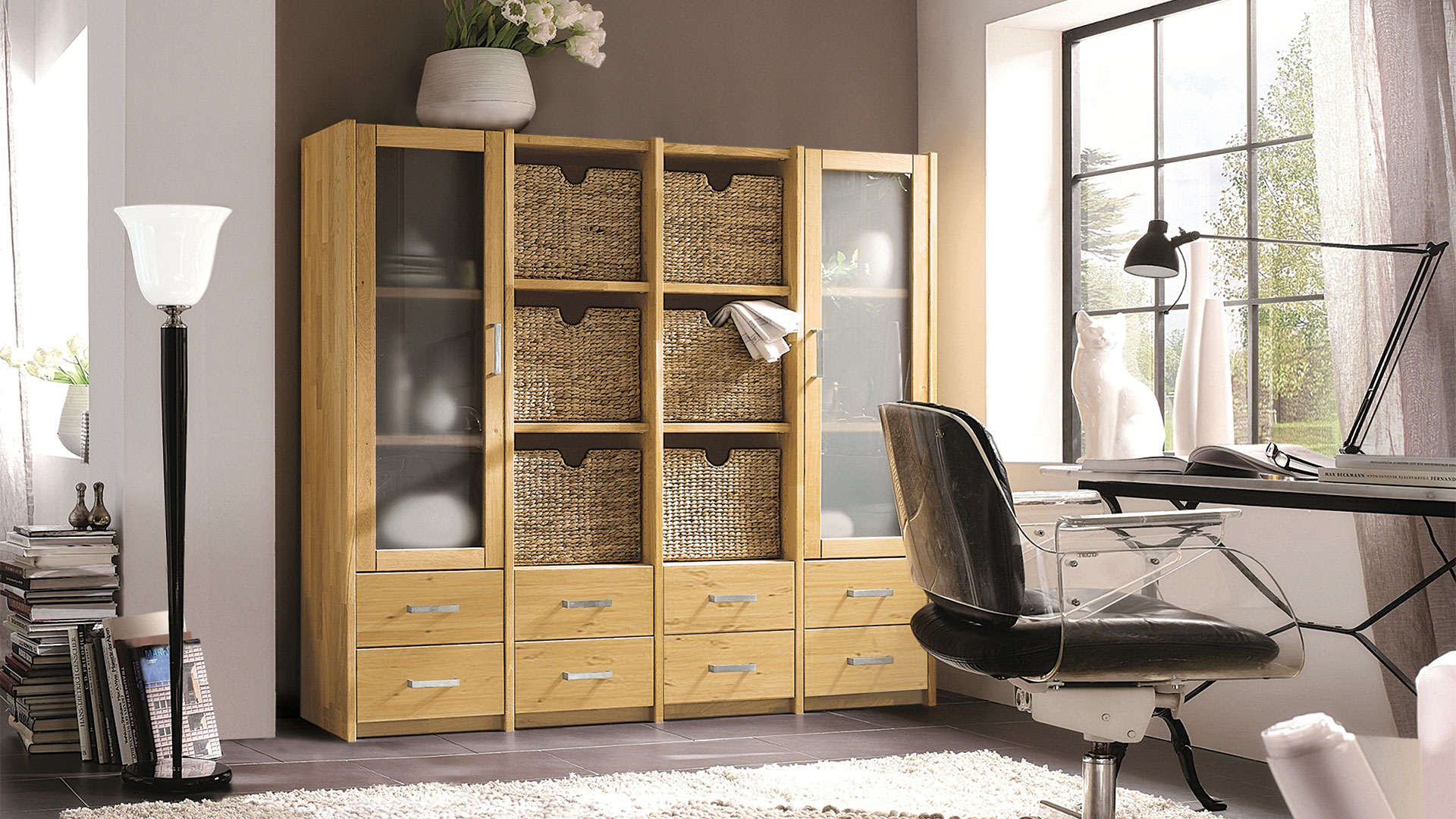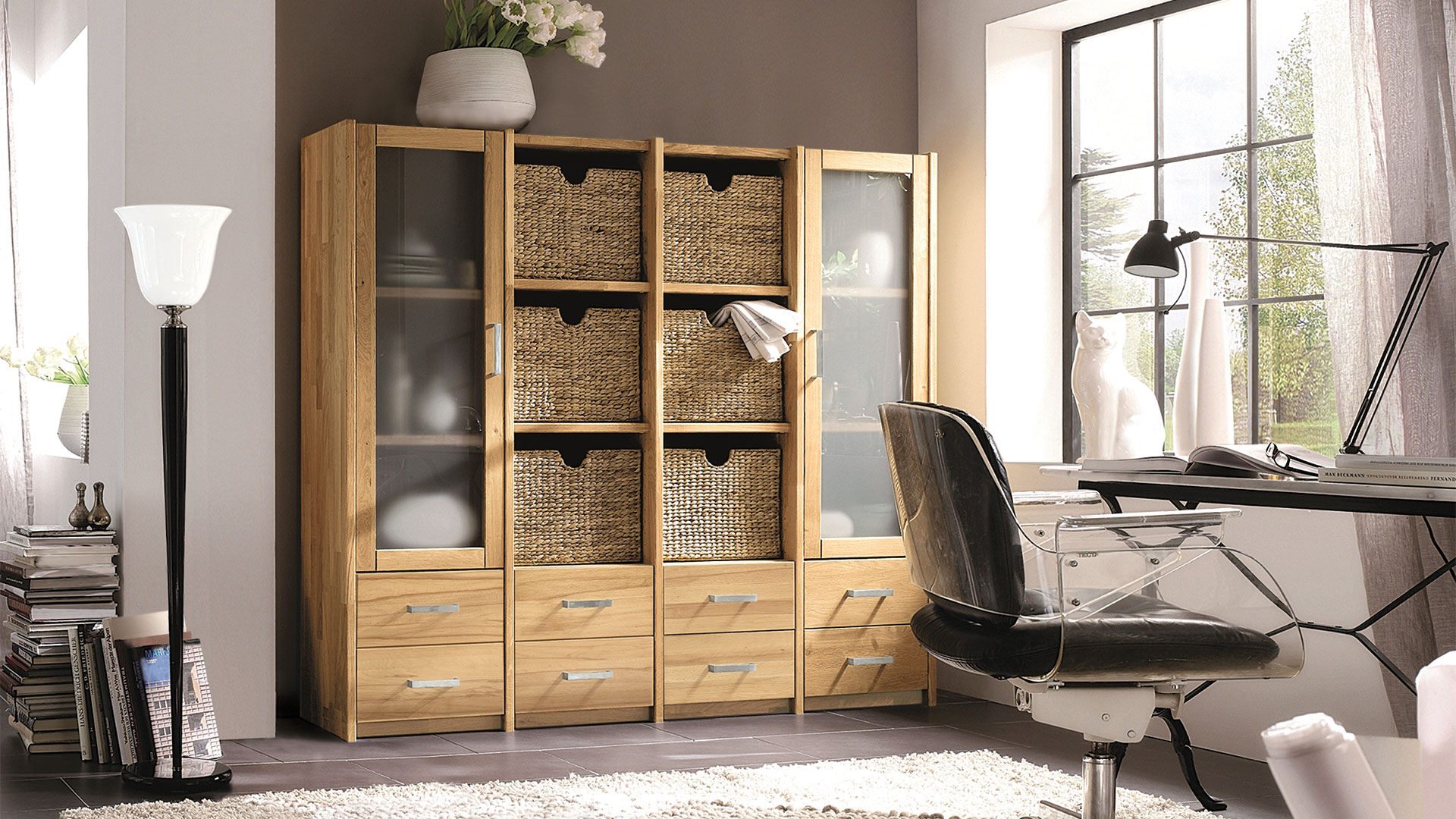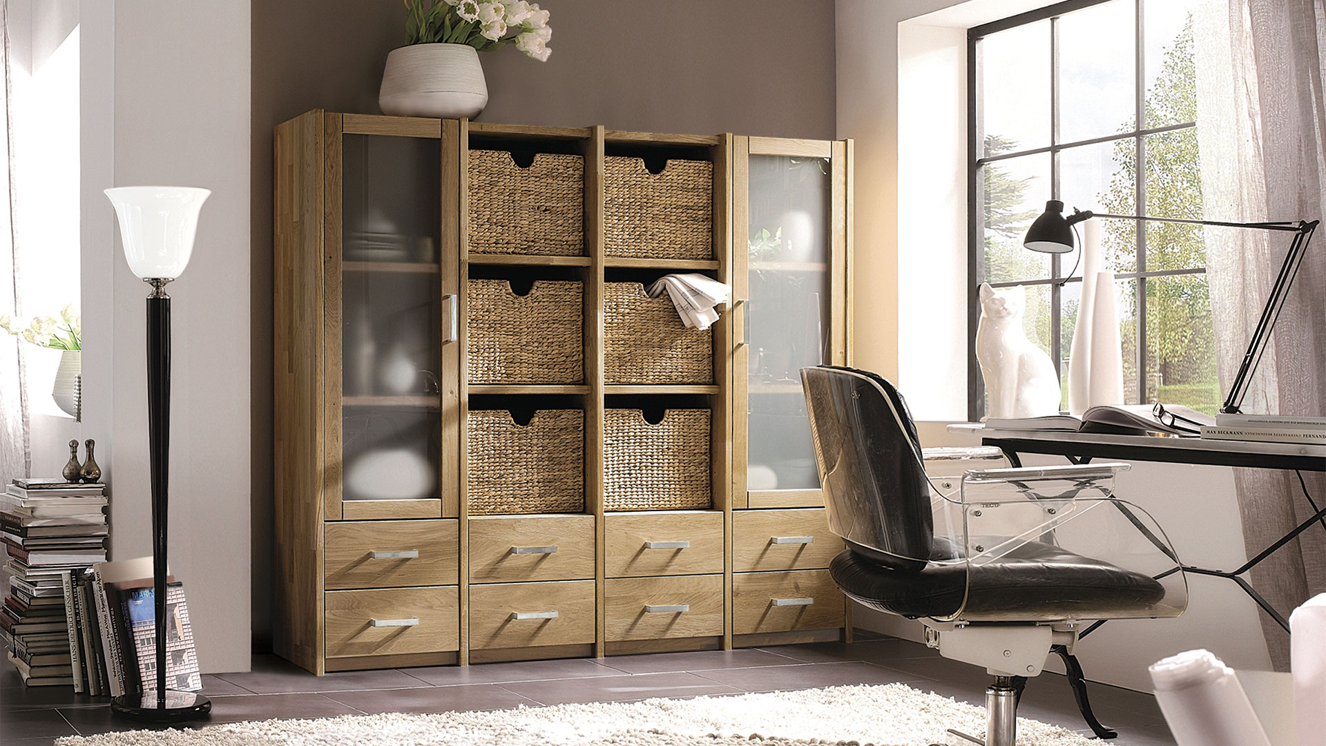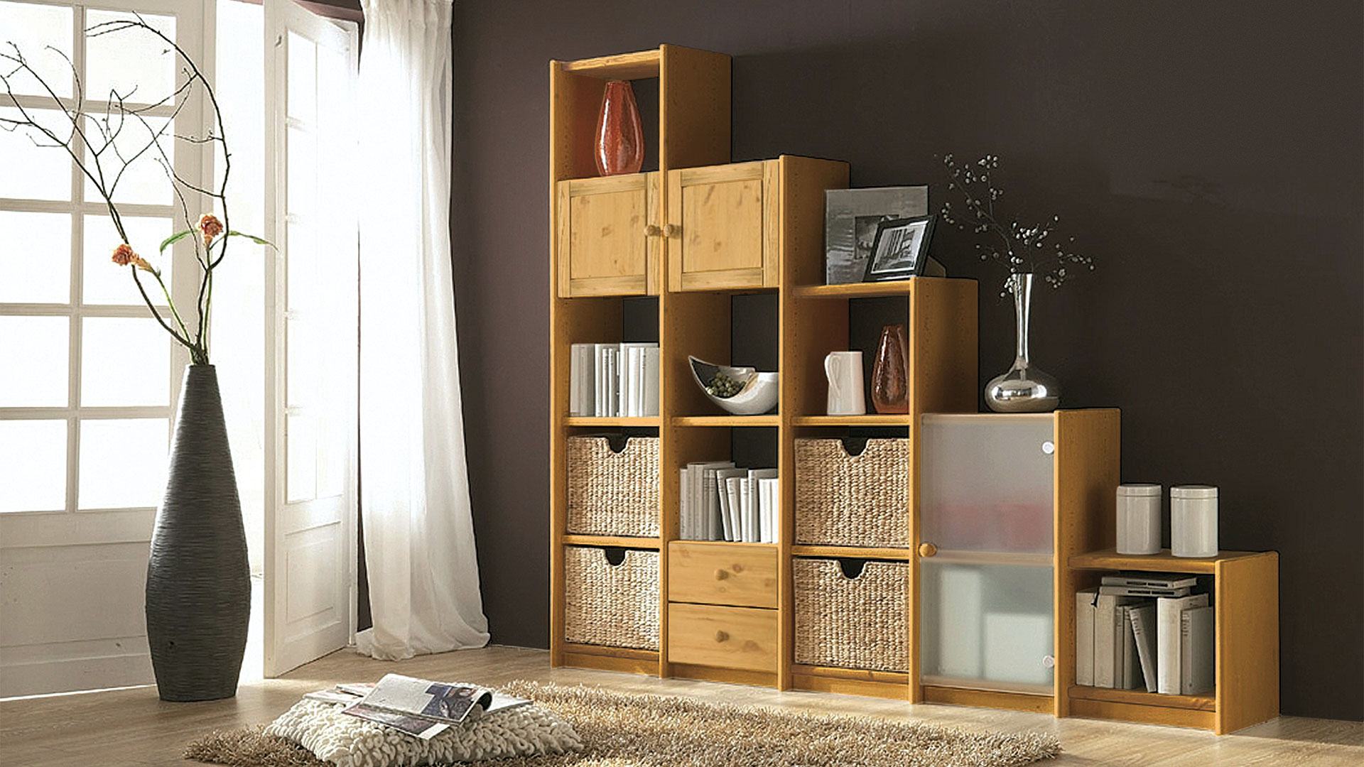 Regalwand "Sedes" erhalten Sie wahlweise in 3 Holzarten. In Kiefer bieten wir "Sedes" in gelaugt/geölt, honigfarben oder weiß-lackiert an, bei Wildeiche und Kernbuche wird die Oberfläche sorgfältig geölt. Als Zubehör erhalten Sie passende Körbe aus Wasserhyazinthen-Geflecht, mit denen Sie Ihre Regalwand nach Bedarf ergänzen können.